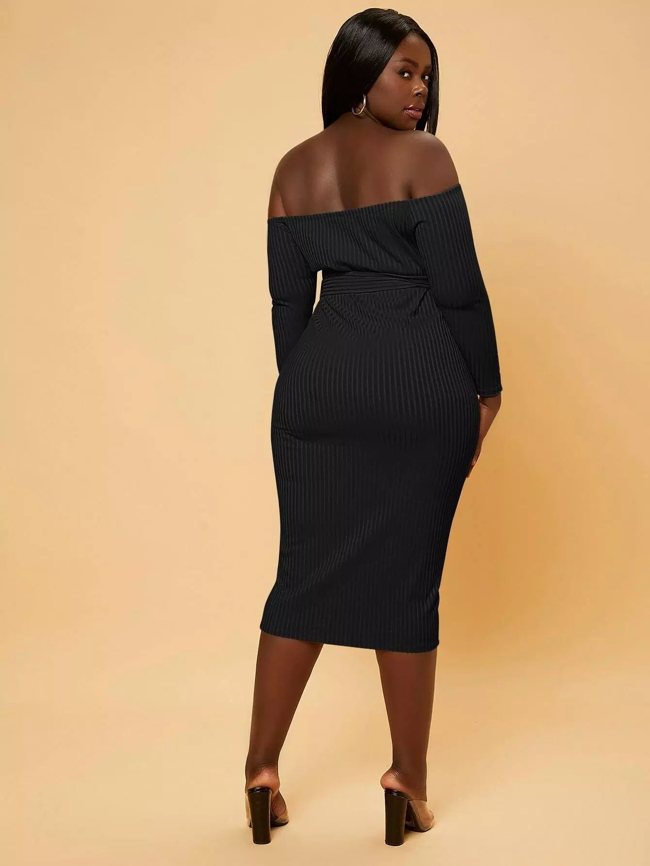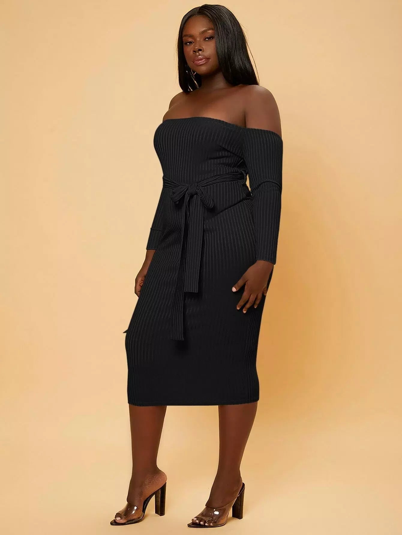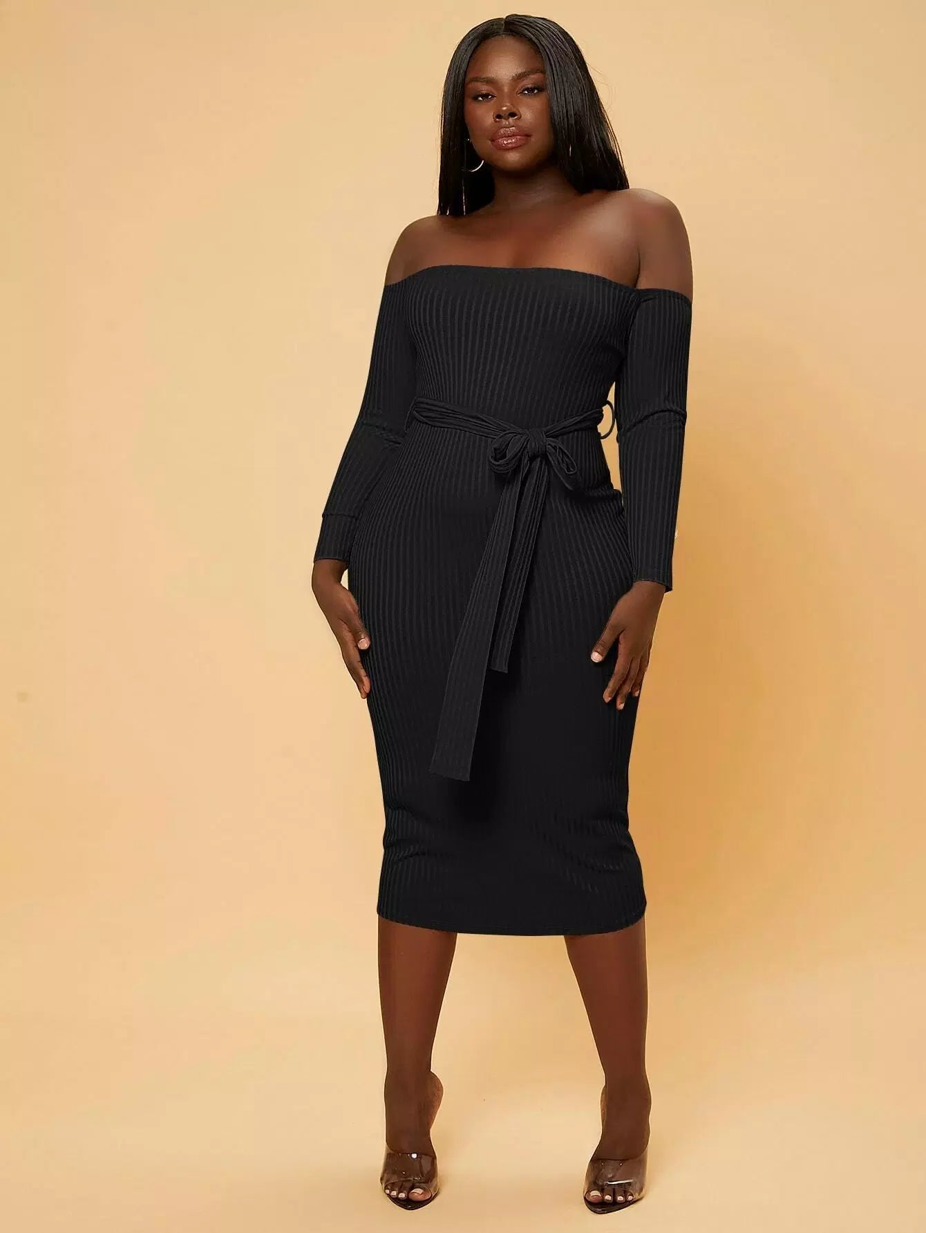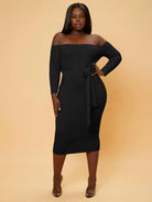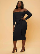 Plus Off Shoulder Bodycon Dress Without Belt