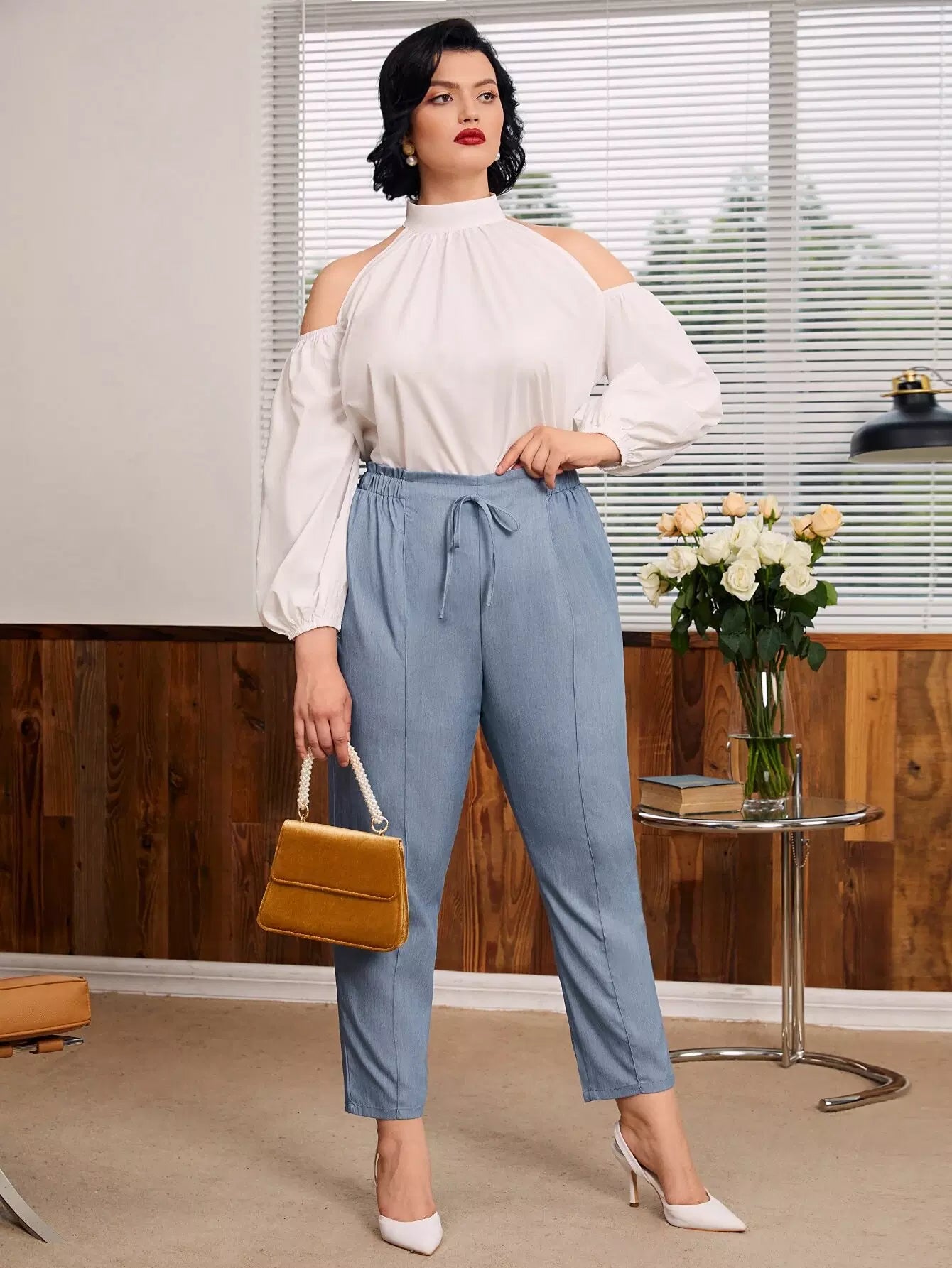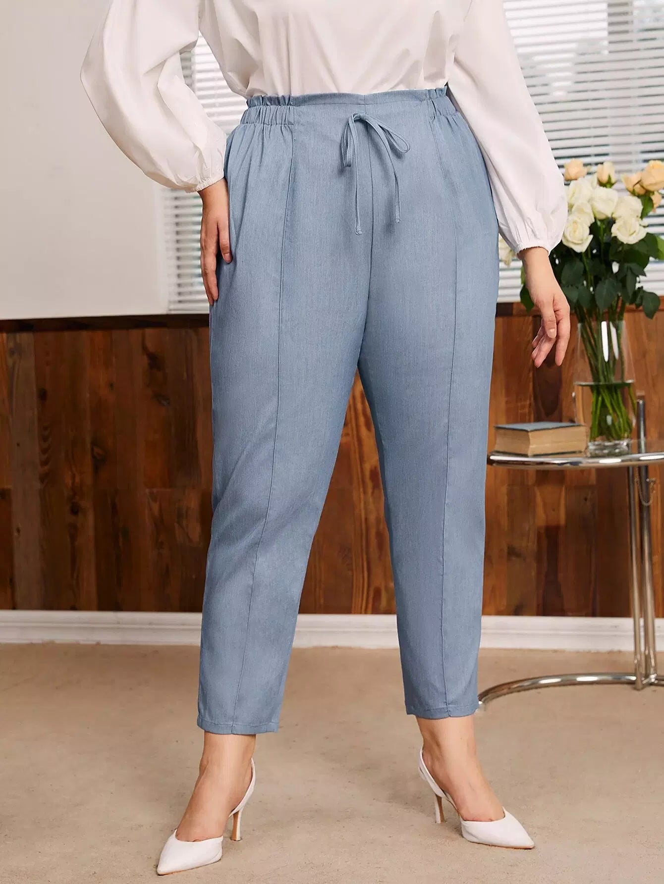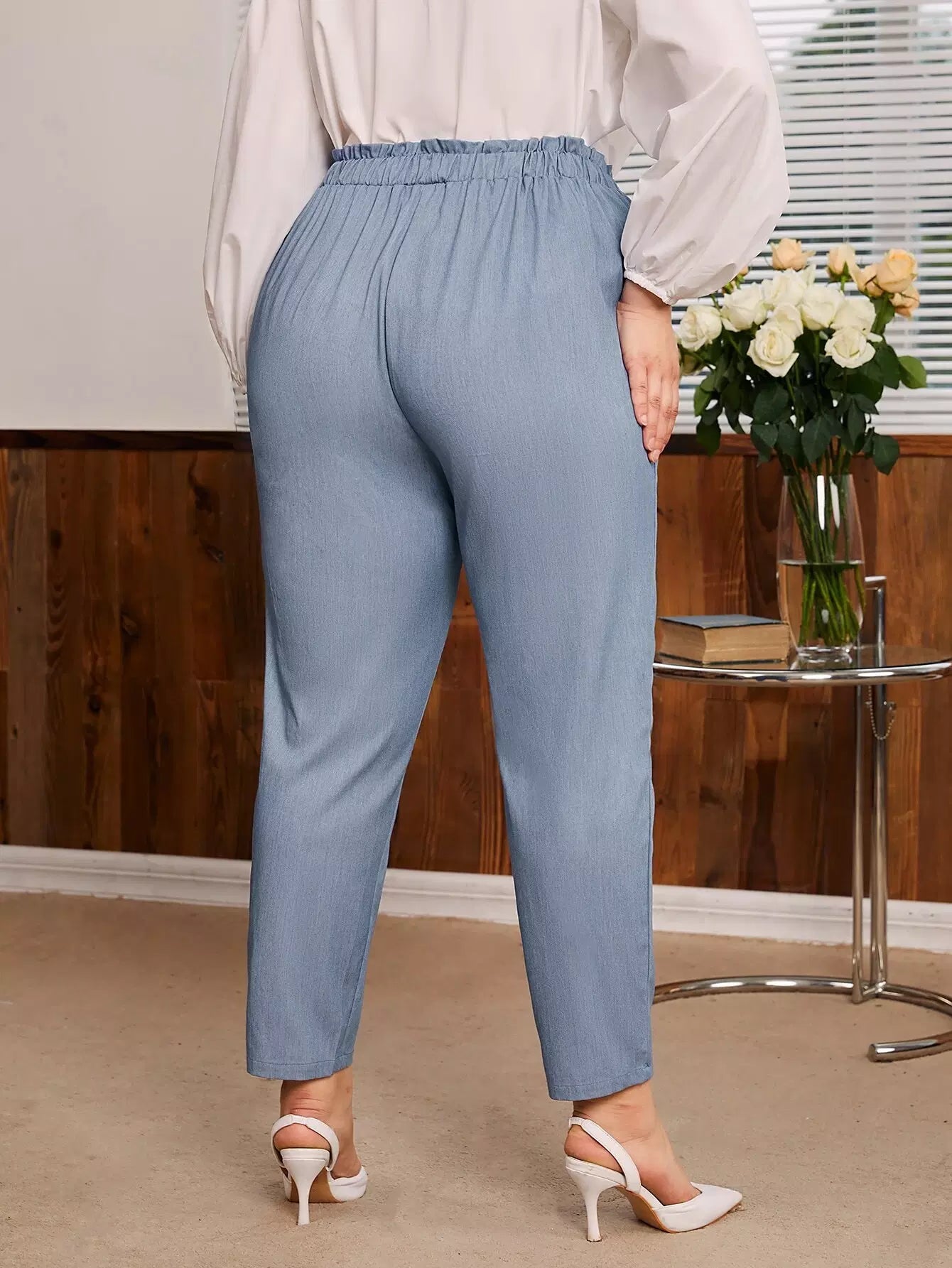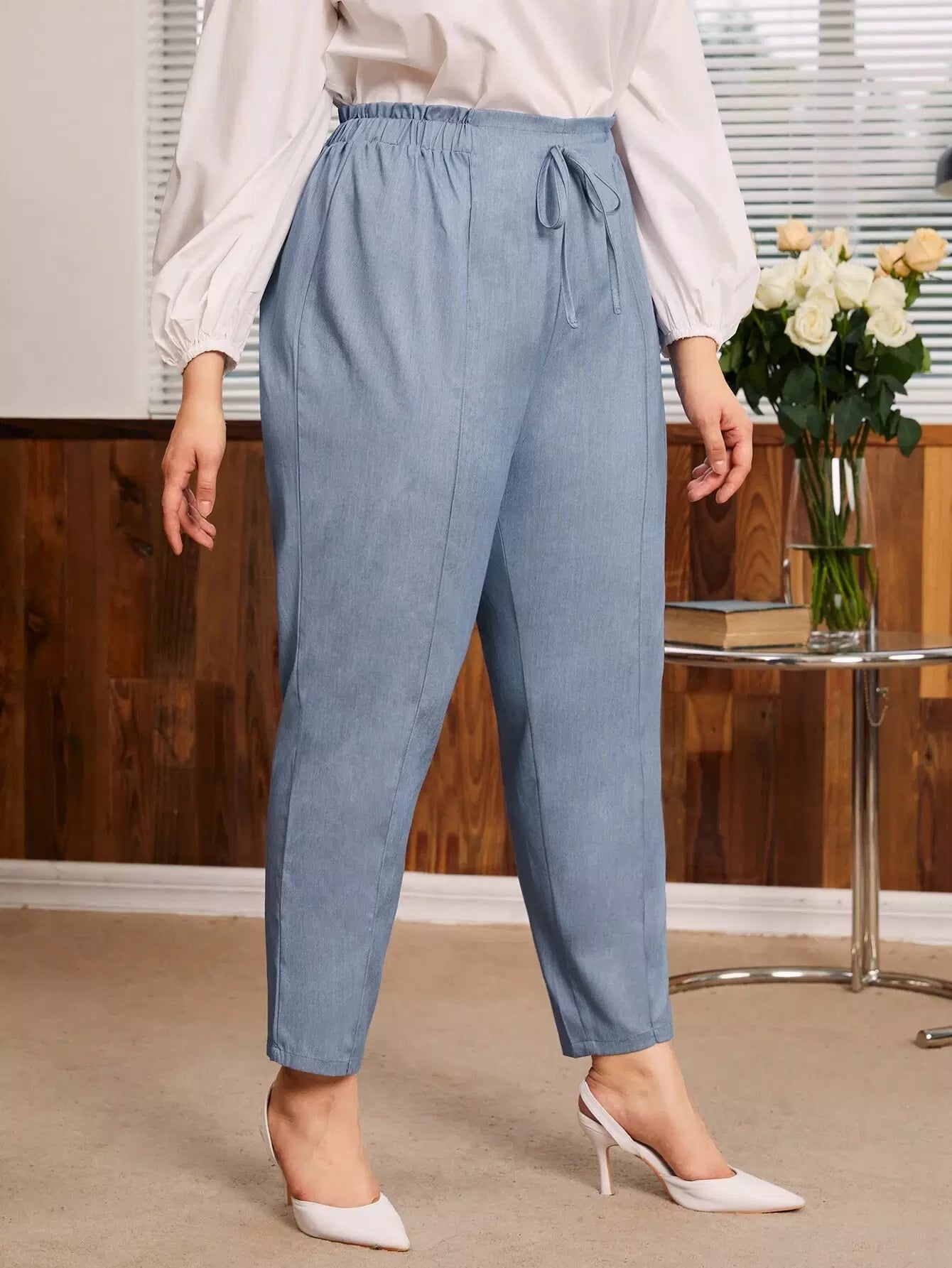 Plus Paper Bag Waist Knot Front Carrot Pants