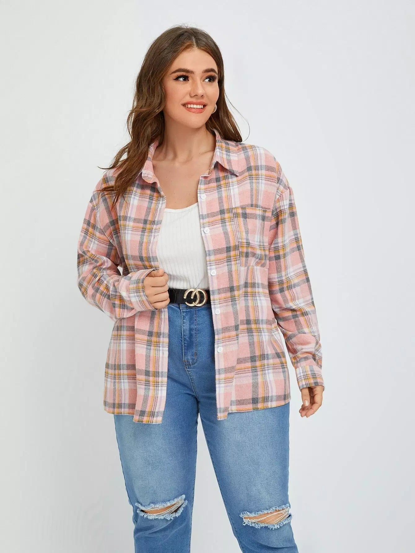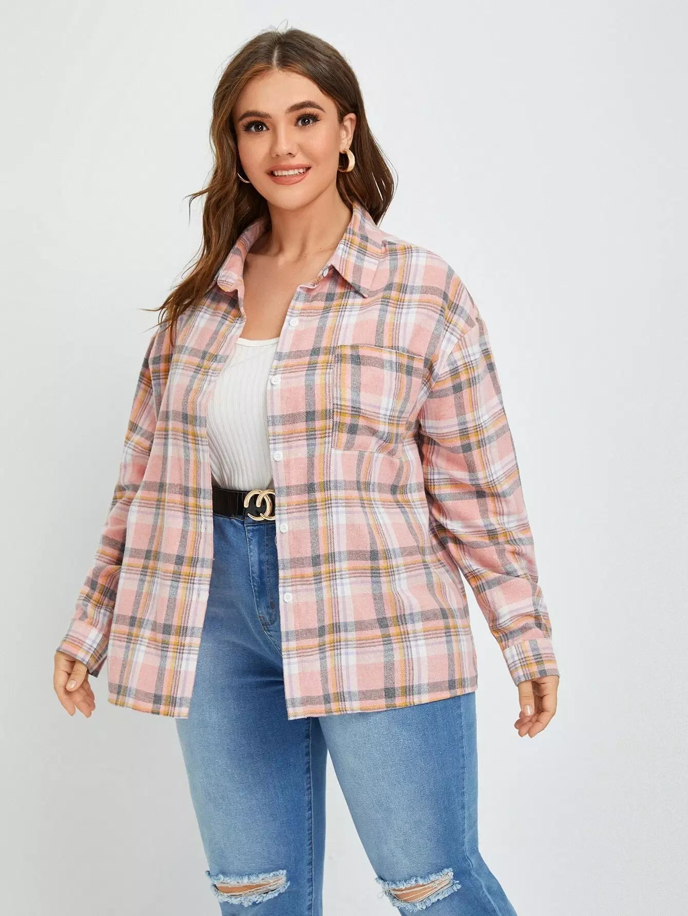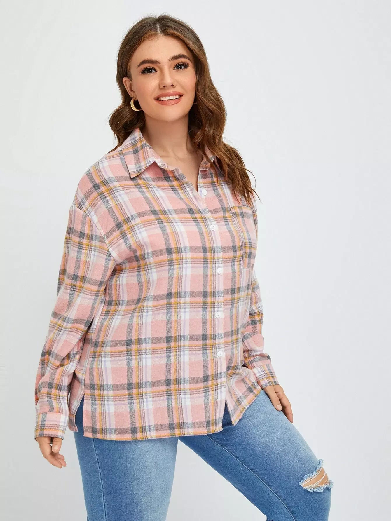 Plus Plaid Drop Shoulder Shirt