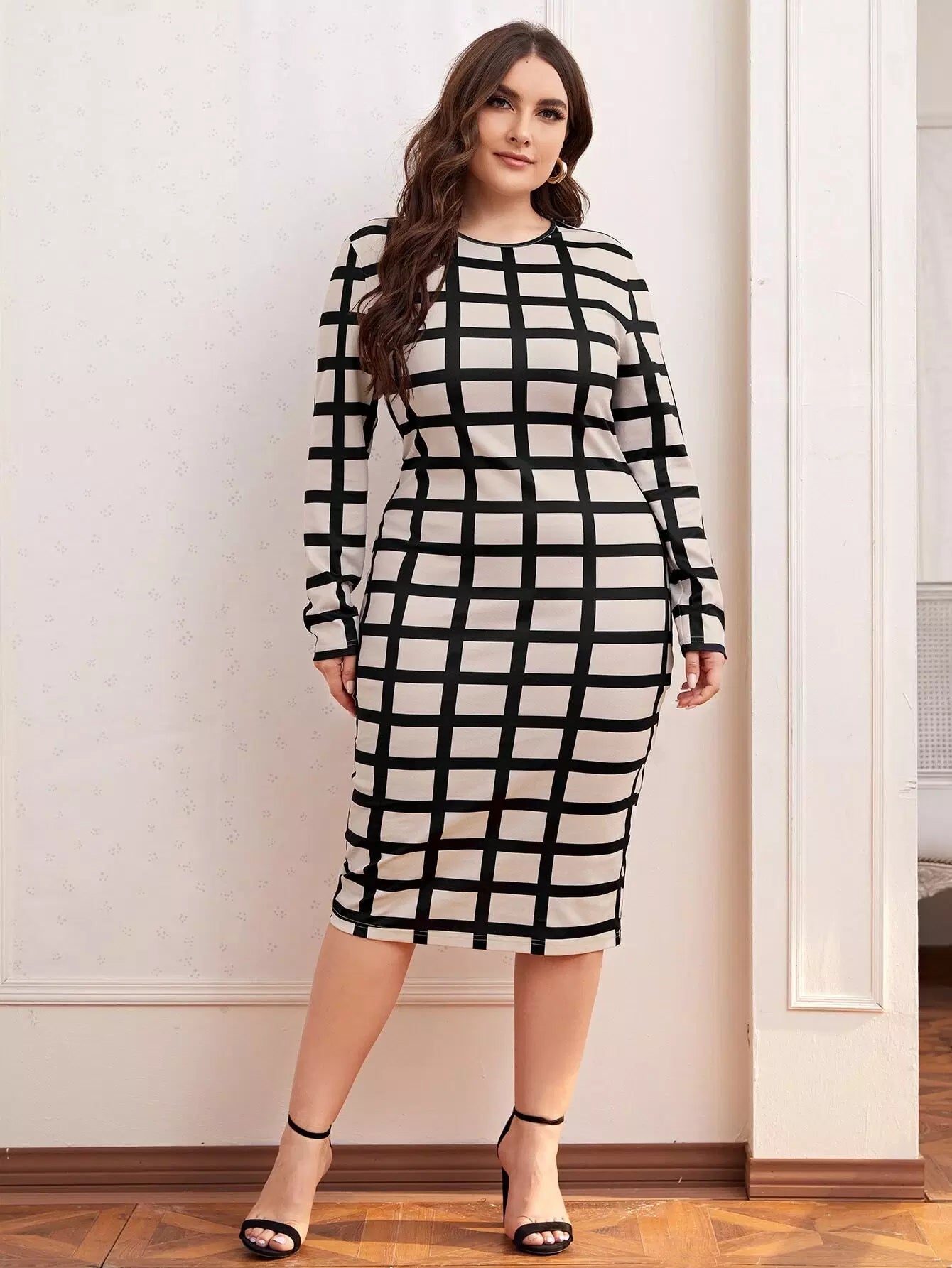 Plus Plaid Form Fitted Dress