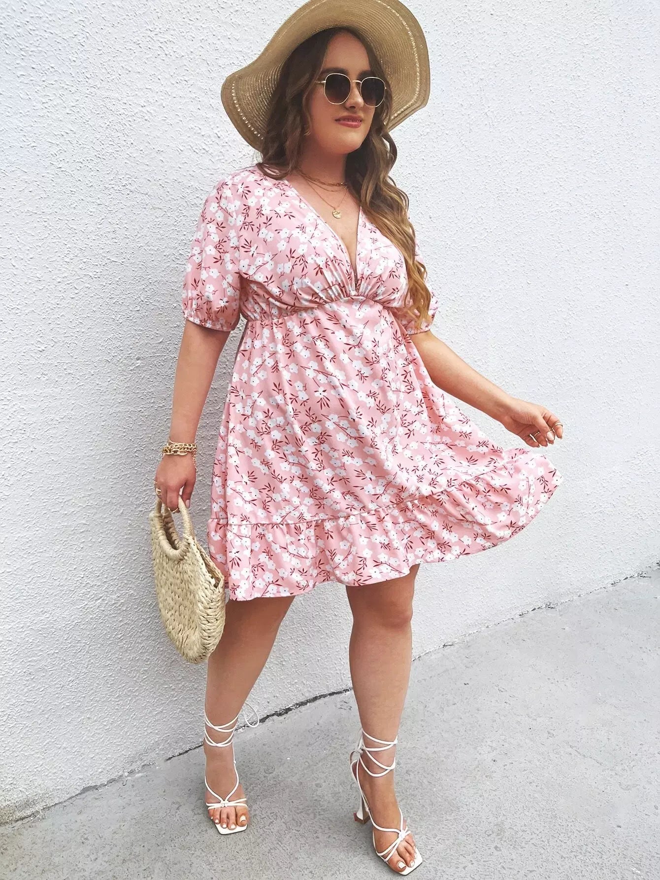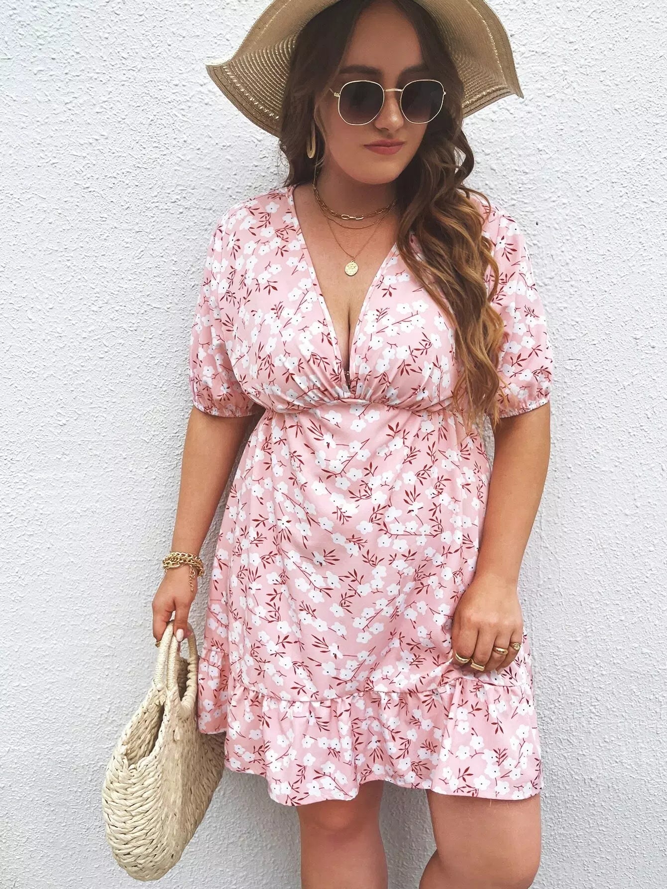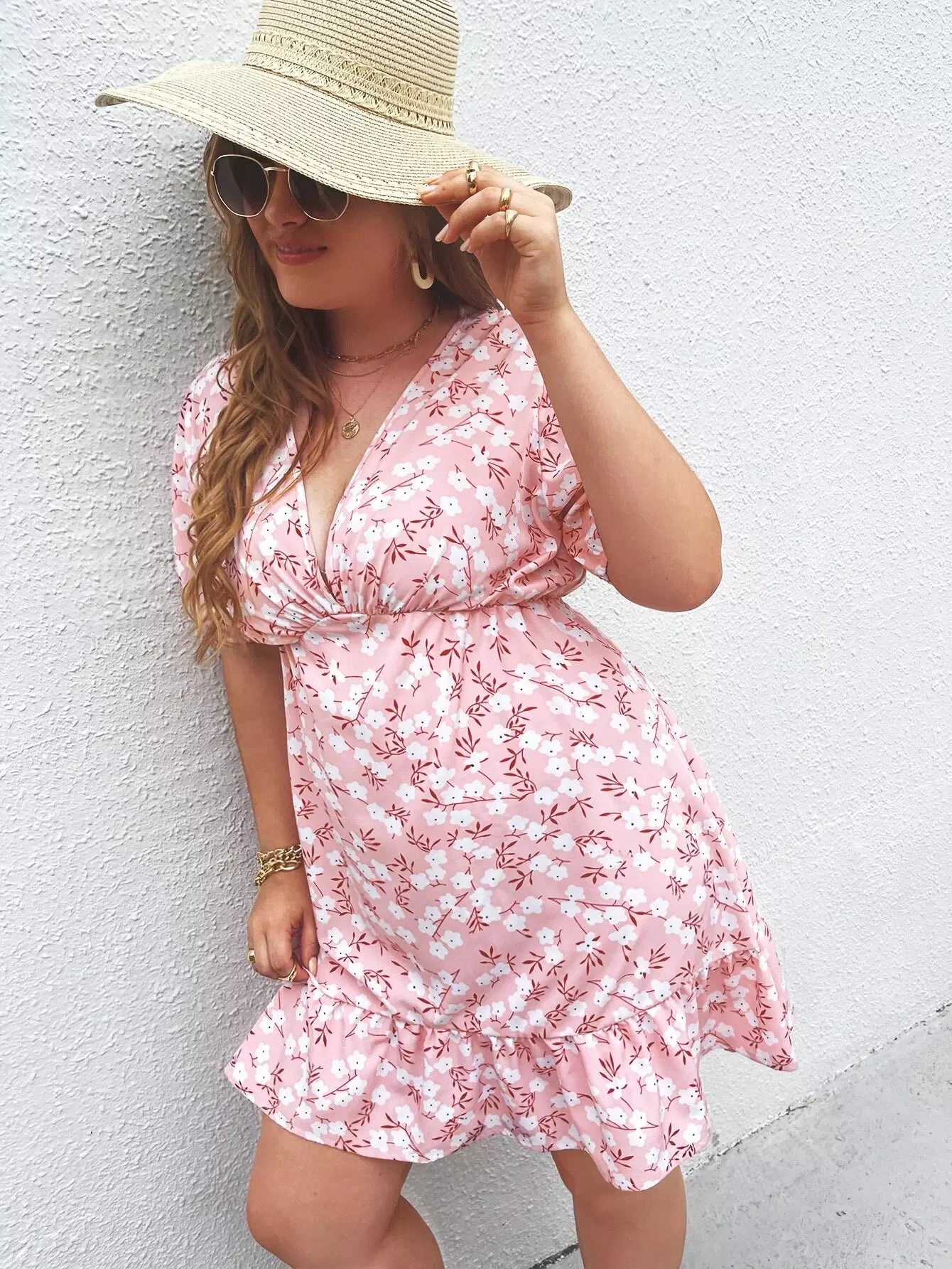 Plus Plunging Neck Floral Print Dress