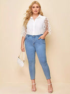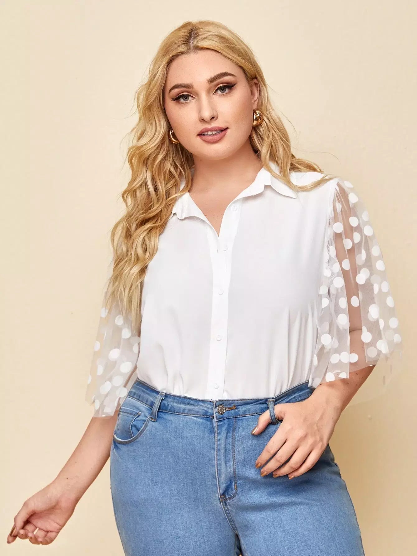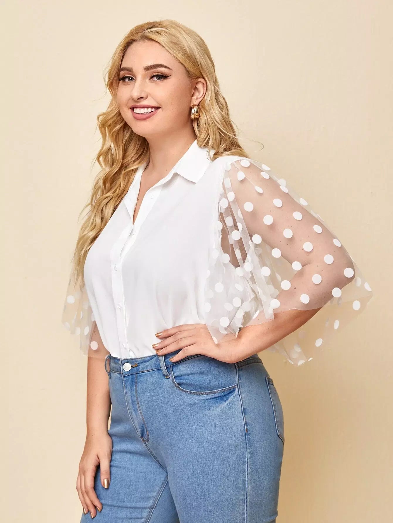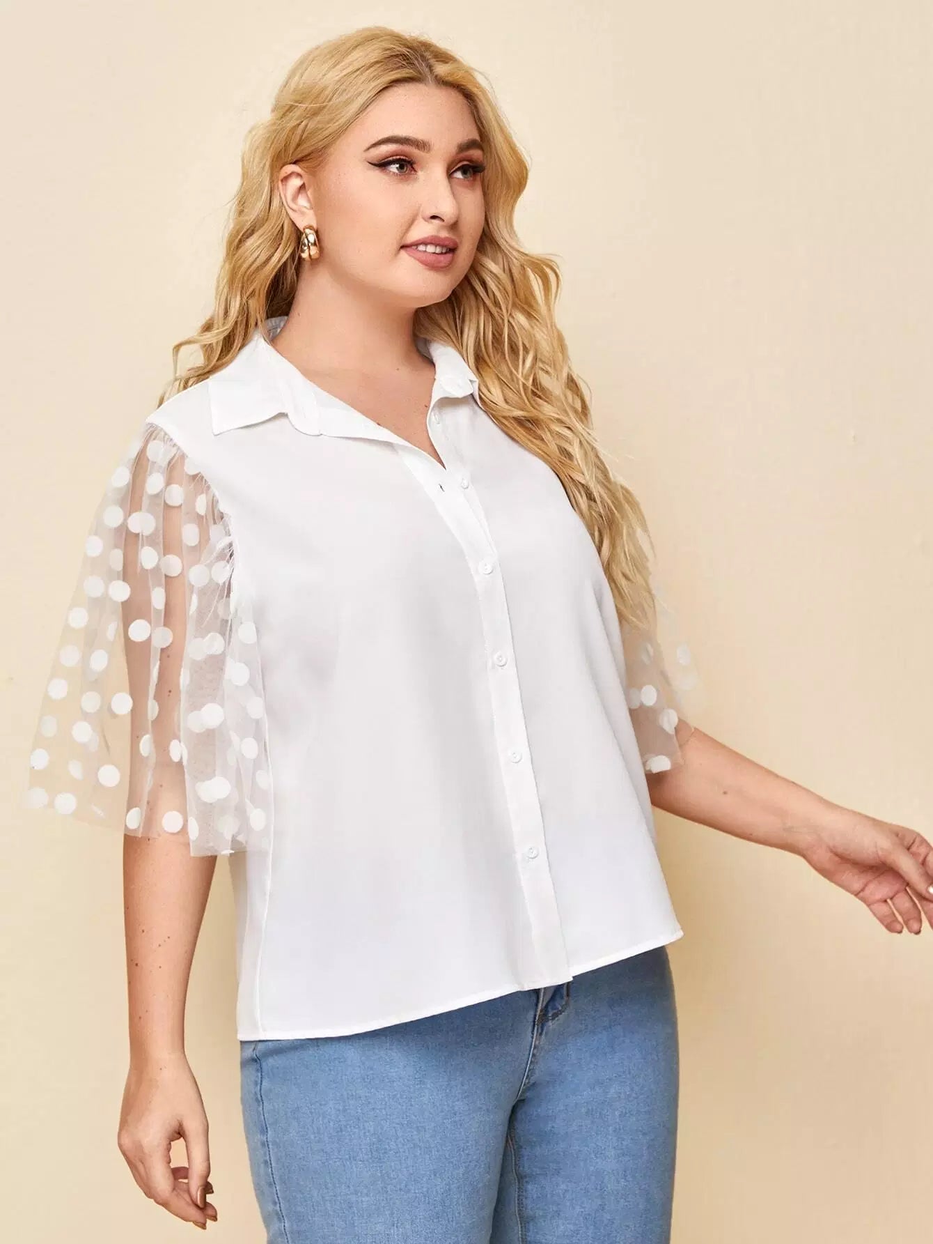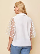 Plus Polka Dot Mesh Sleeve Shirt