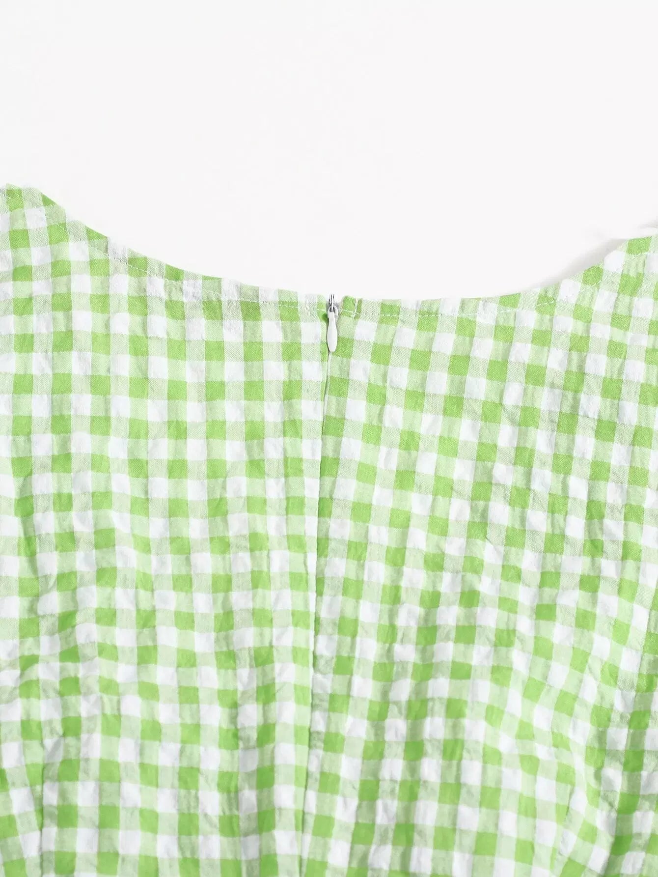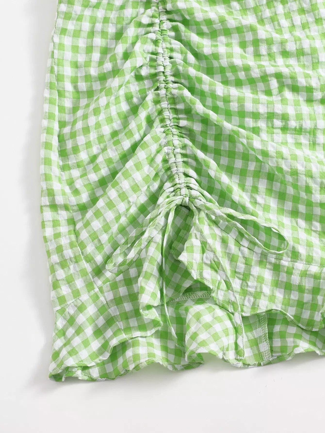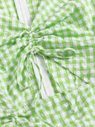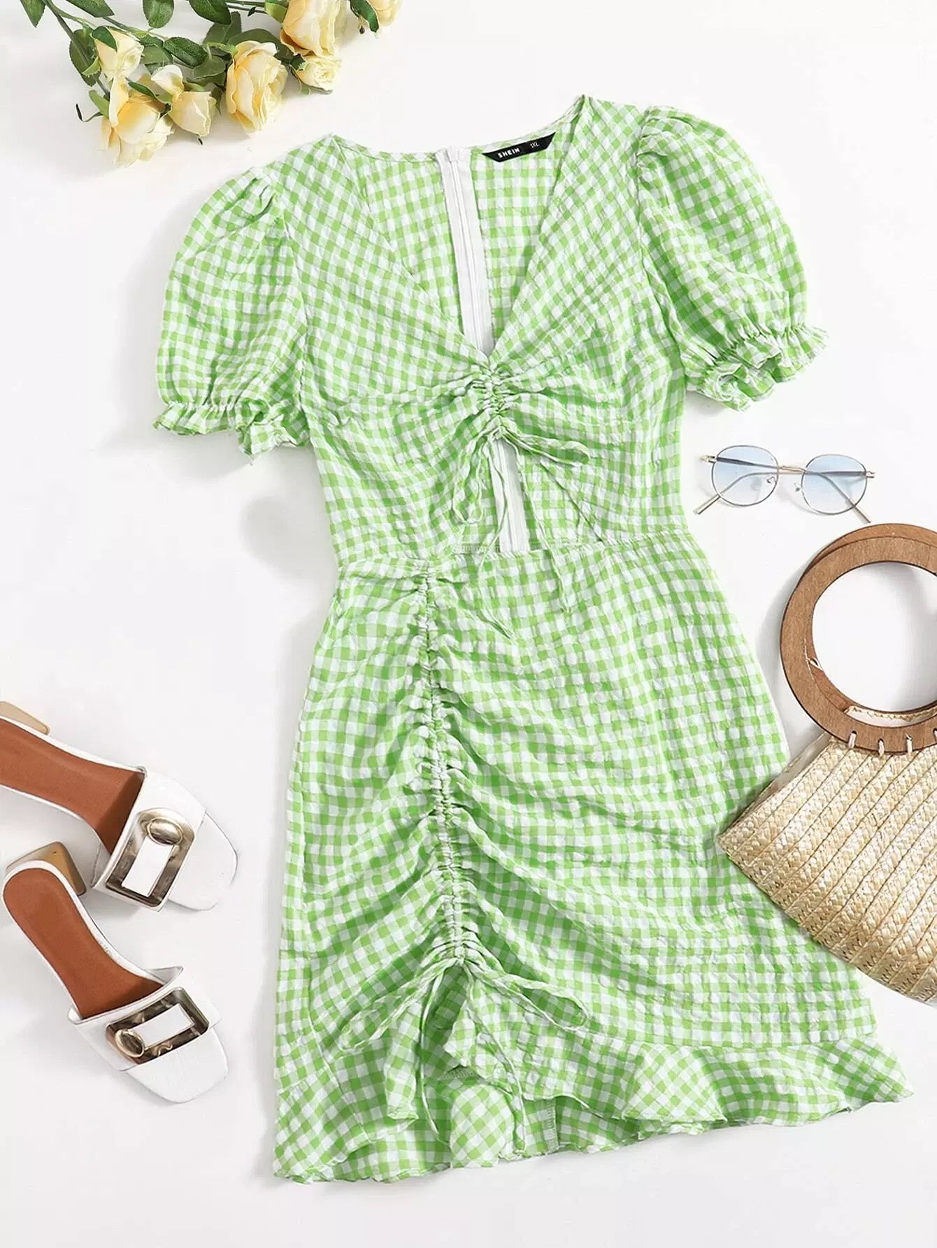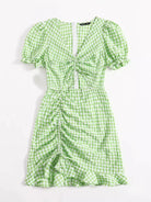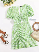Plus Puff Sleeve Ruched Bust Ruffle Hem Gingham Peekaboo Dress