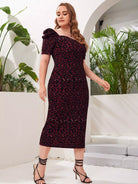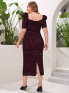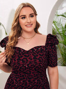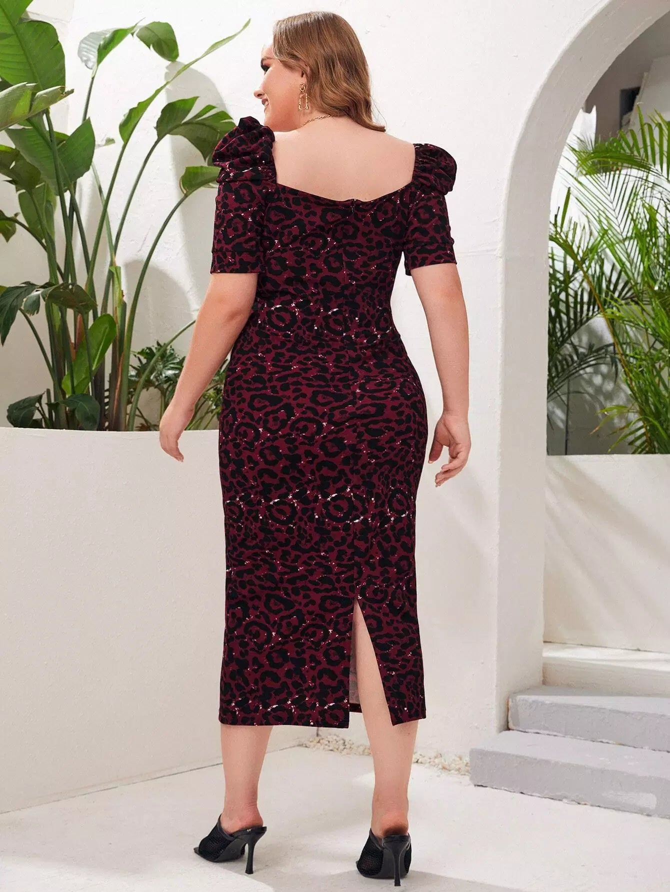 Plus Puff Sleeve Slit Hem Leopard Dress