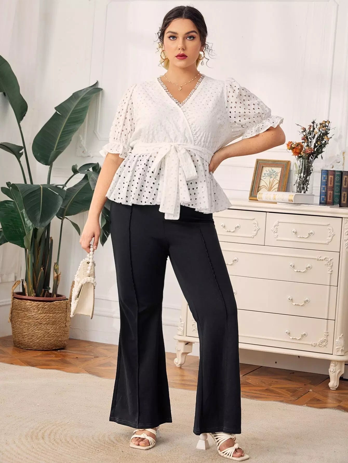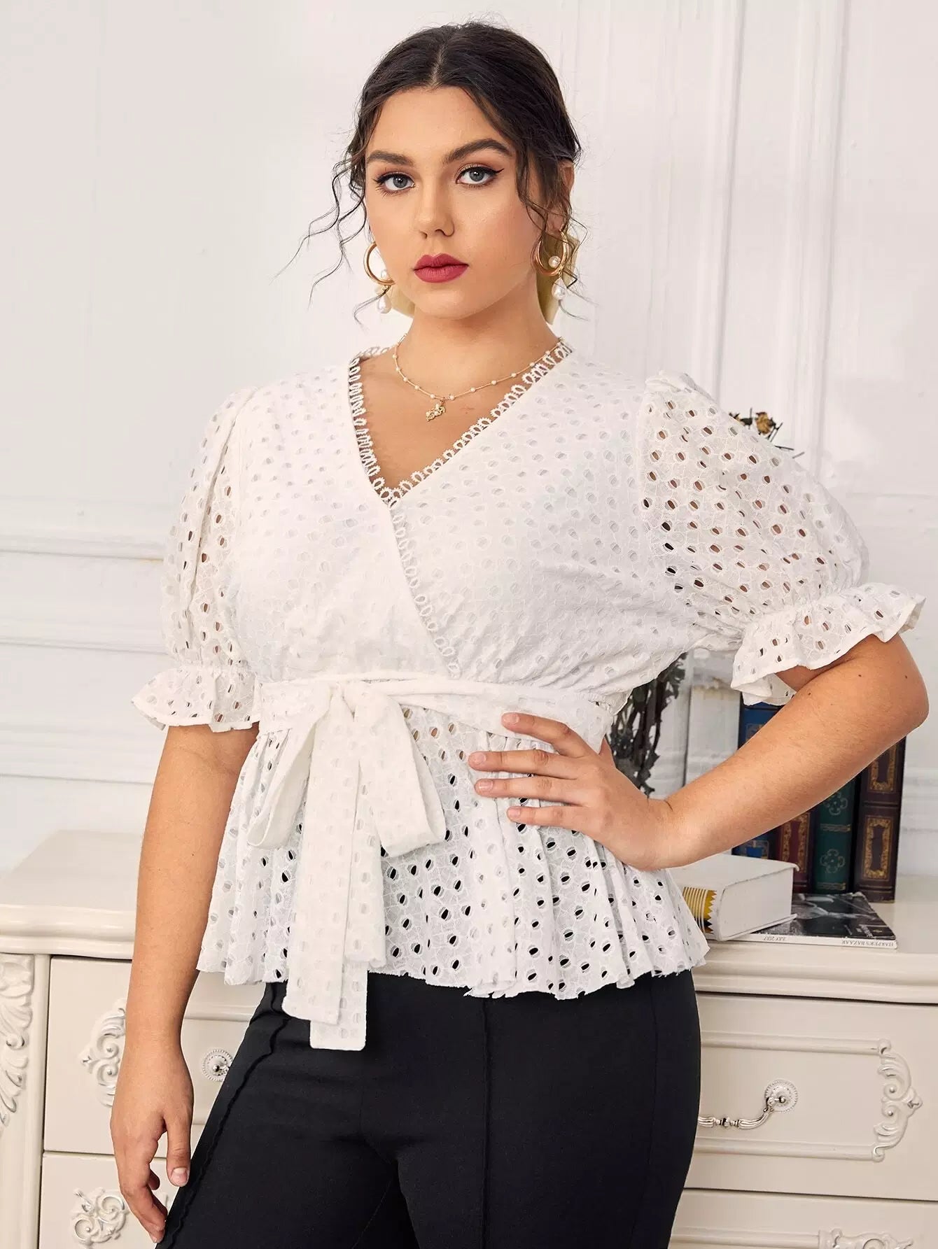 Plus Ruffle Cuff Schiffy Top Without Belt