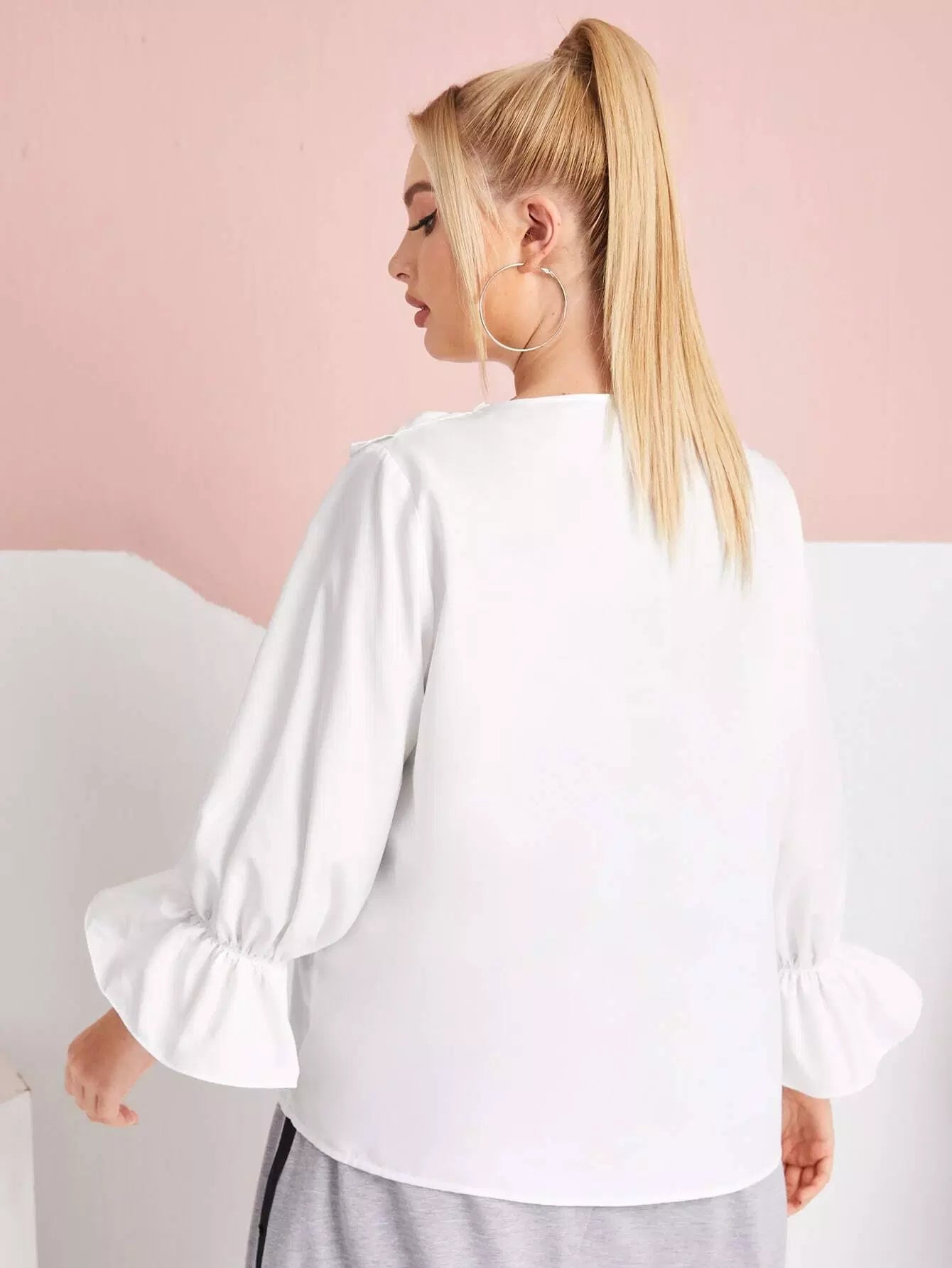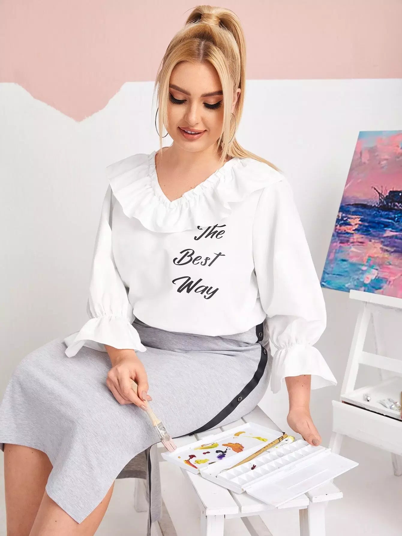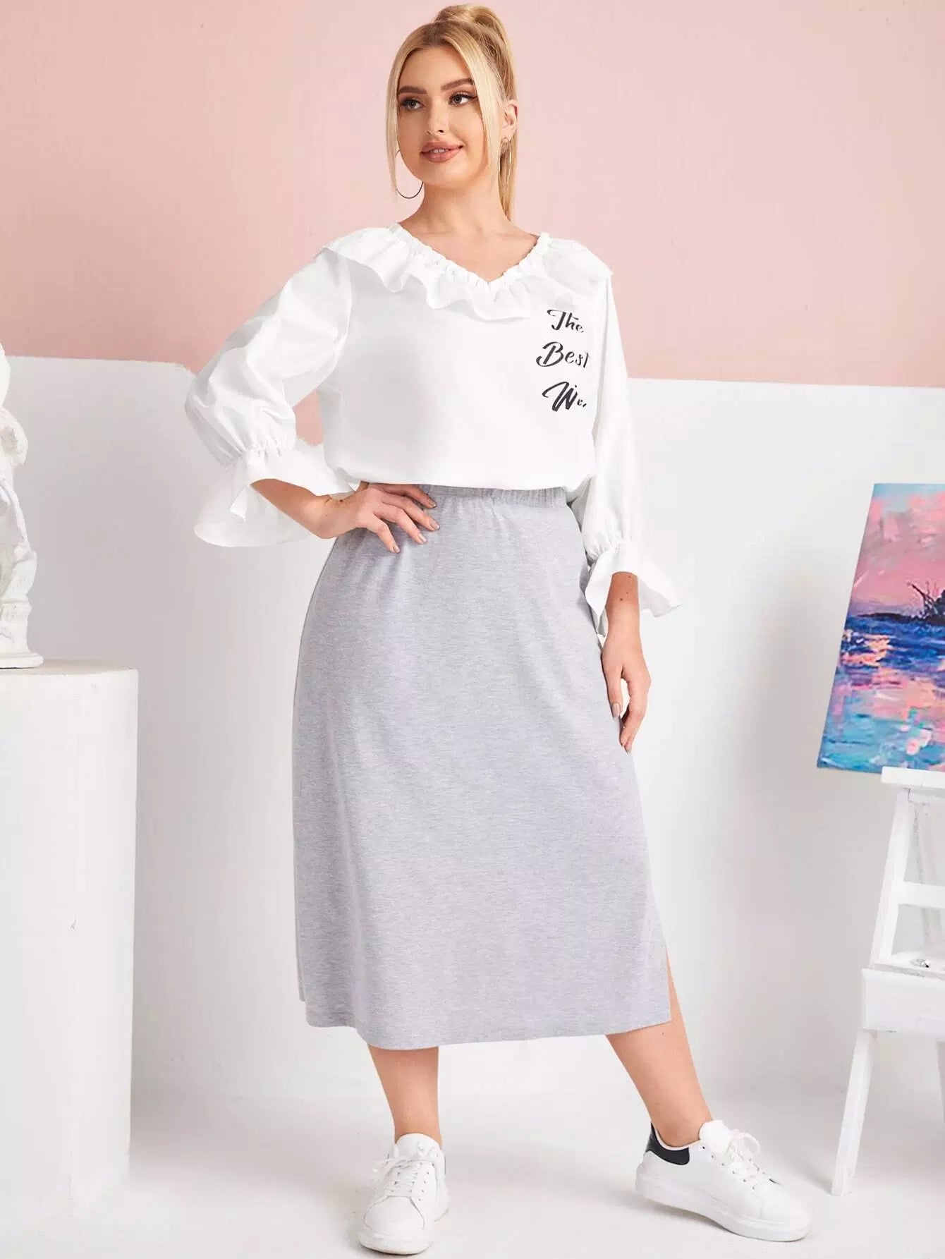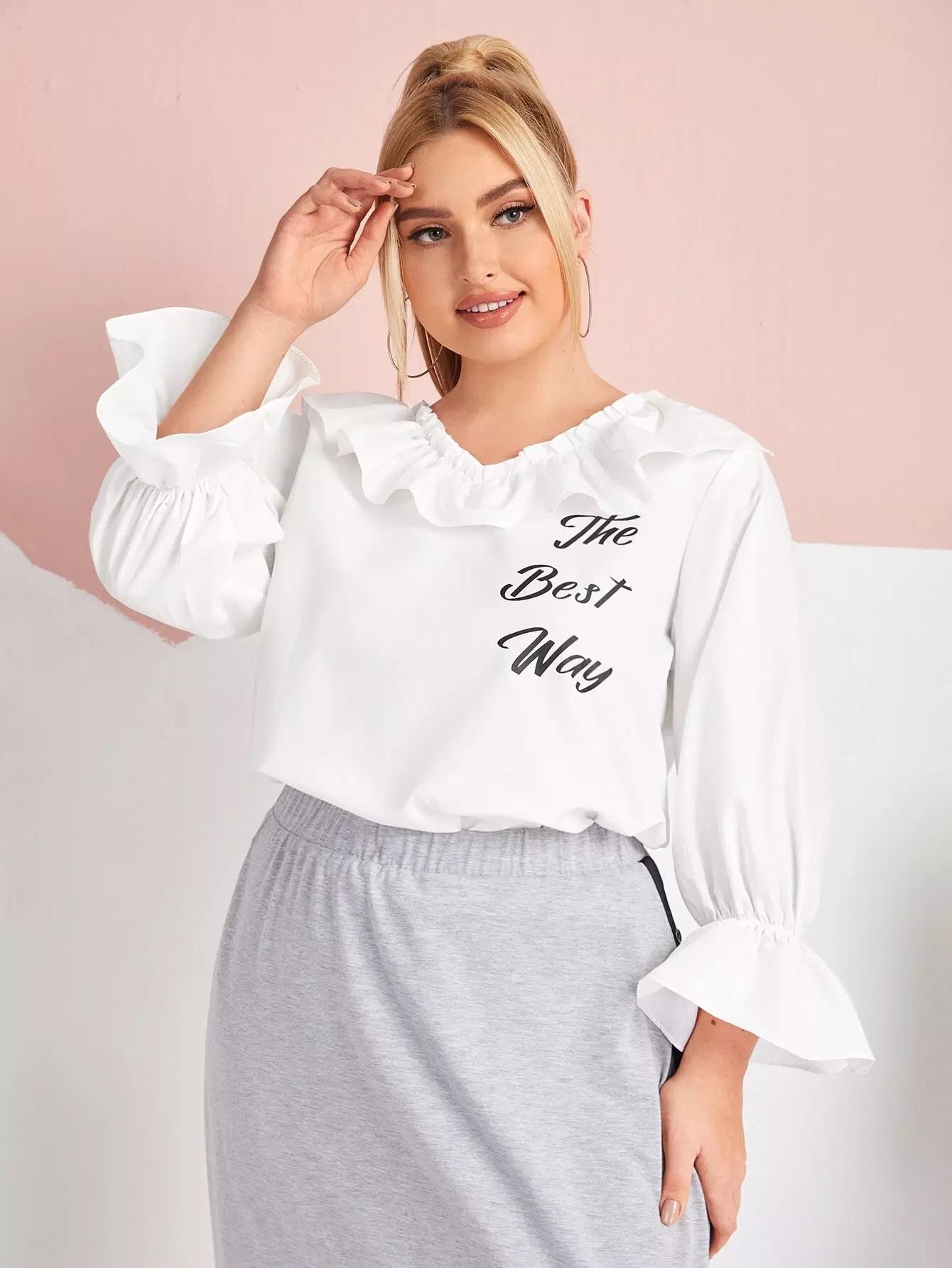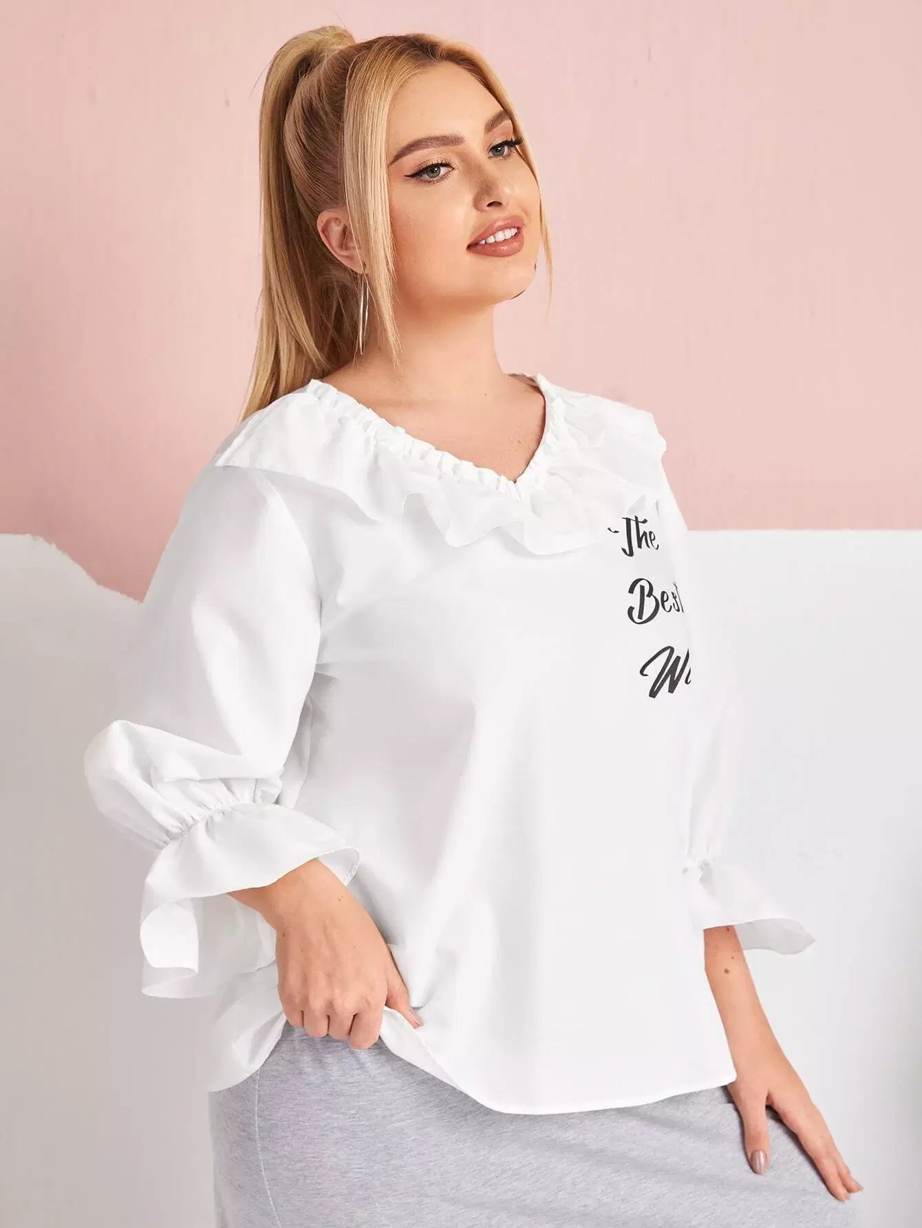 Plus Ruffle Trim Letter Graphic Top