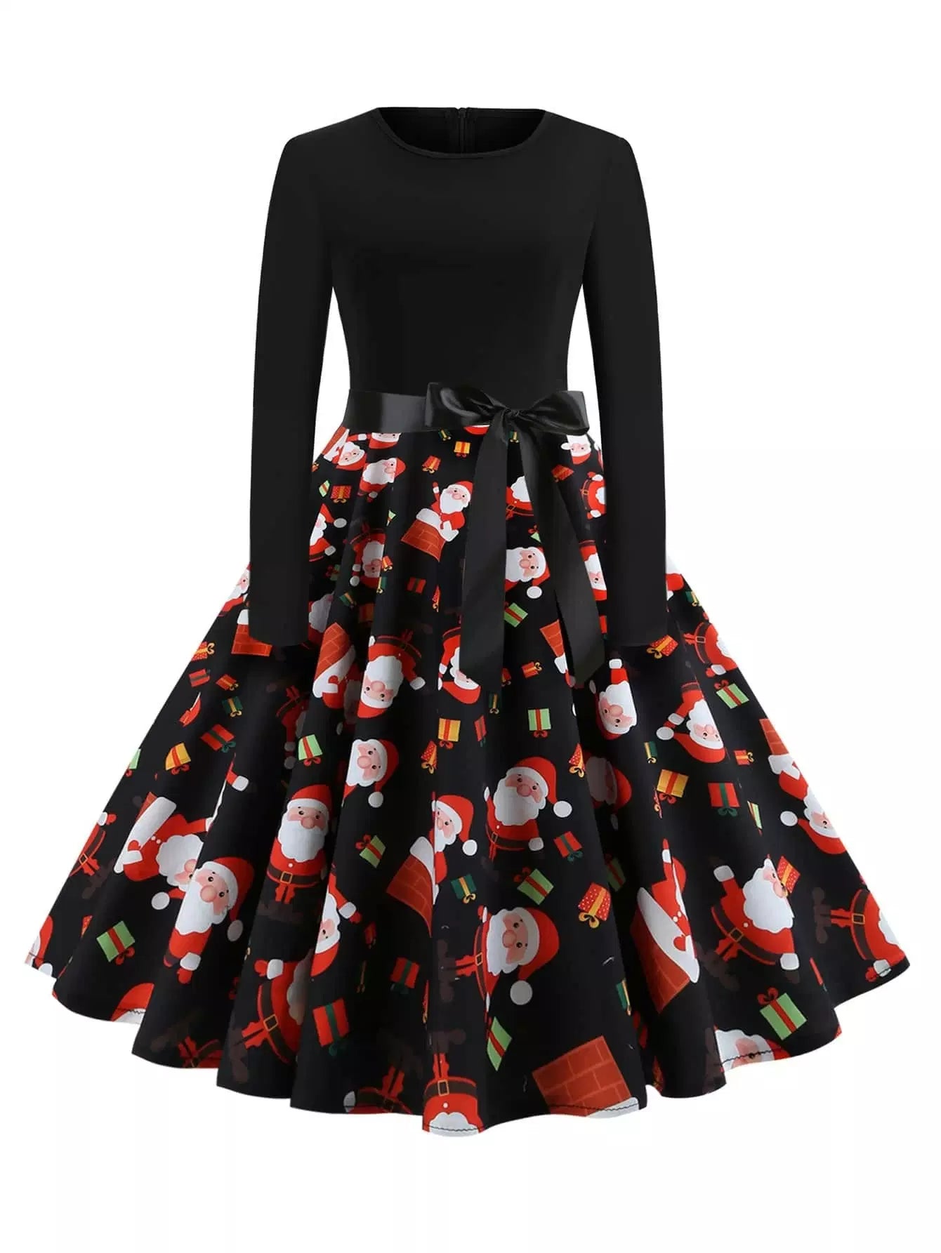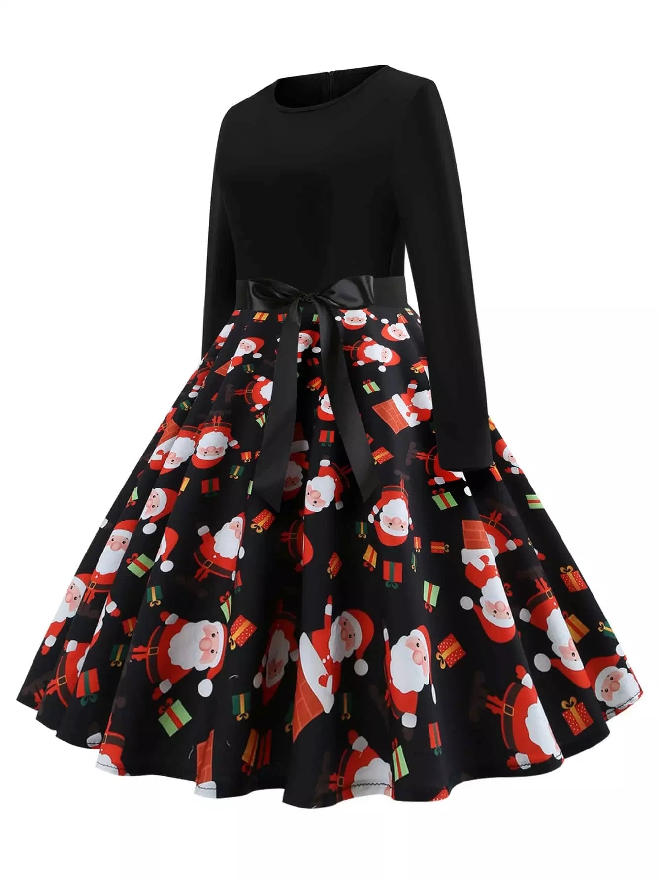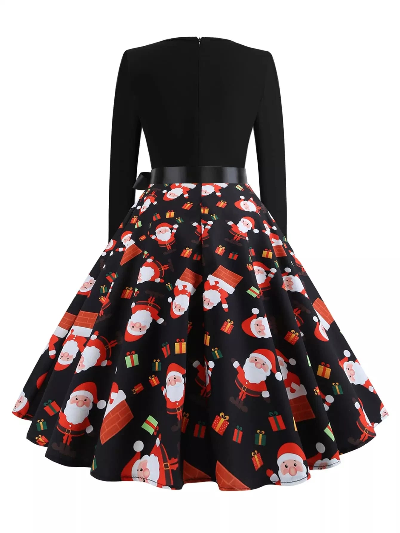 Plus Santa Claus Print Ball Gown Dress Without Belt