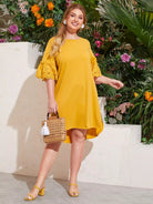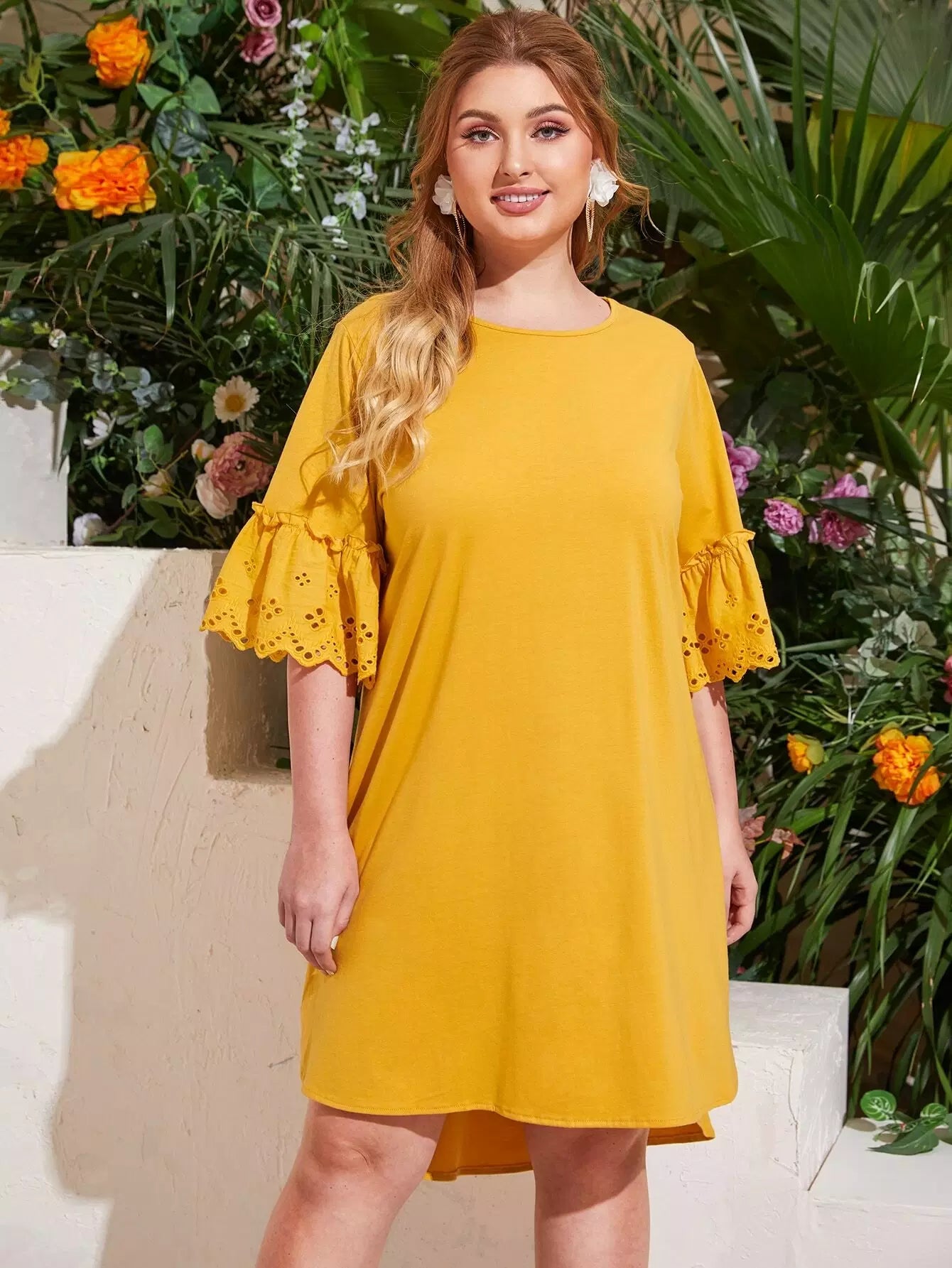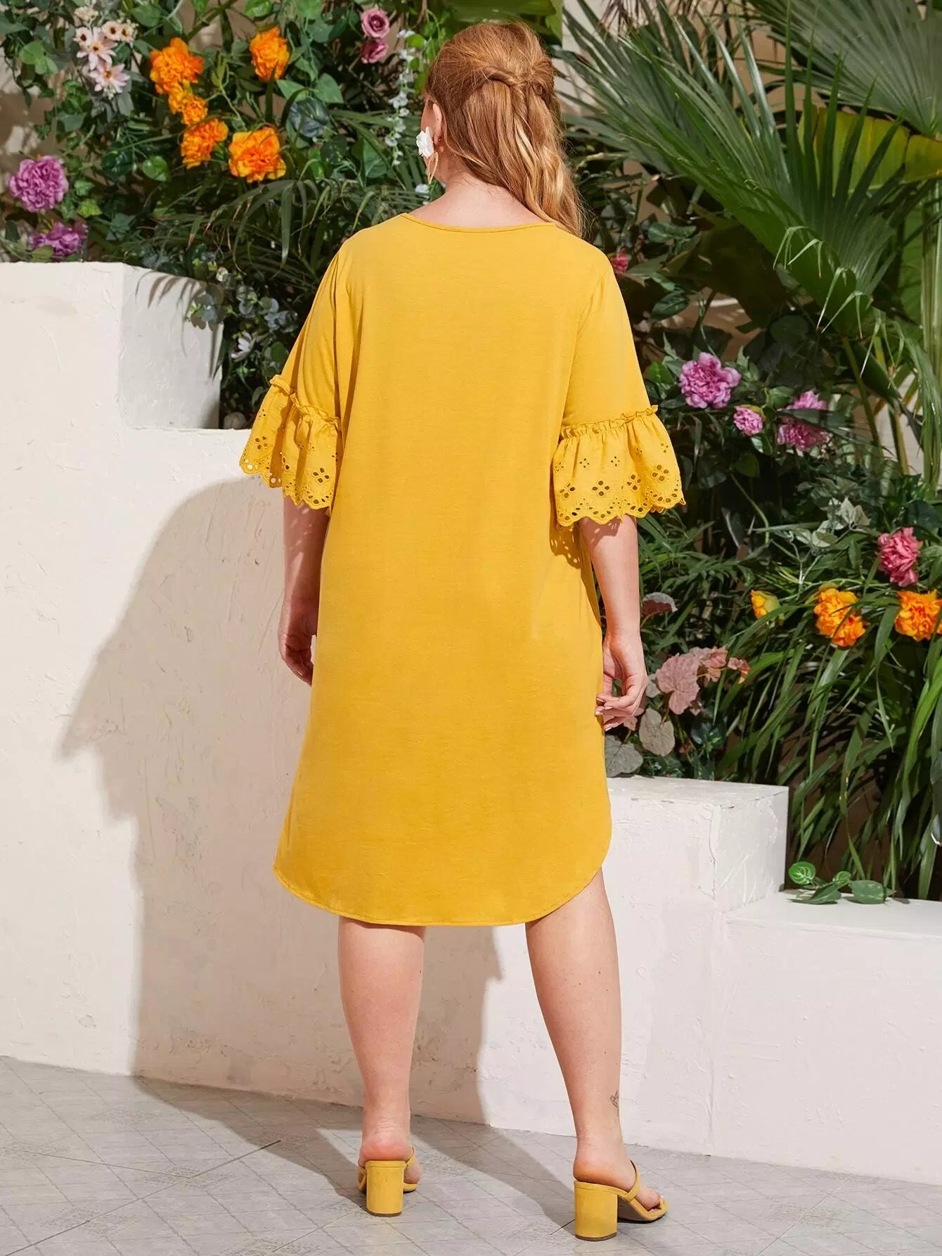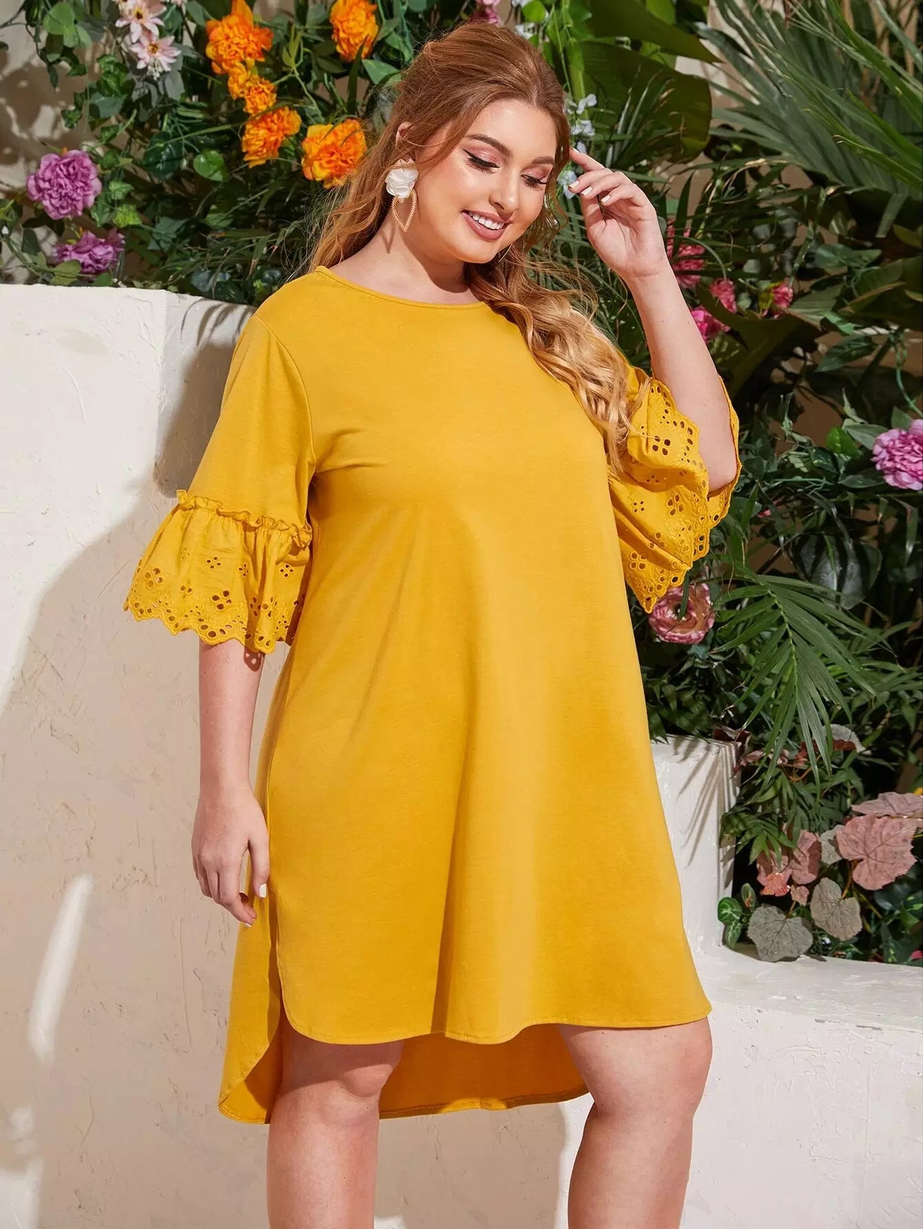 Plus Scallop Eyelet Embroidered Sleeve Dip Hem Dress