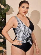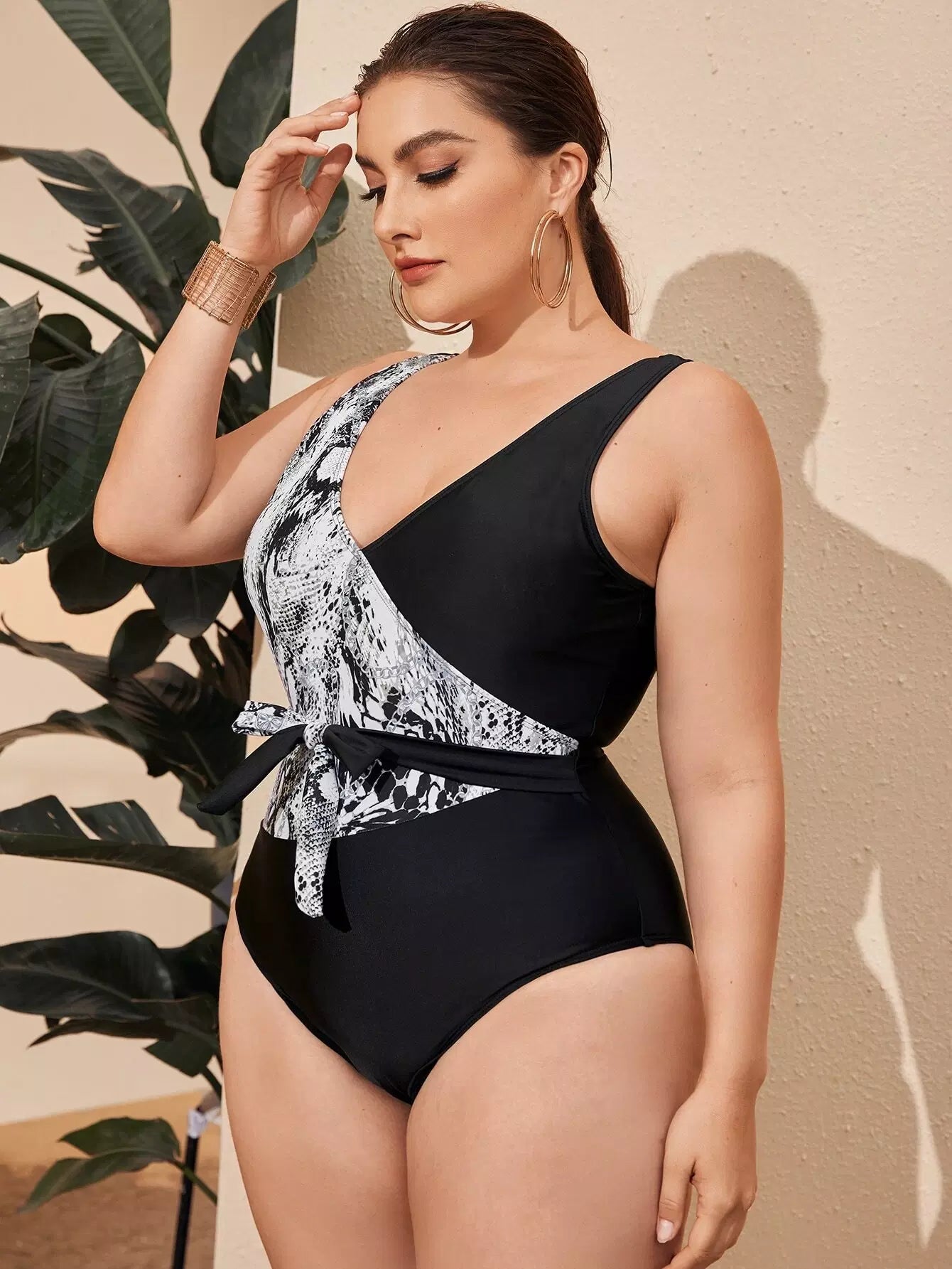 Plus Snakeskin Knot Waist One Piece Swimsuit