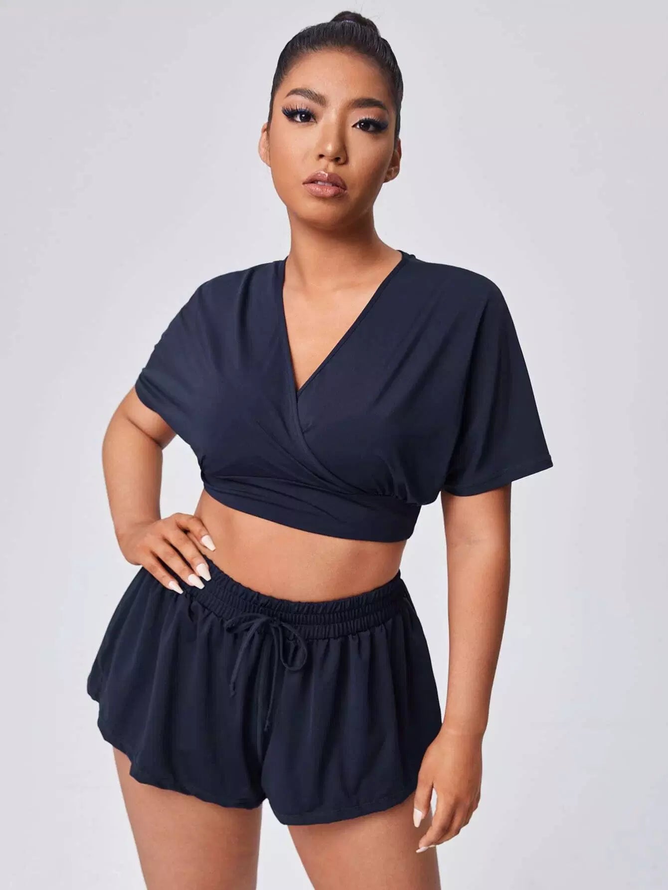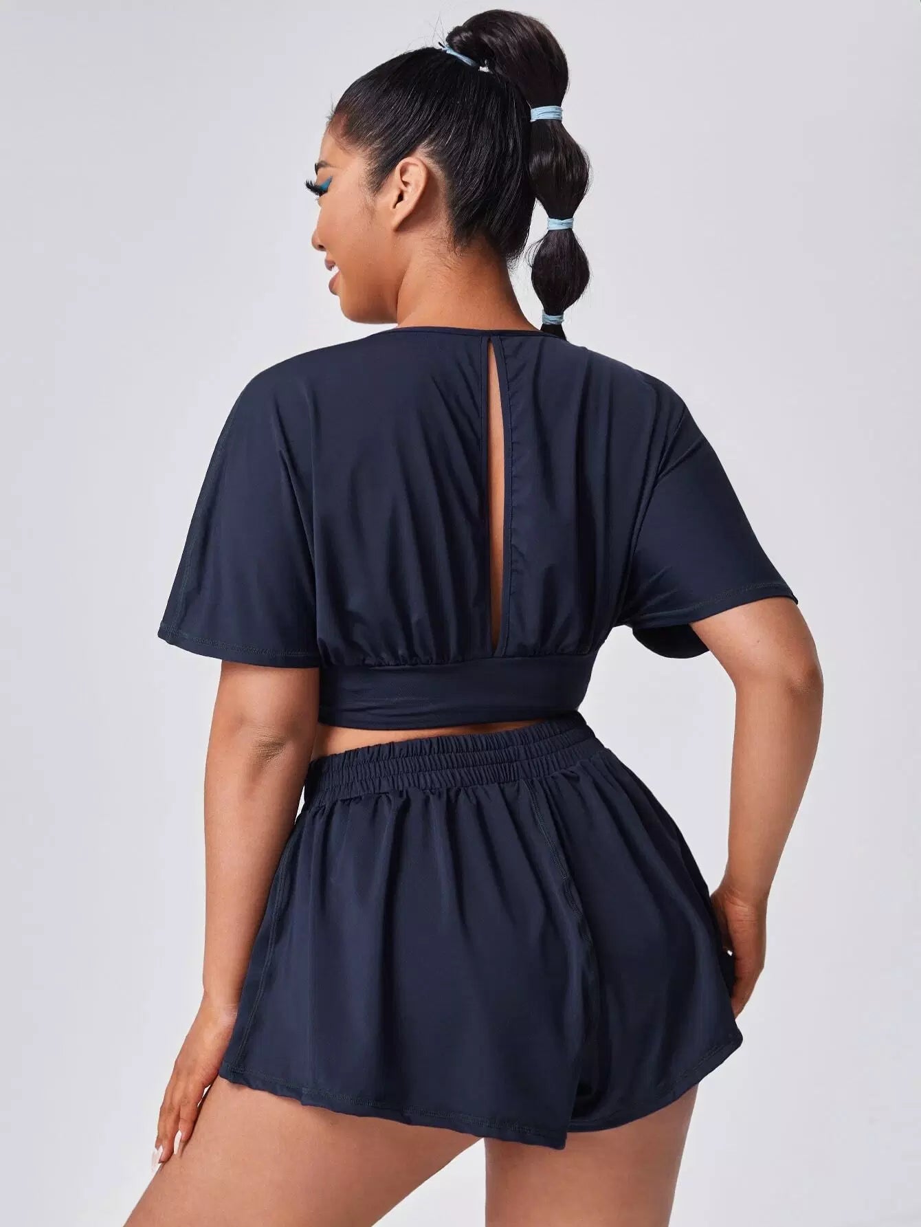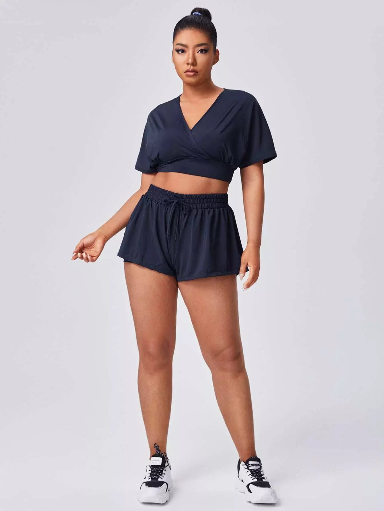 Plus Solid Keyhole Back Sports Top & Shorts
