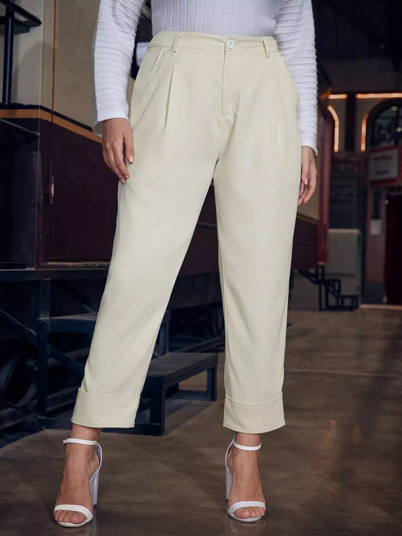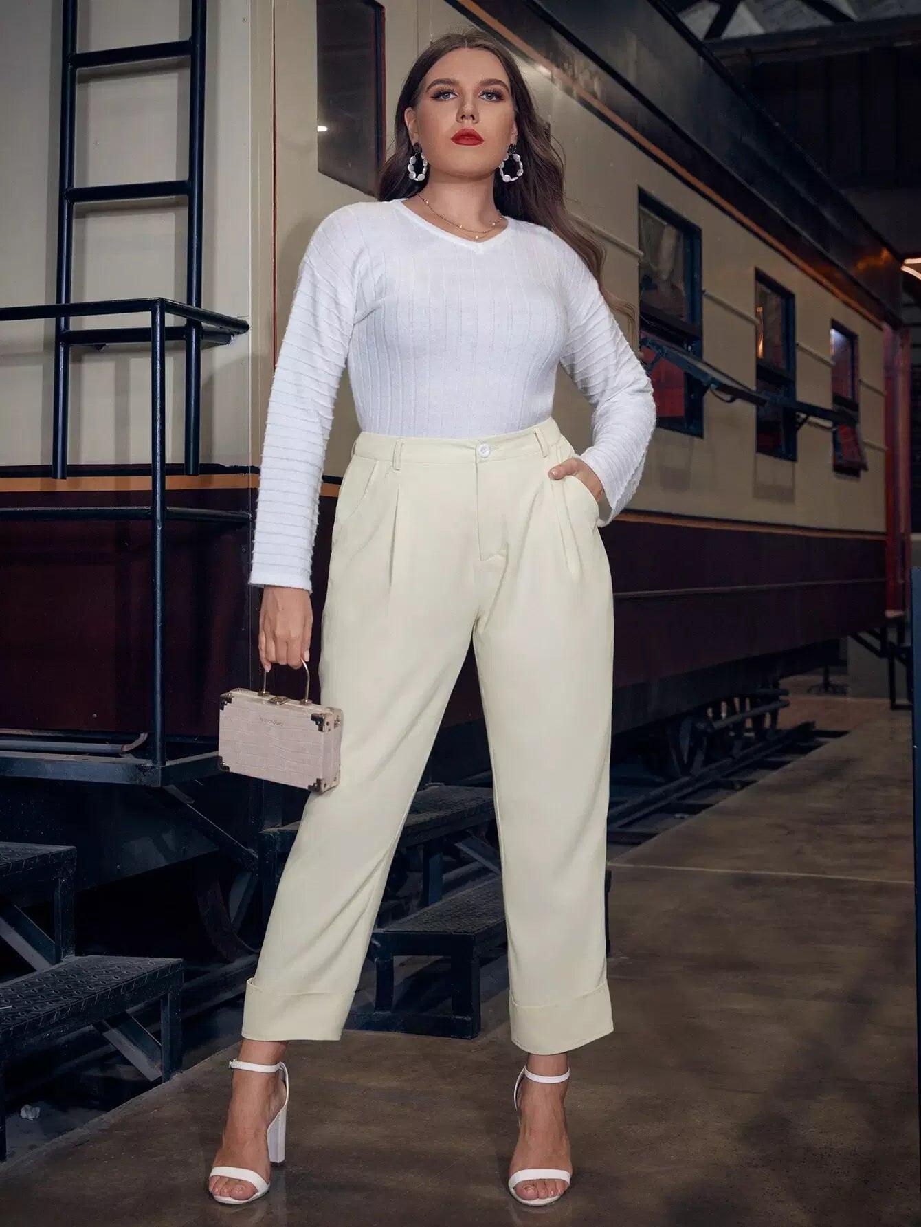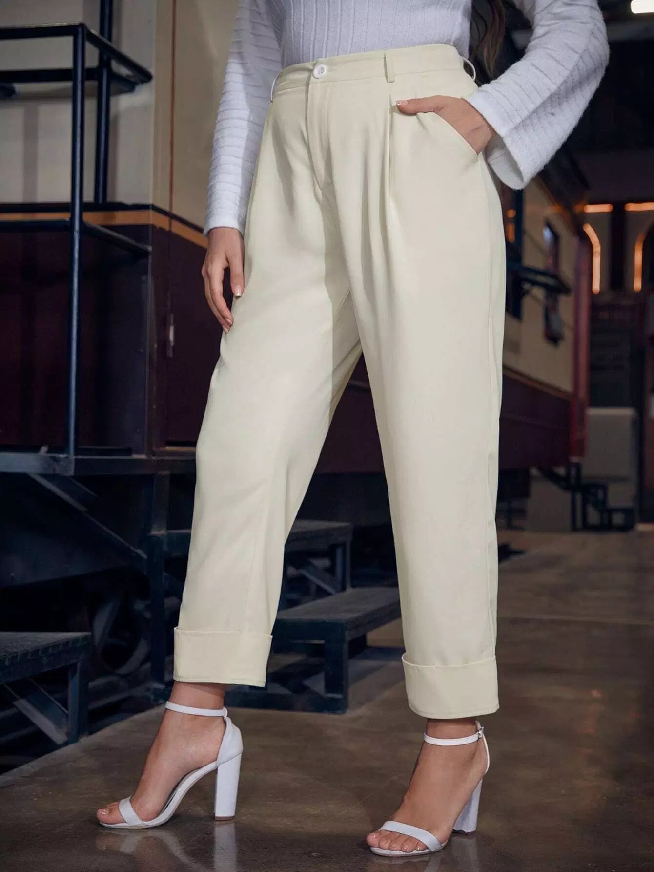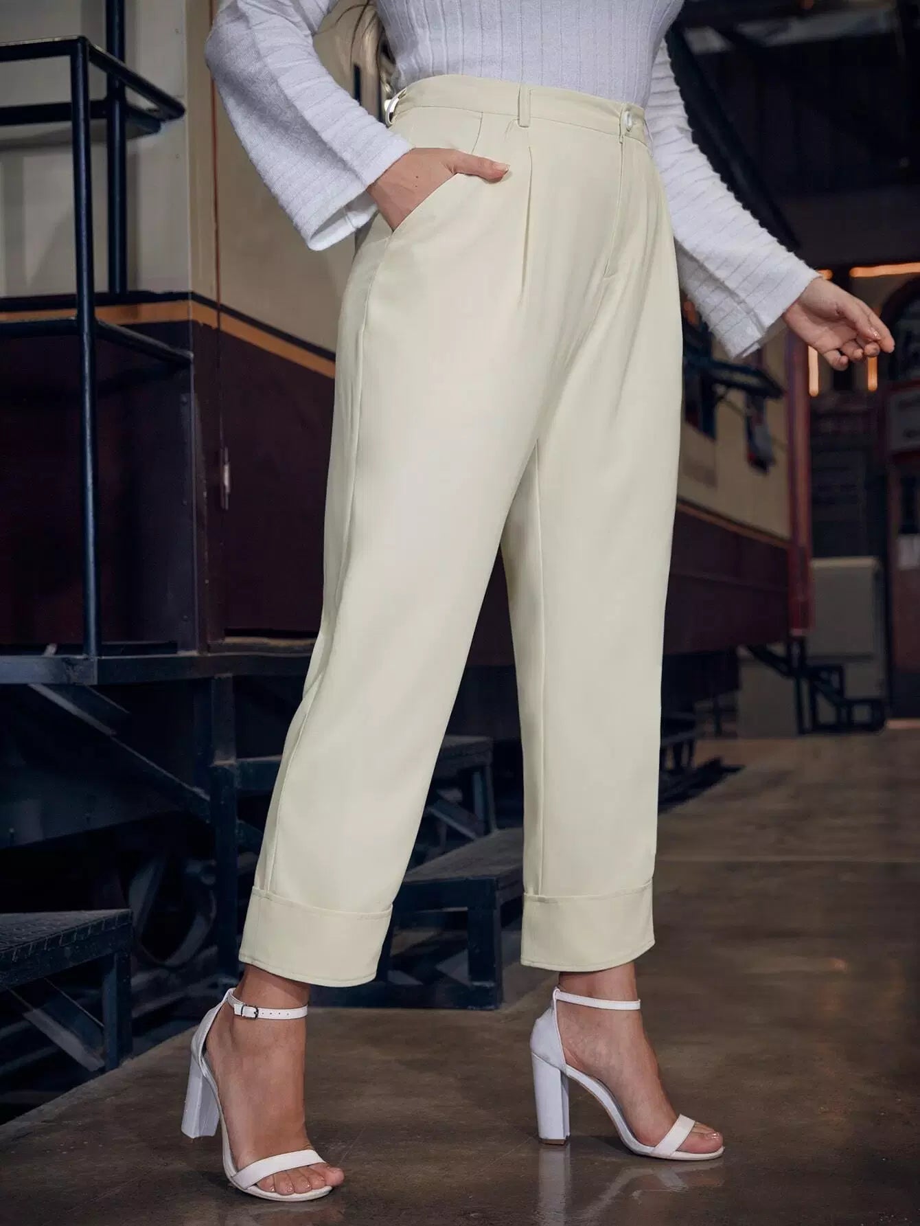 Plus Solid Slant Pocket Pants