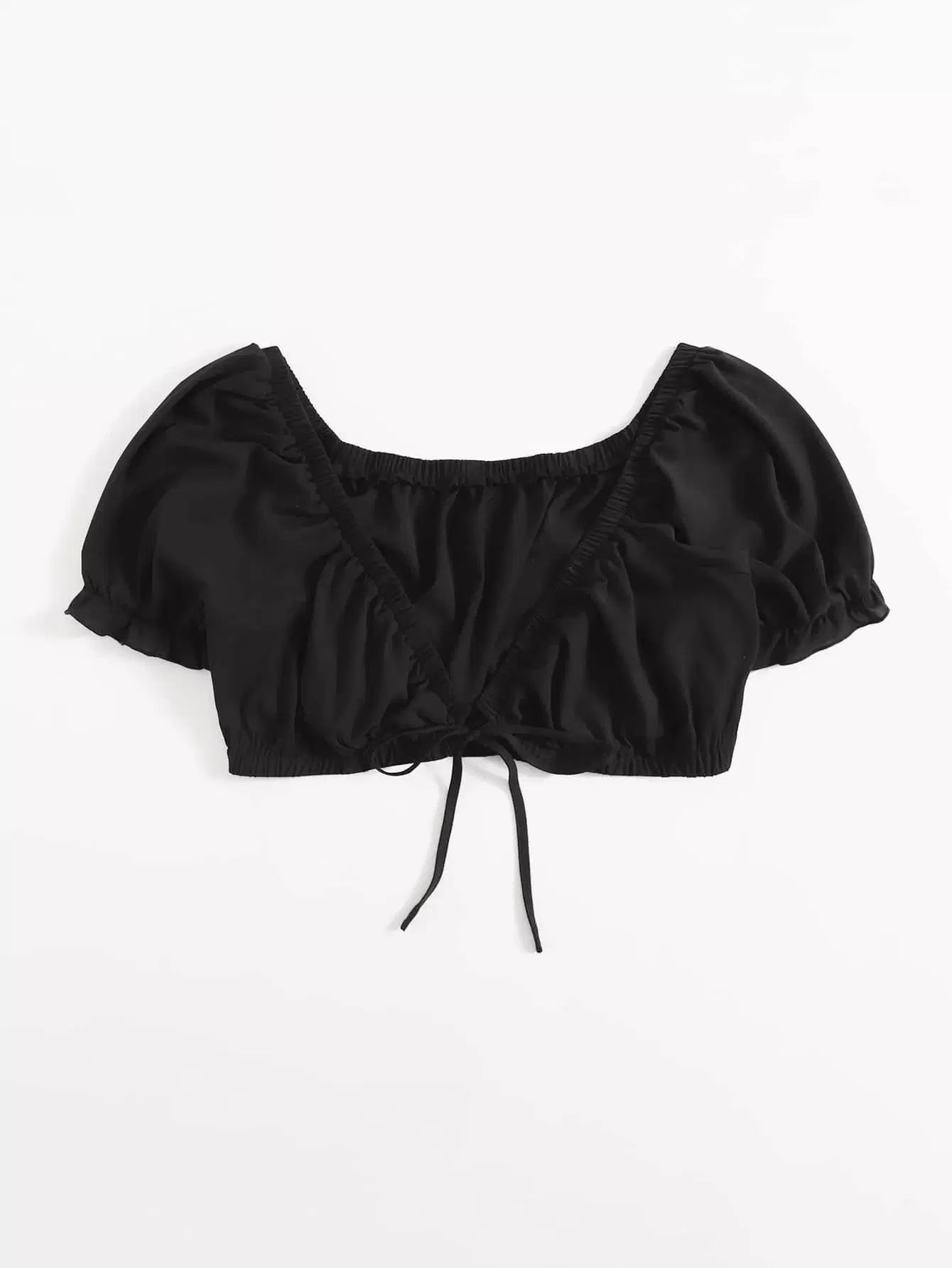 Plus Solid Tie Front Crop Top