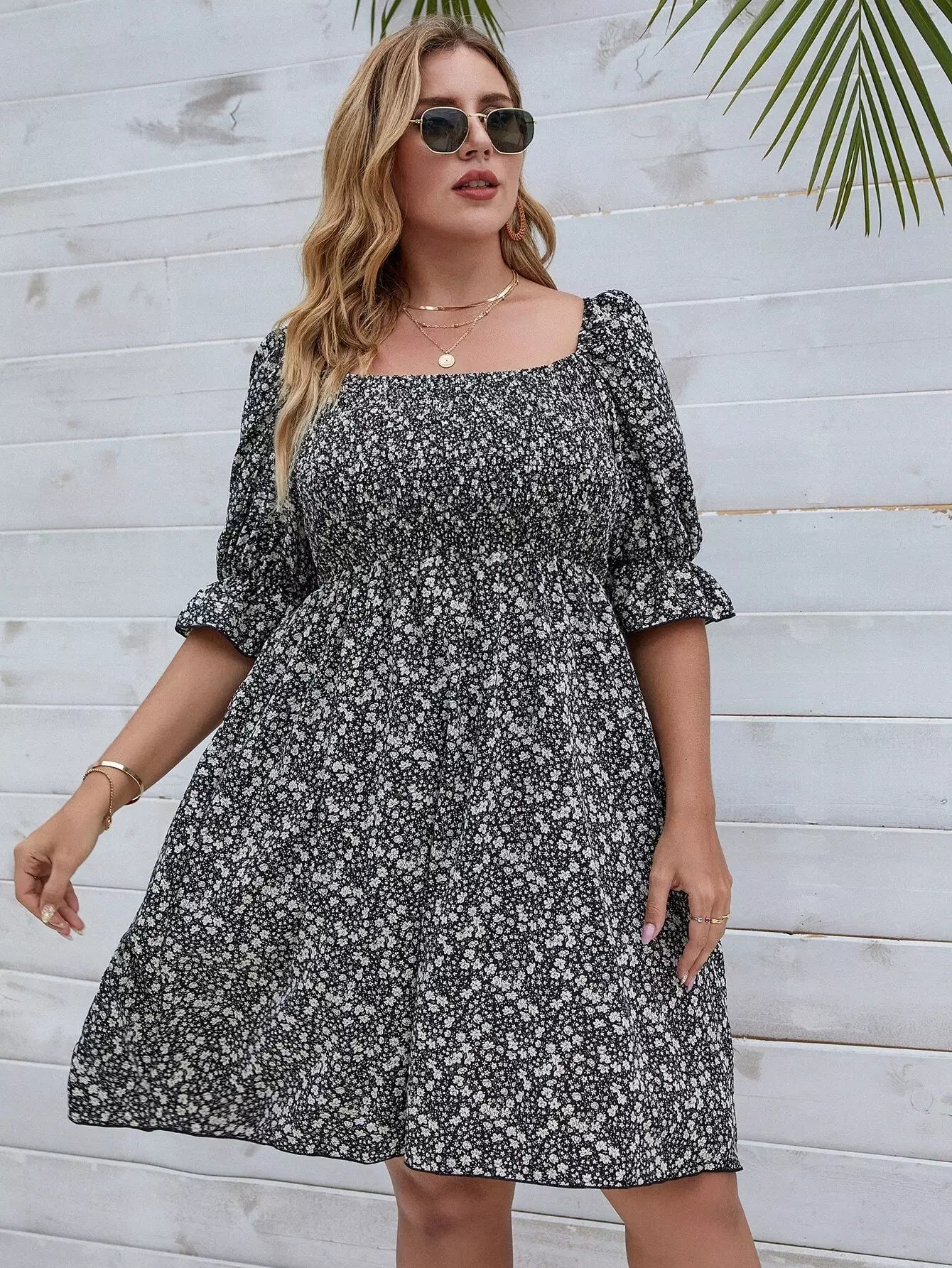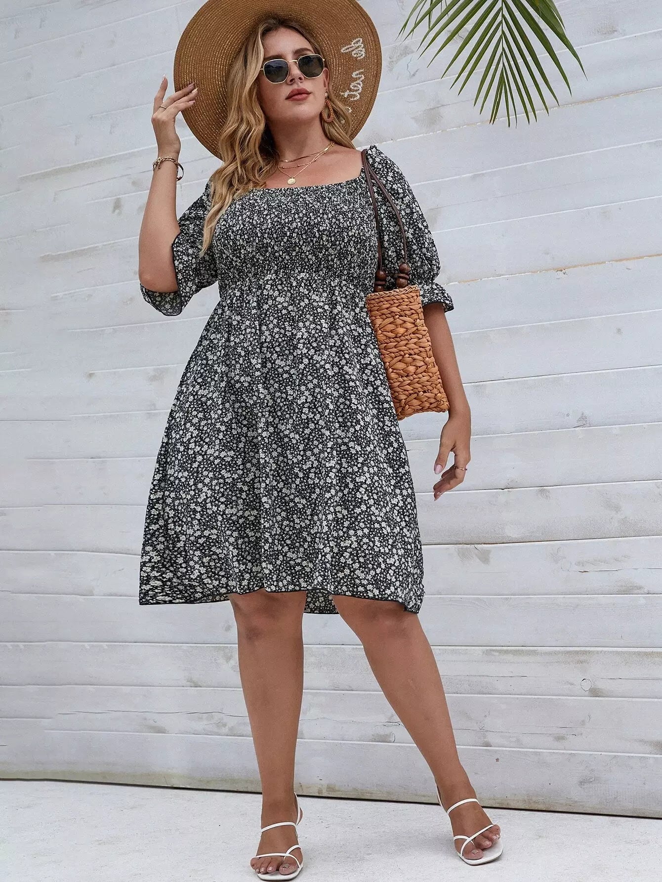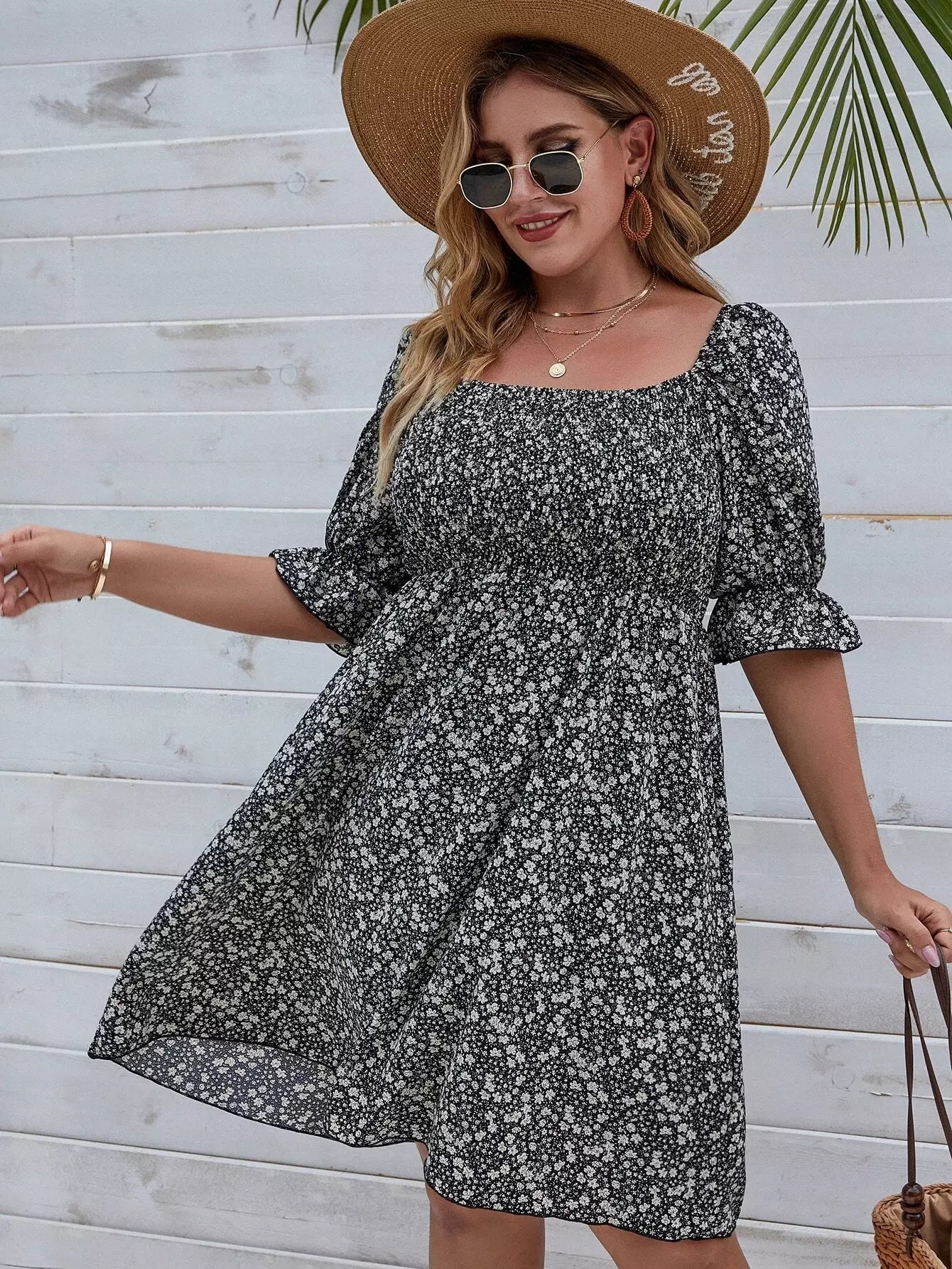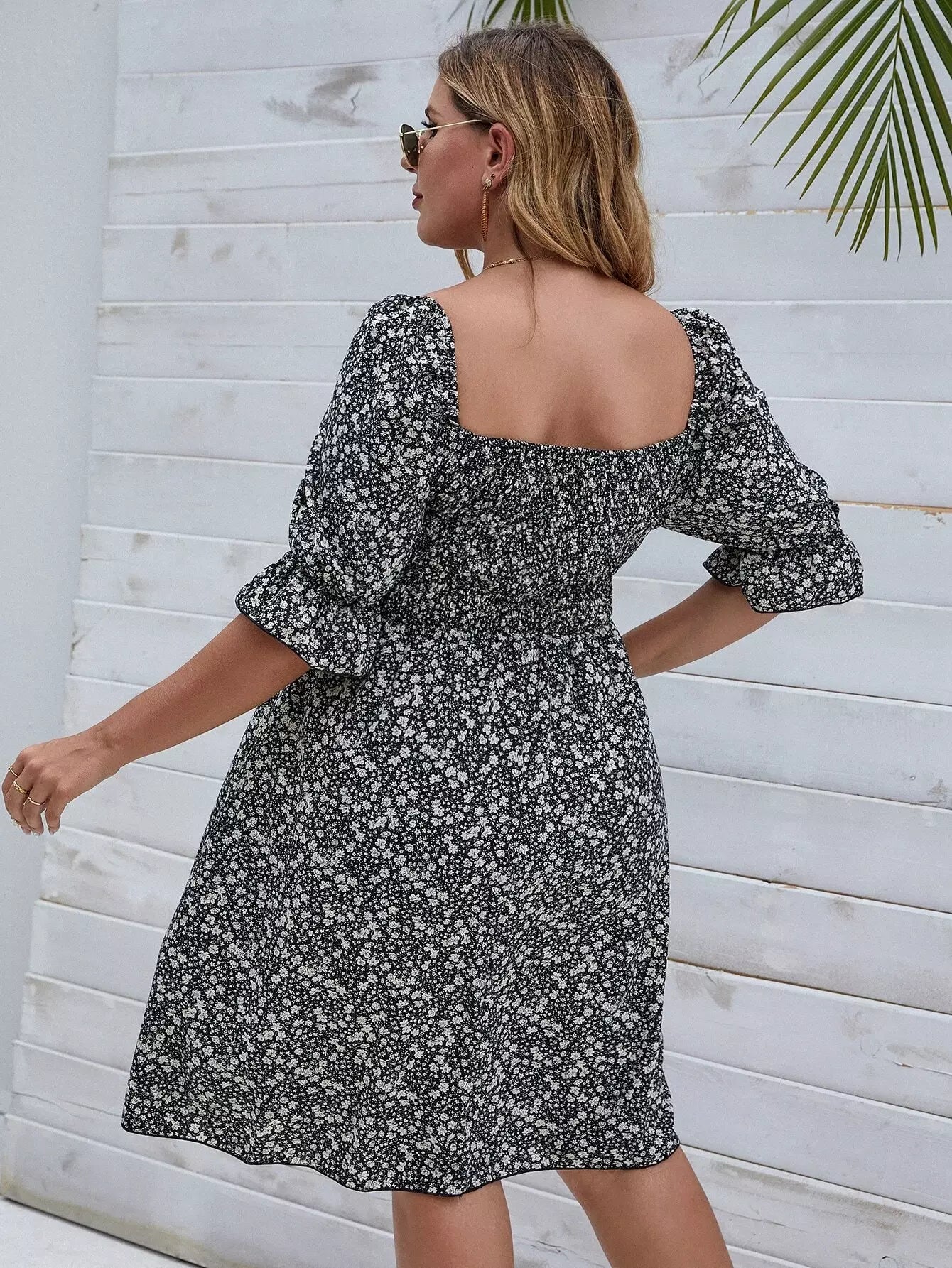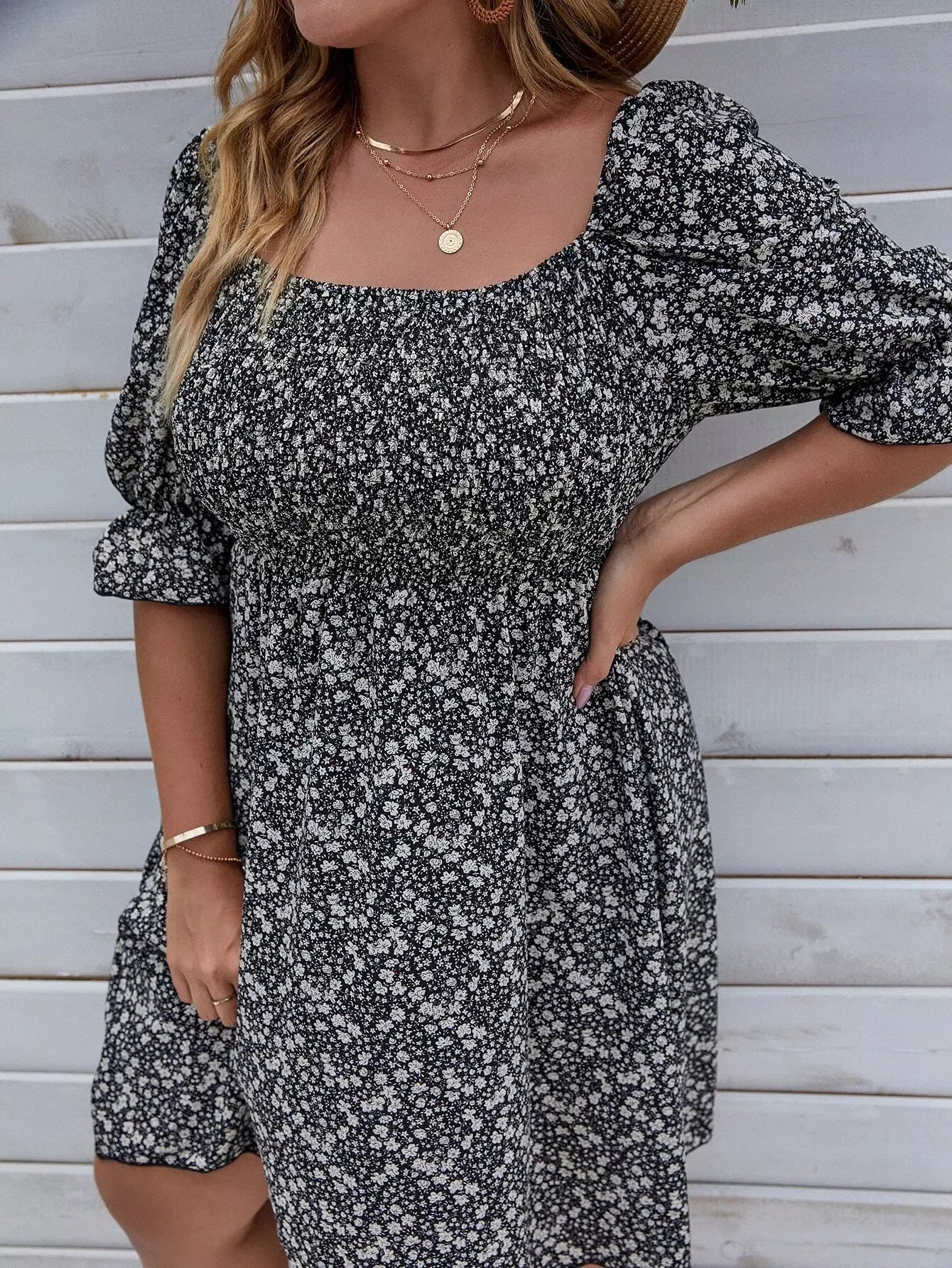 Plus Square Neck Ditsy Floral Milkmaid Dress