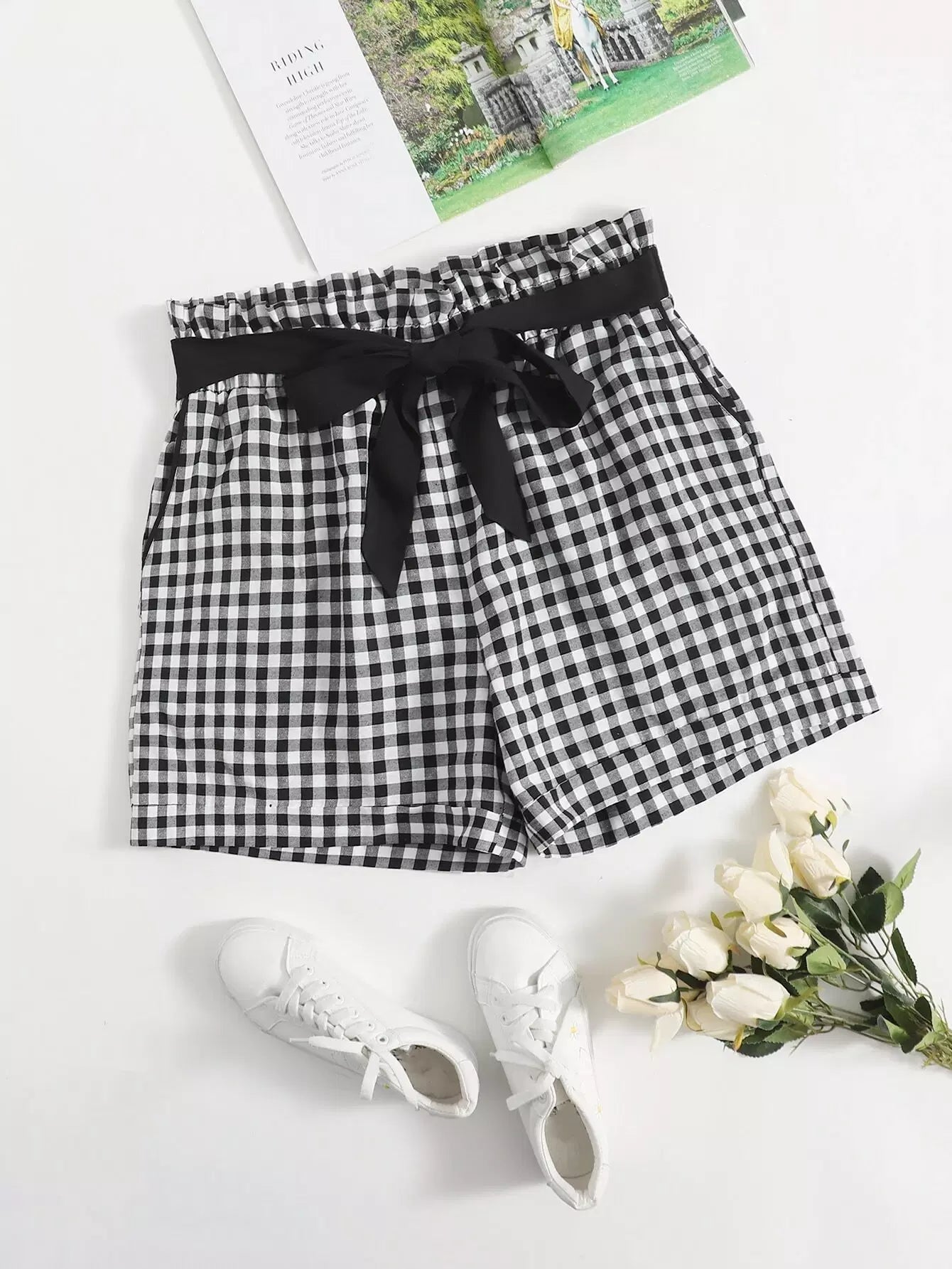 Plus Tie Front Buffalo Plaid Shorts