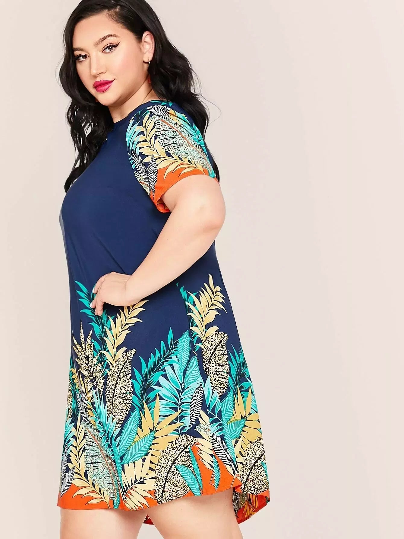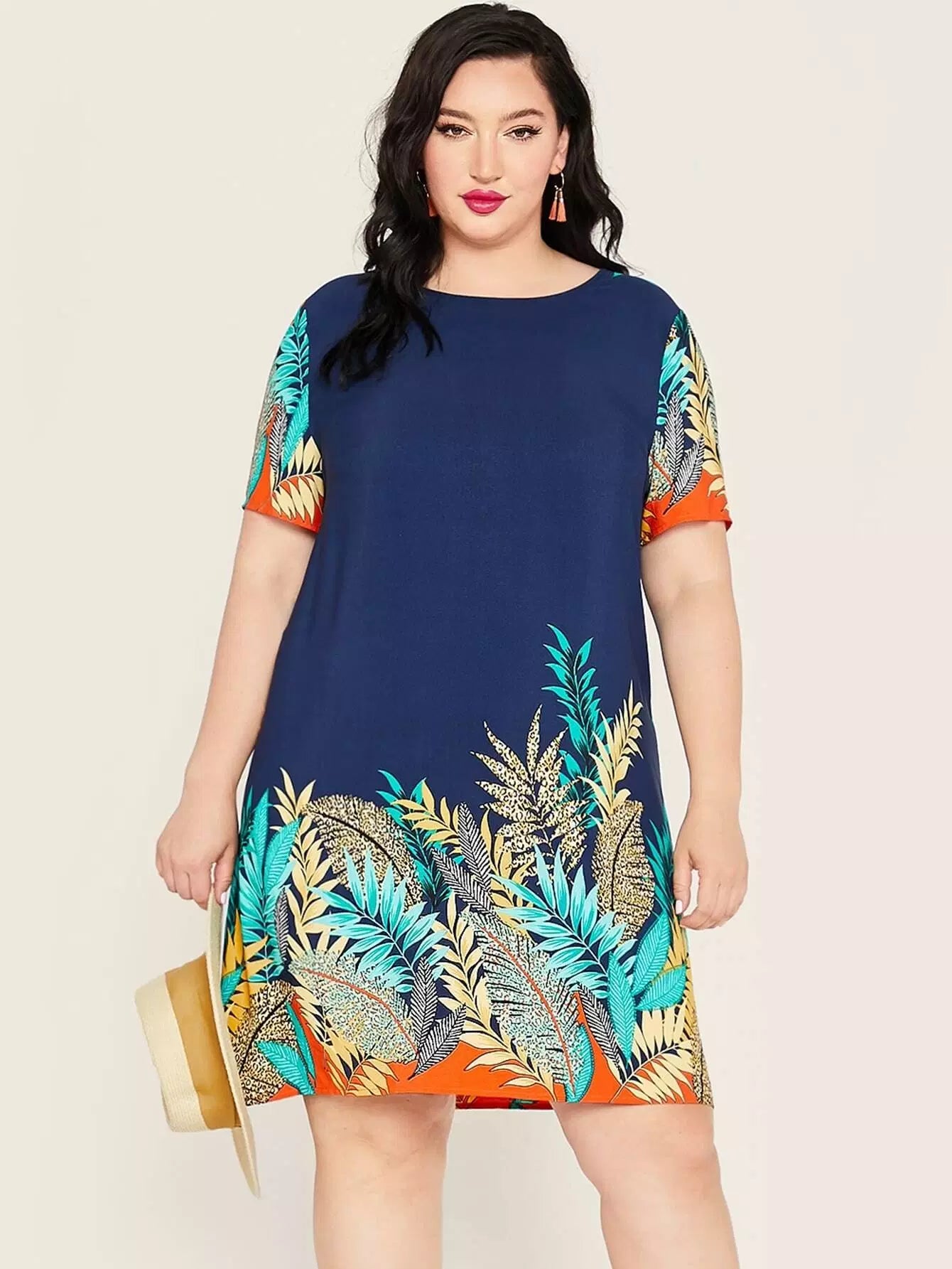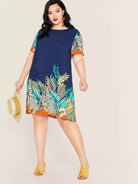 Plus Tropical Print Tunic Dress