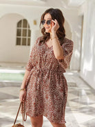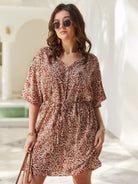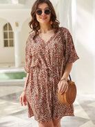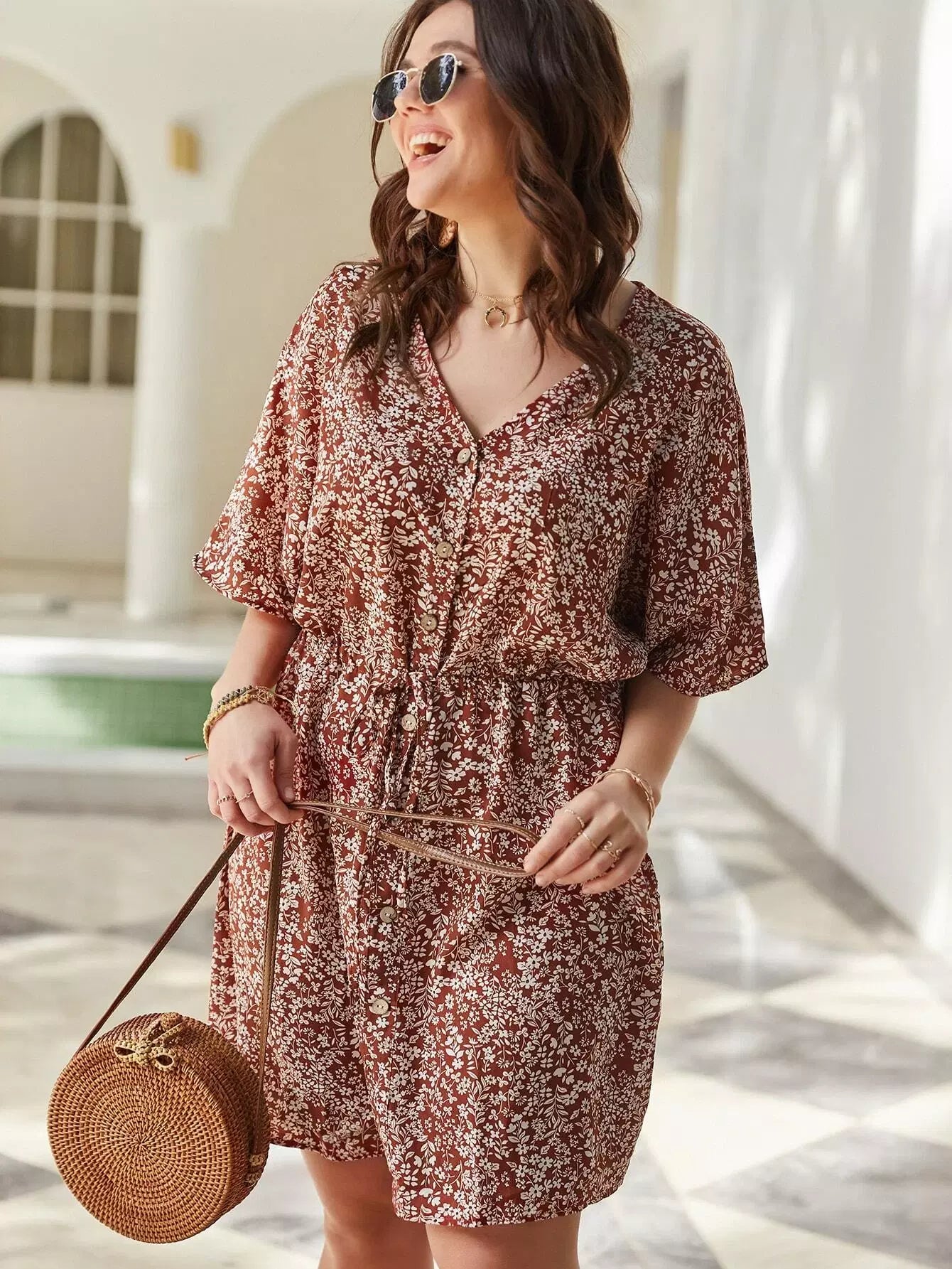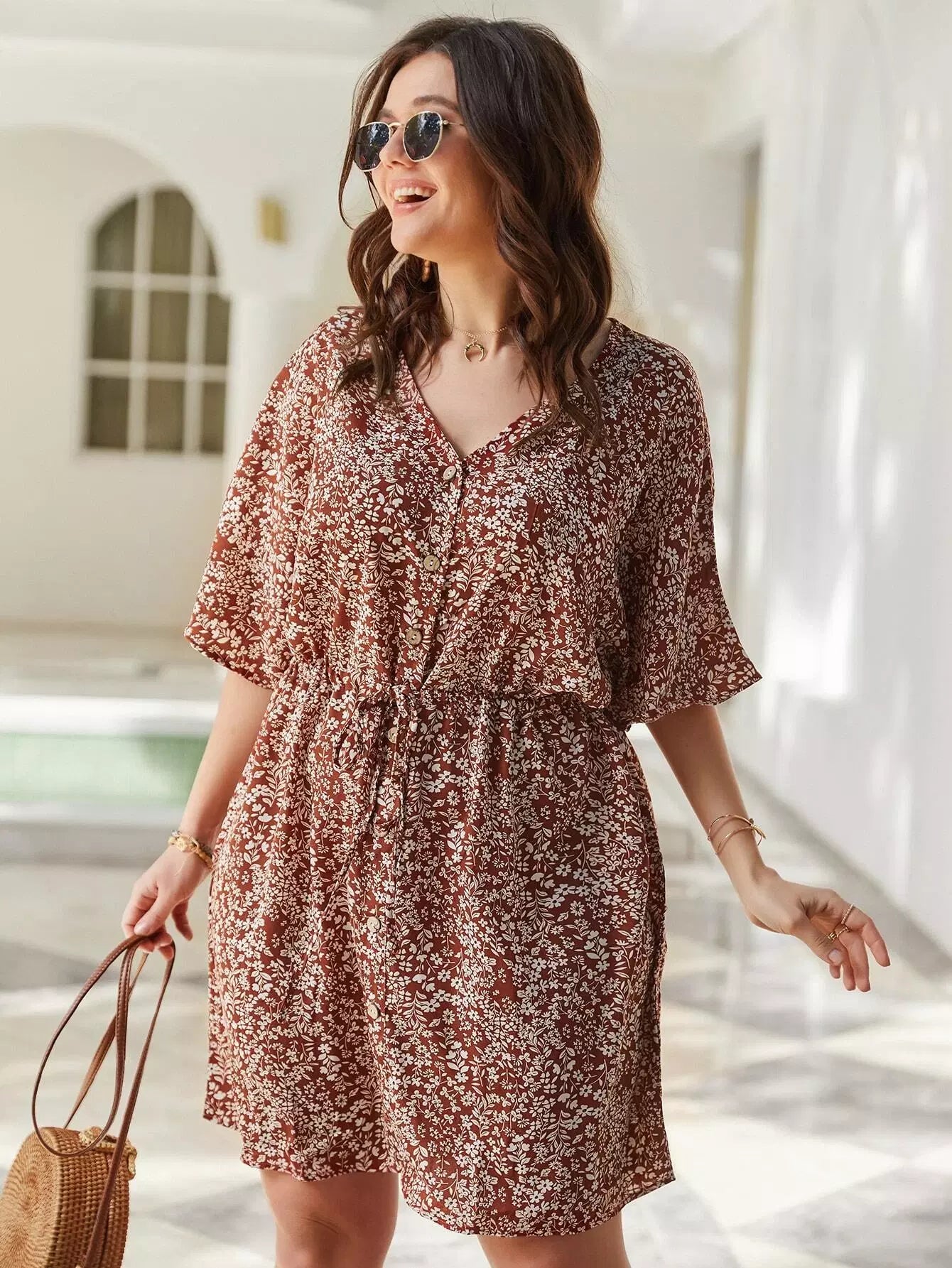 Plus V-neck Ditsy Floral Batwing Sleeve Dress