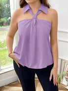 Privï½ Plus Size Women's Elegant Office Casual Collared Sleeveless Shirt, Versatile For Work, Dating,