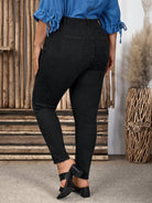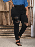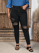 SHEIN LUNE Plus Size Front Button Pocket Distressed Minimalist Denim Jeans