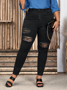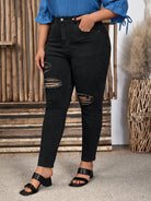 women SHEIN LUNE Plus Size Front Button Pocket Distressed Minimalist Denim Jeans