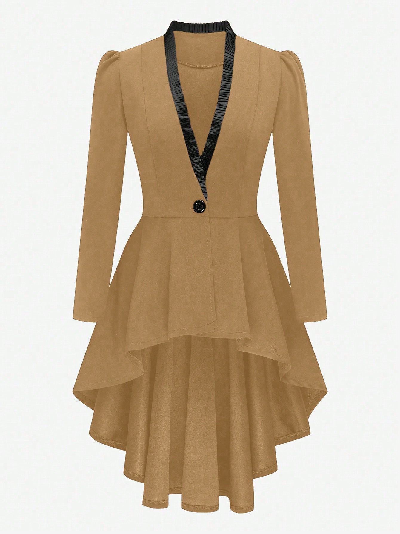 SHEIN LUNE Plus Size Women Casual Knit V-Neck Ruffle High Low Jacket