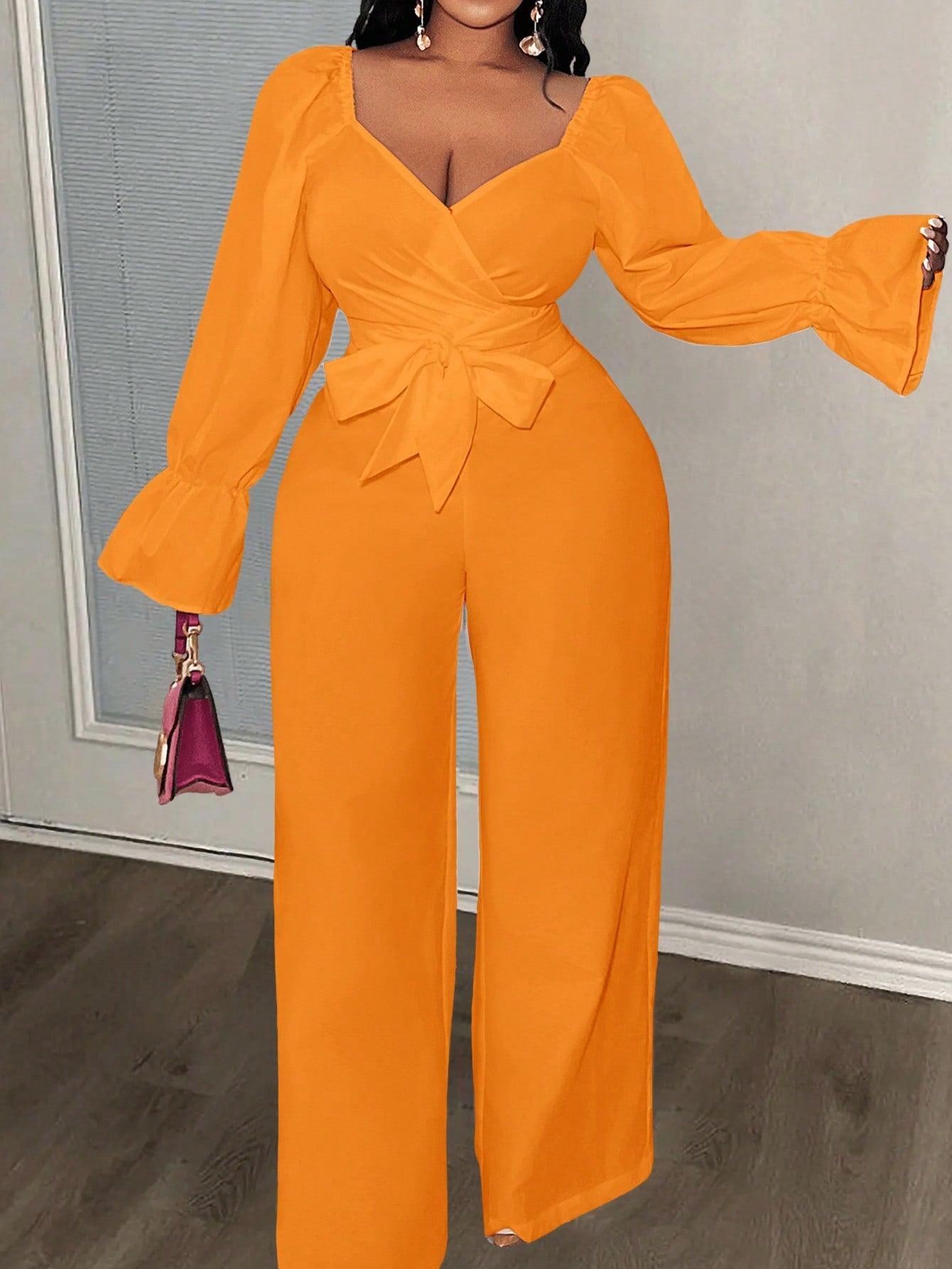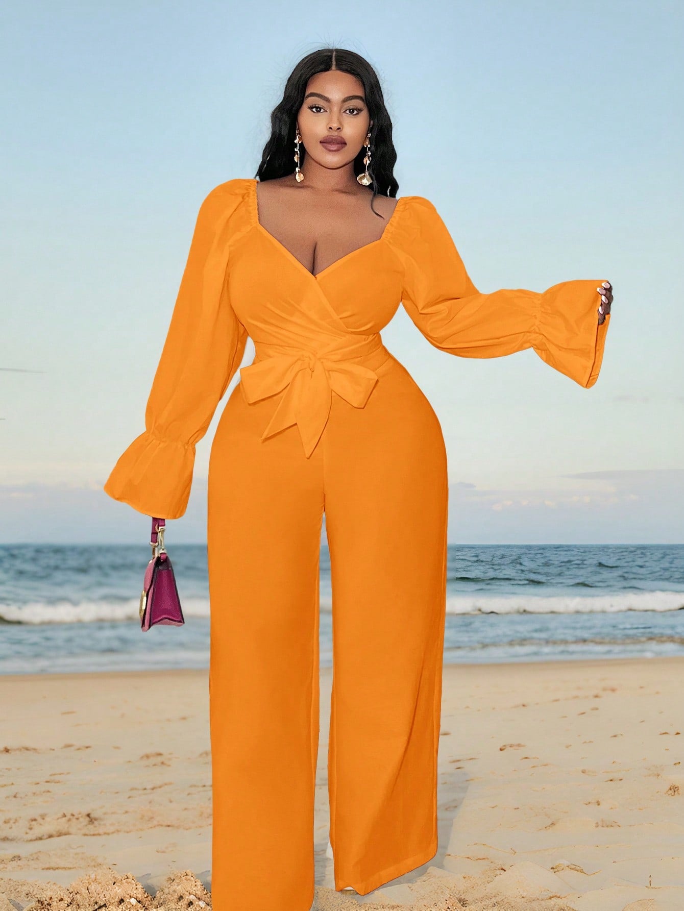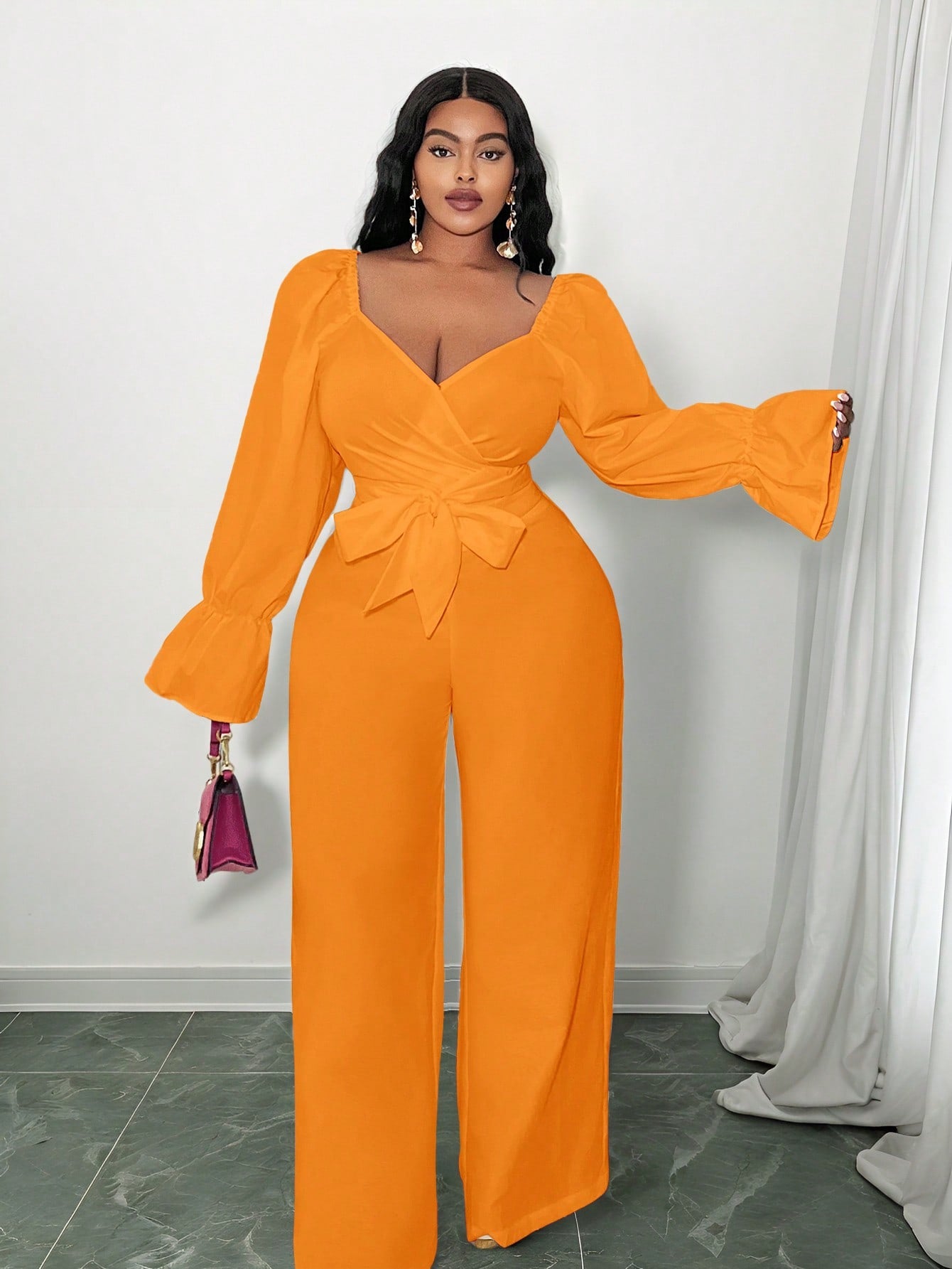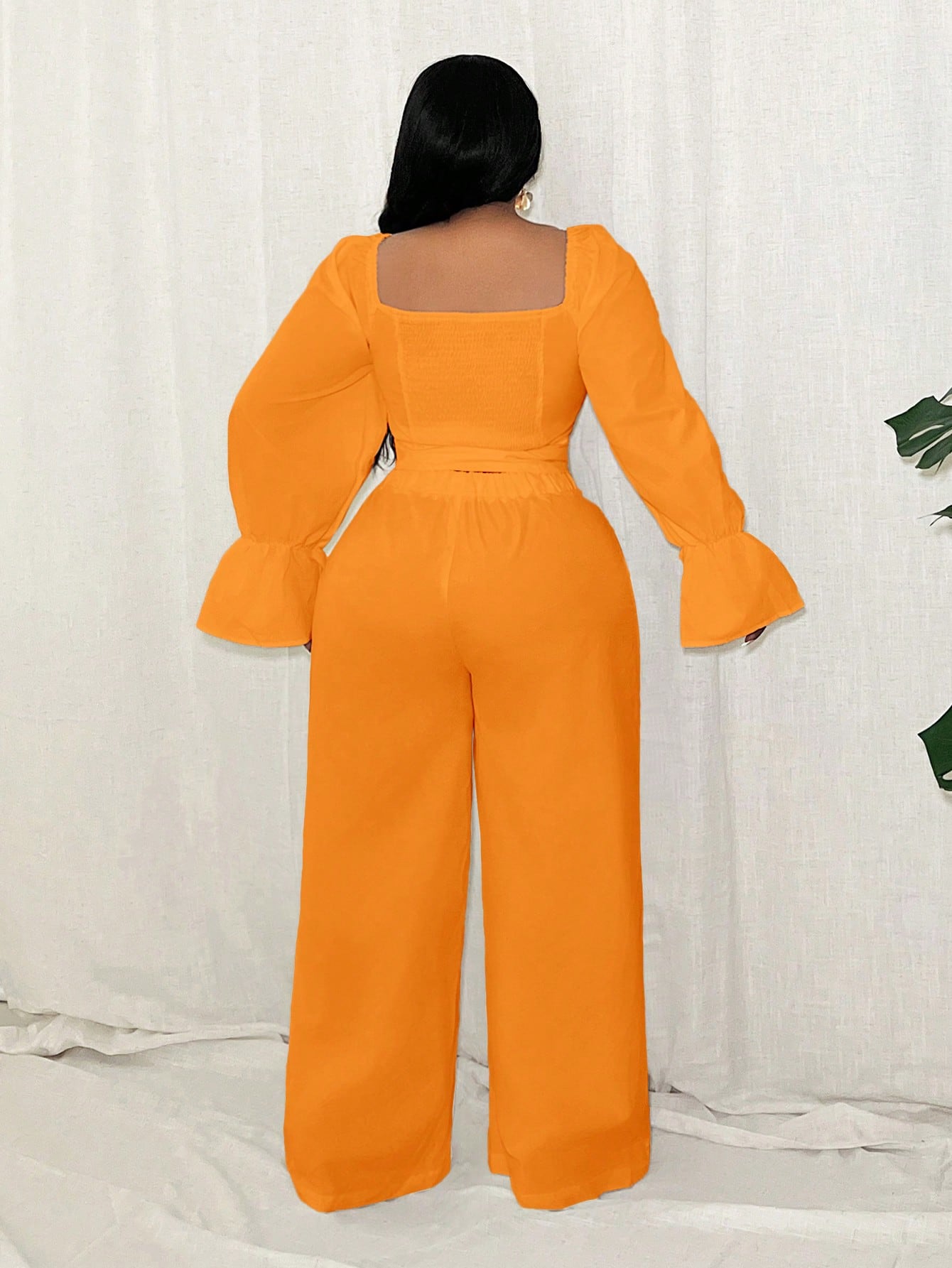 Slaydiva 2pcs/Set 2024 New Versatile Minimalist Plus Size White Casual Holiday Loose Pants And Wrap Blouse Set