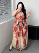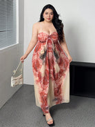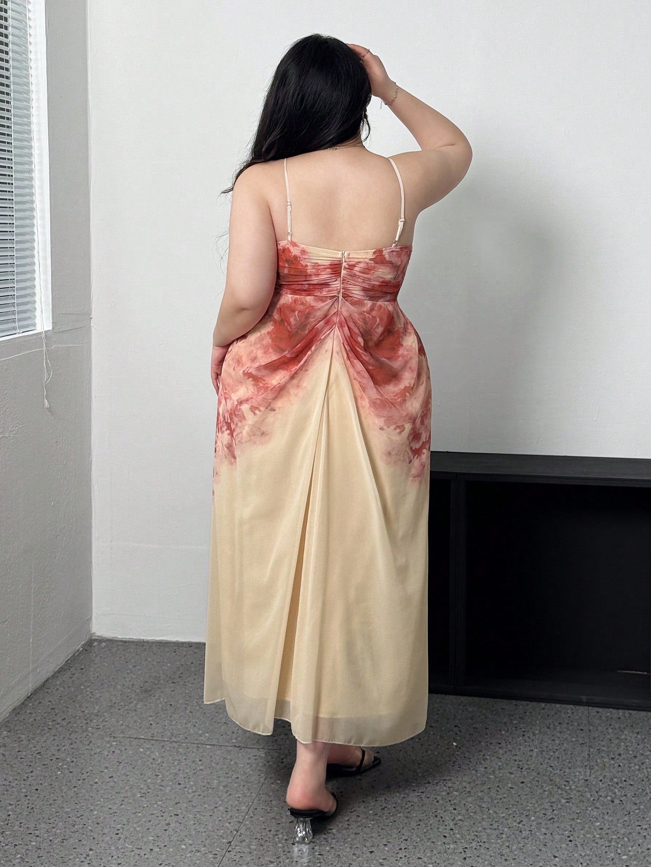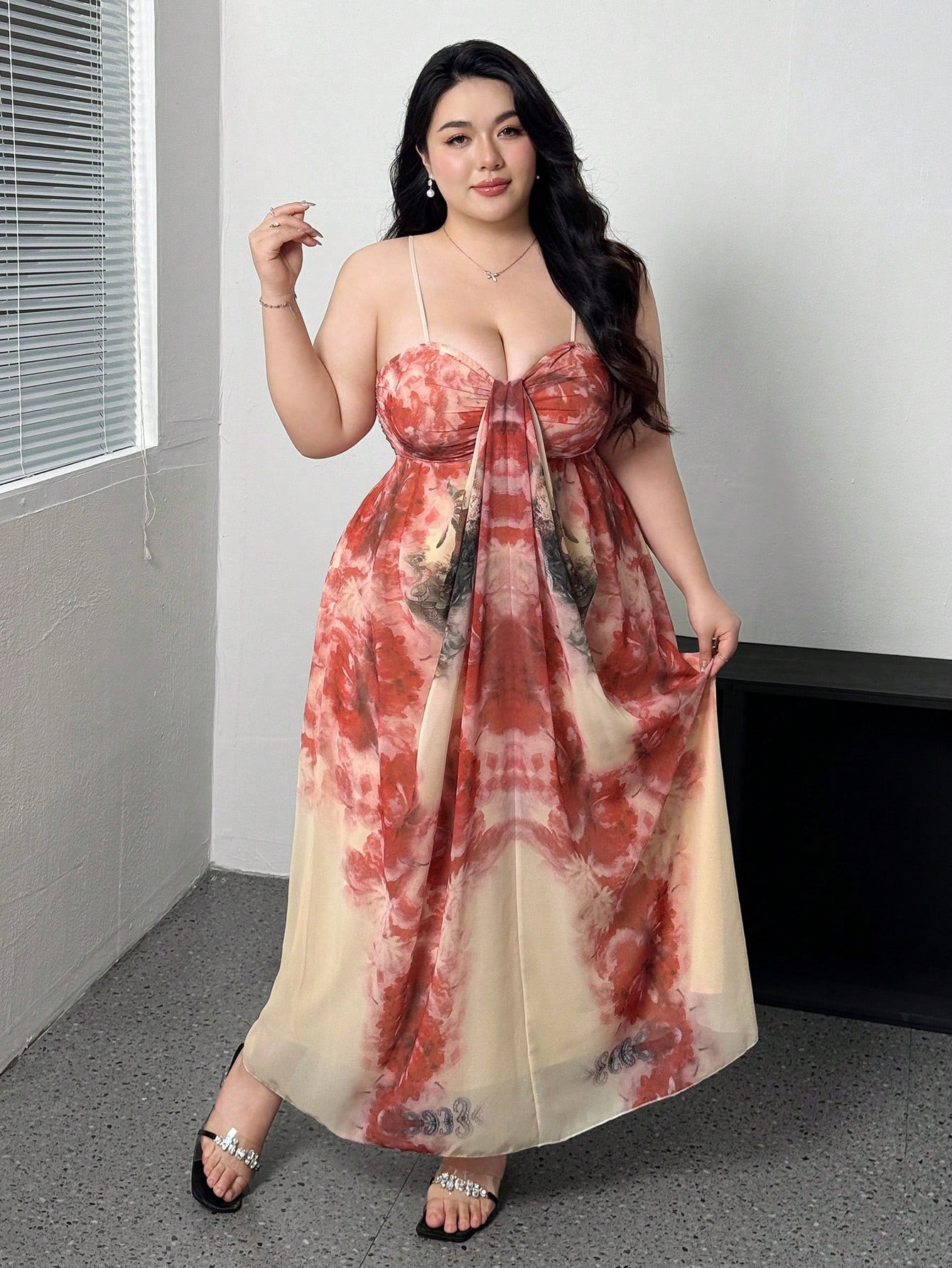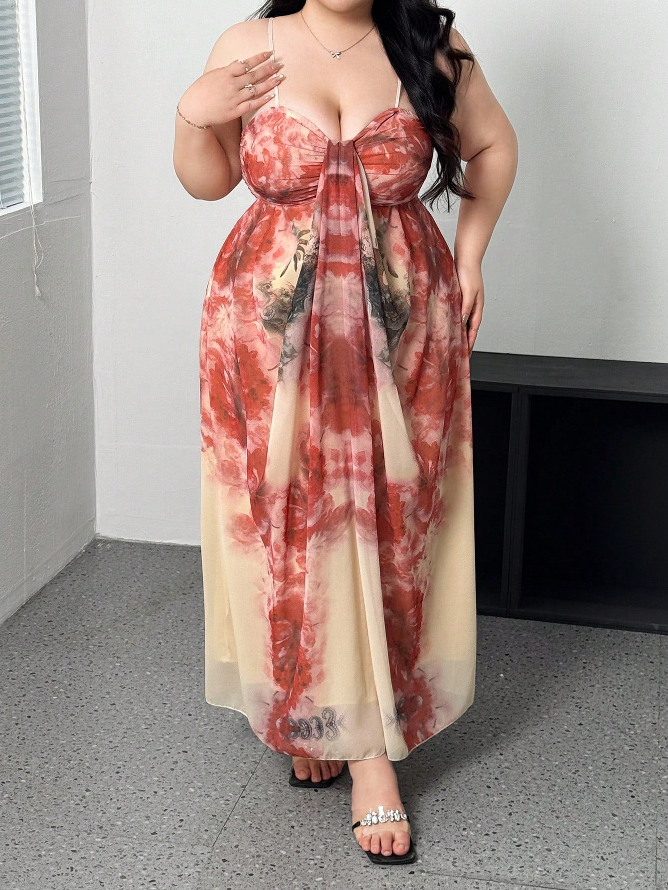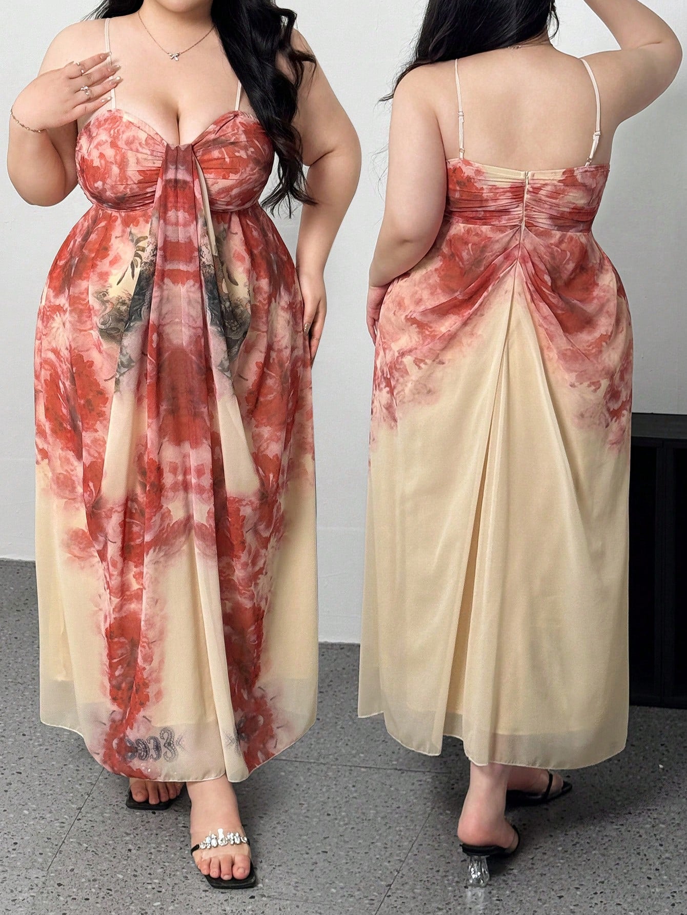 Vibekara Plus Size Women Summer Maxi Chiffon Print Slip Dress