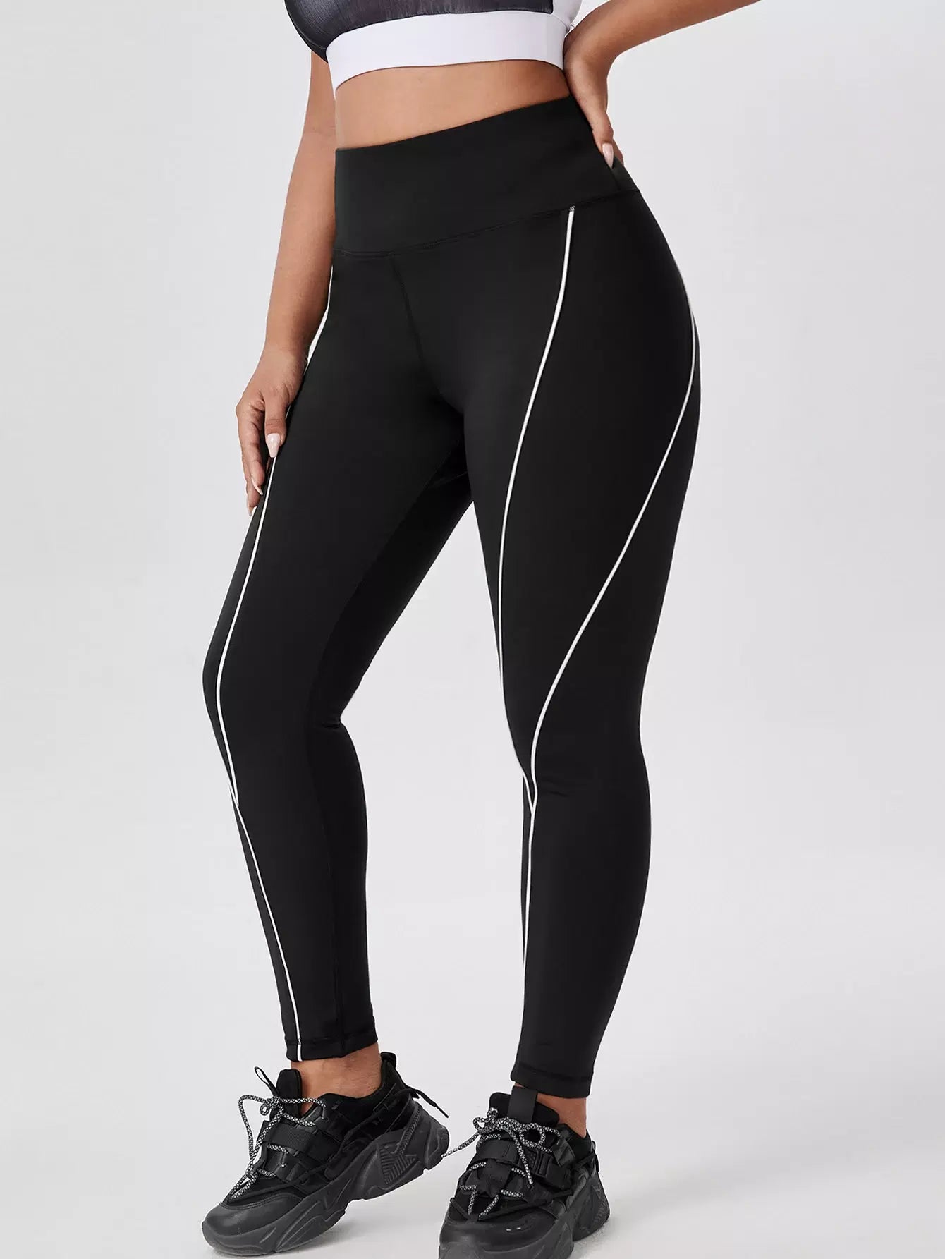 Plus Contrast Binding Sports Leggings