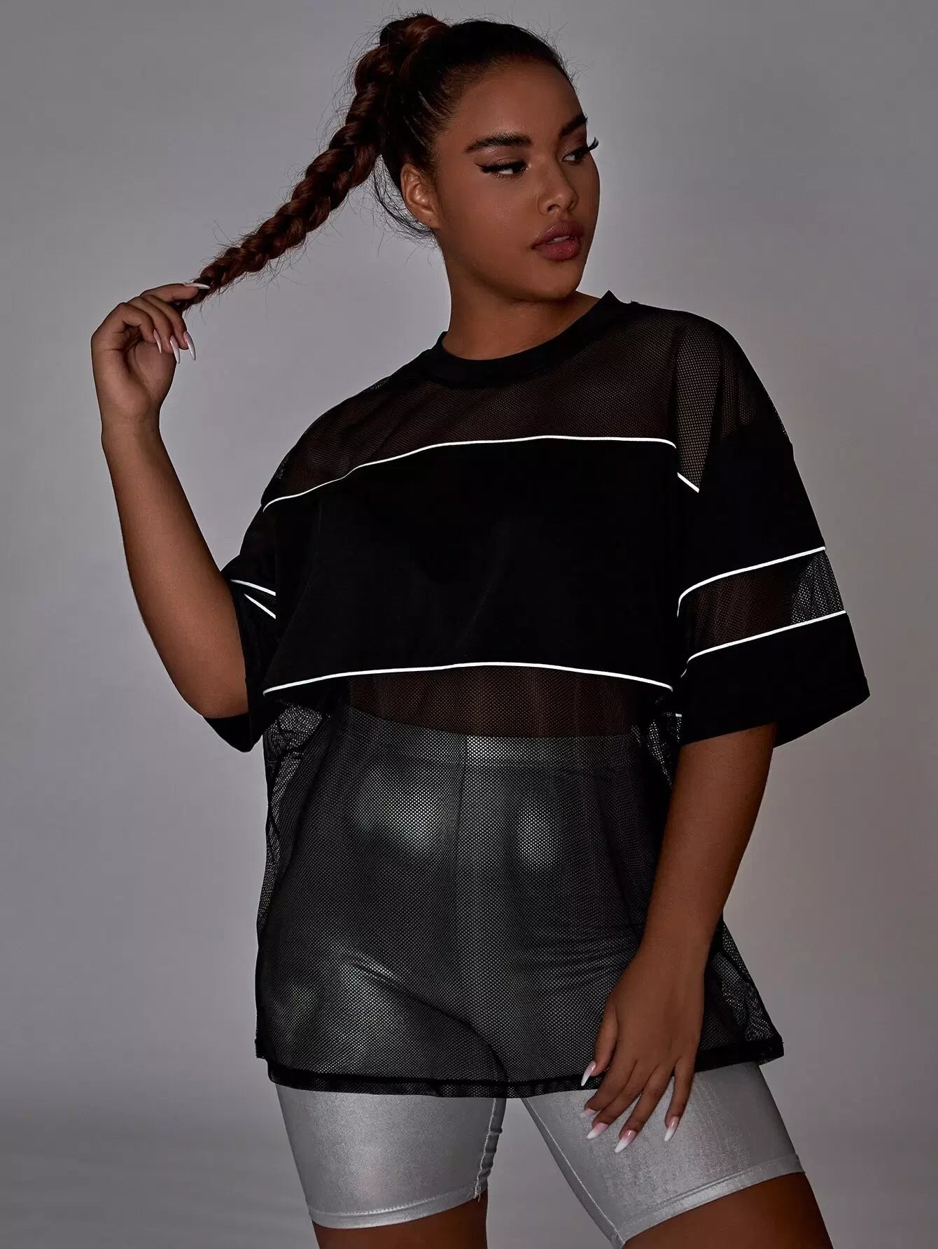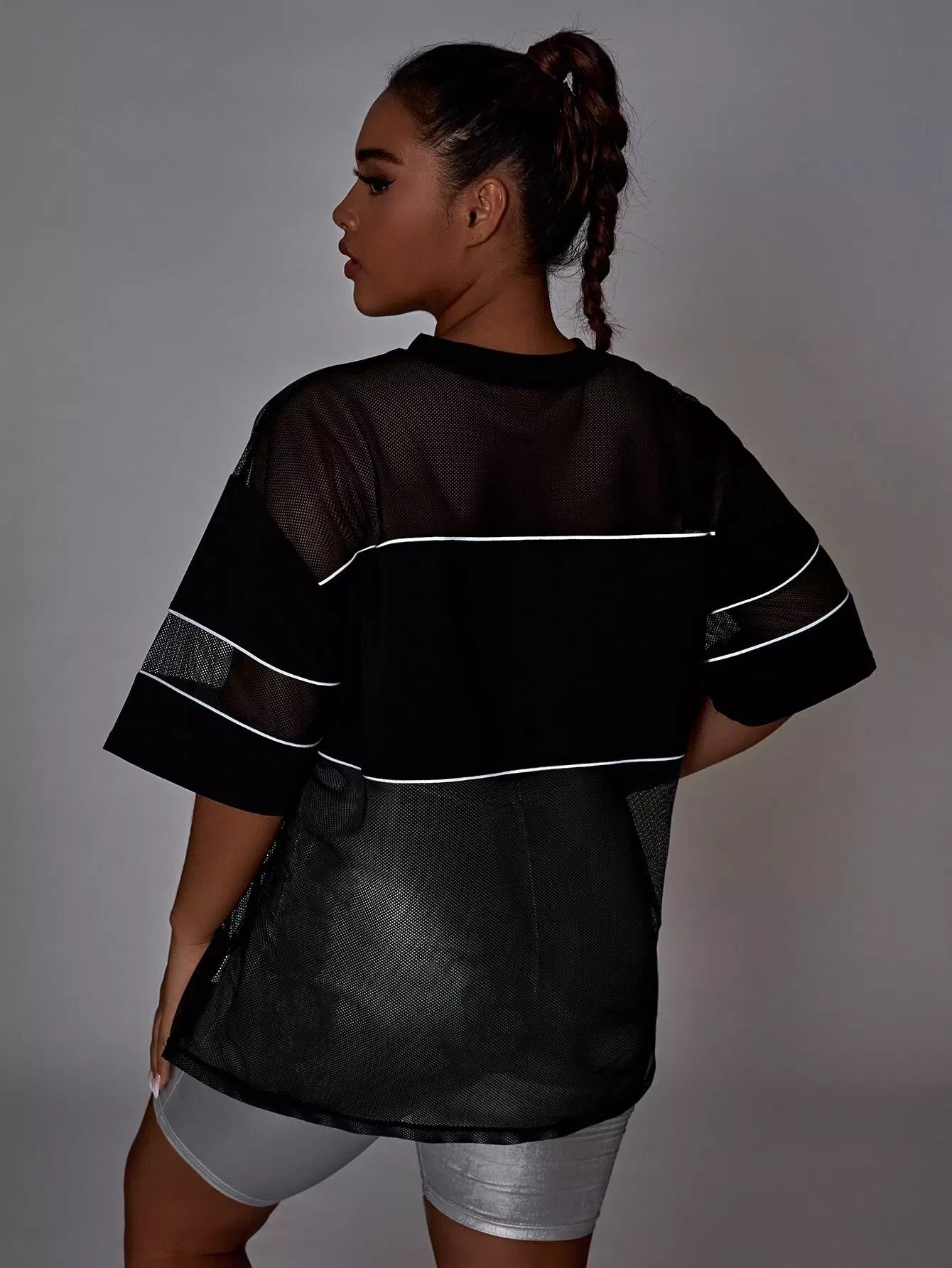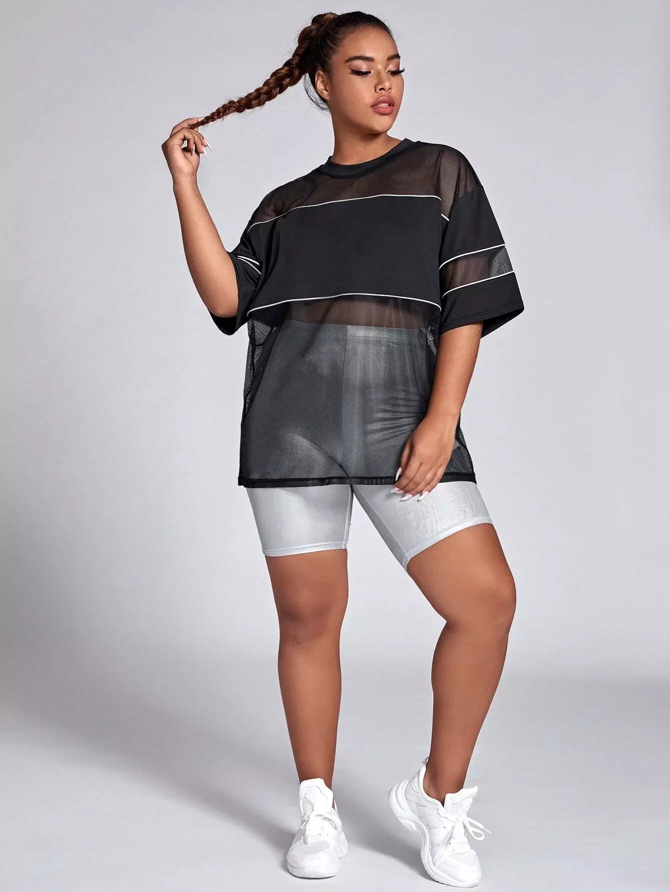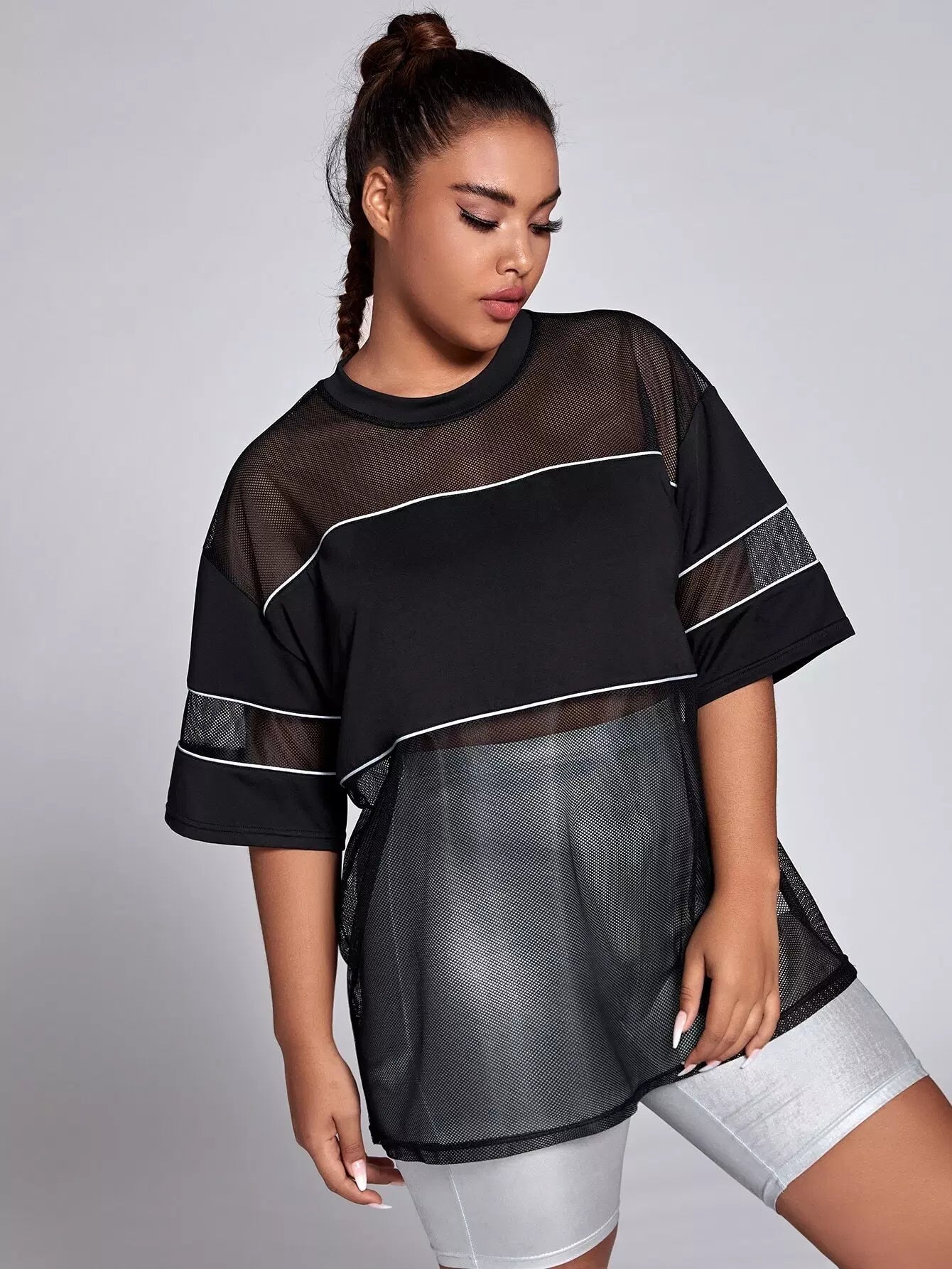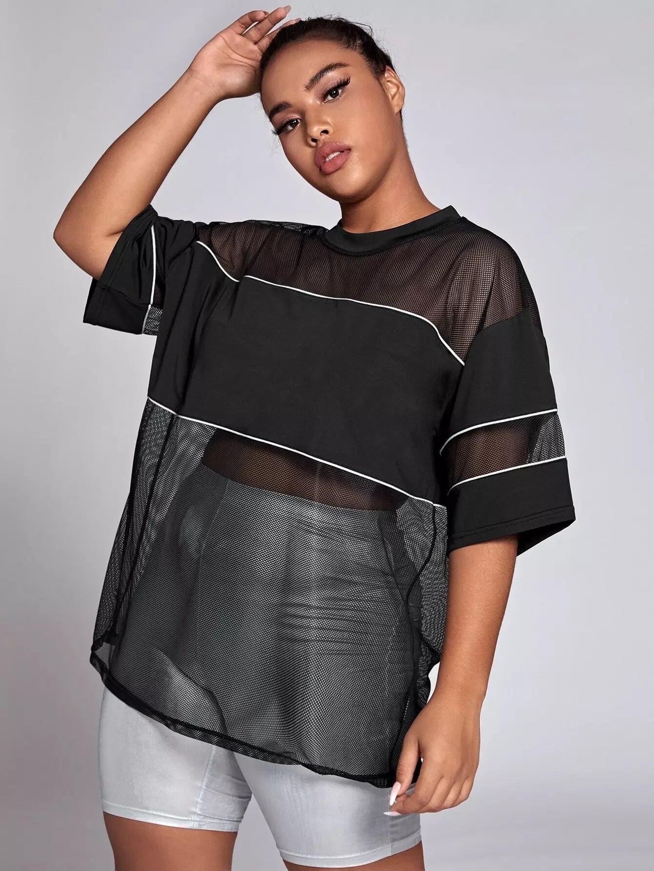 Plus Contrast Mesh Reflective Binding Sports Top