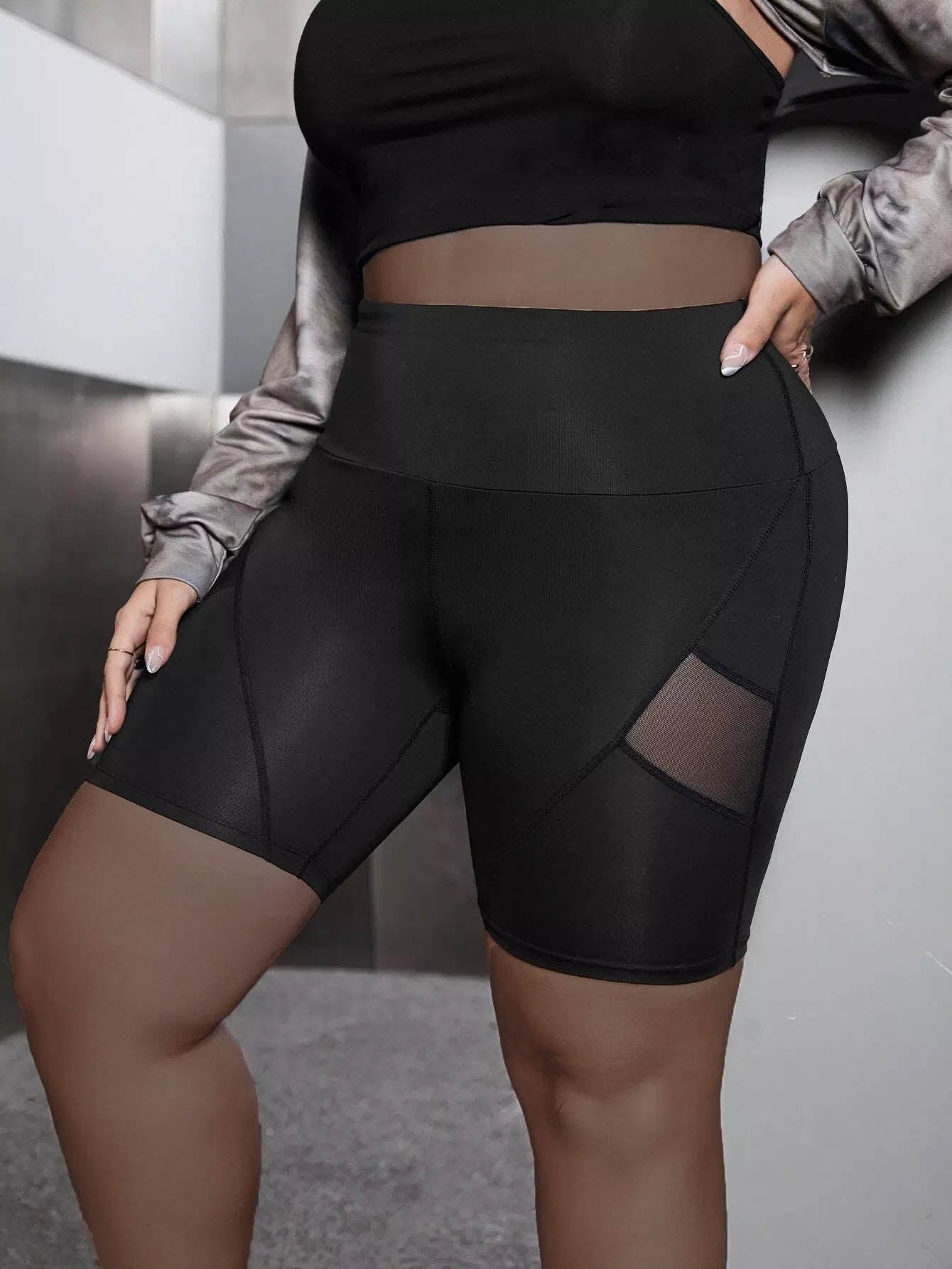 Plus Contrast Mesh Sports Shorts