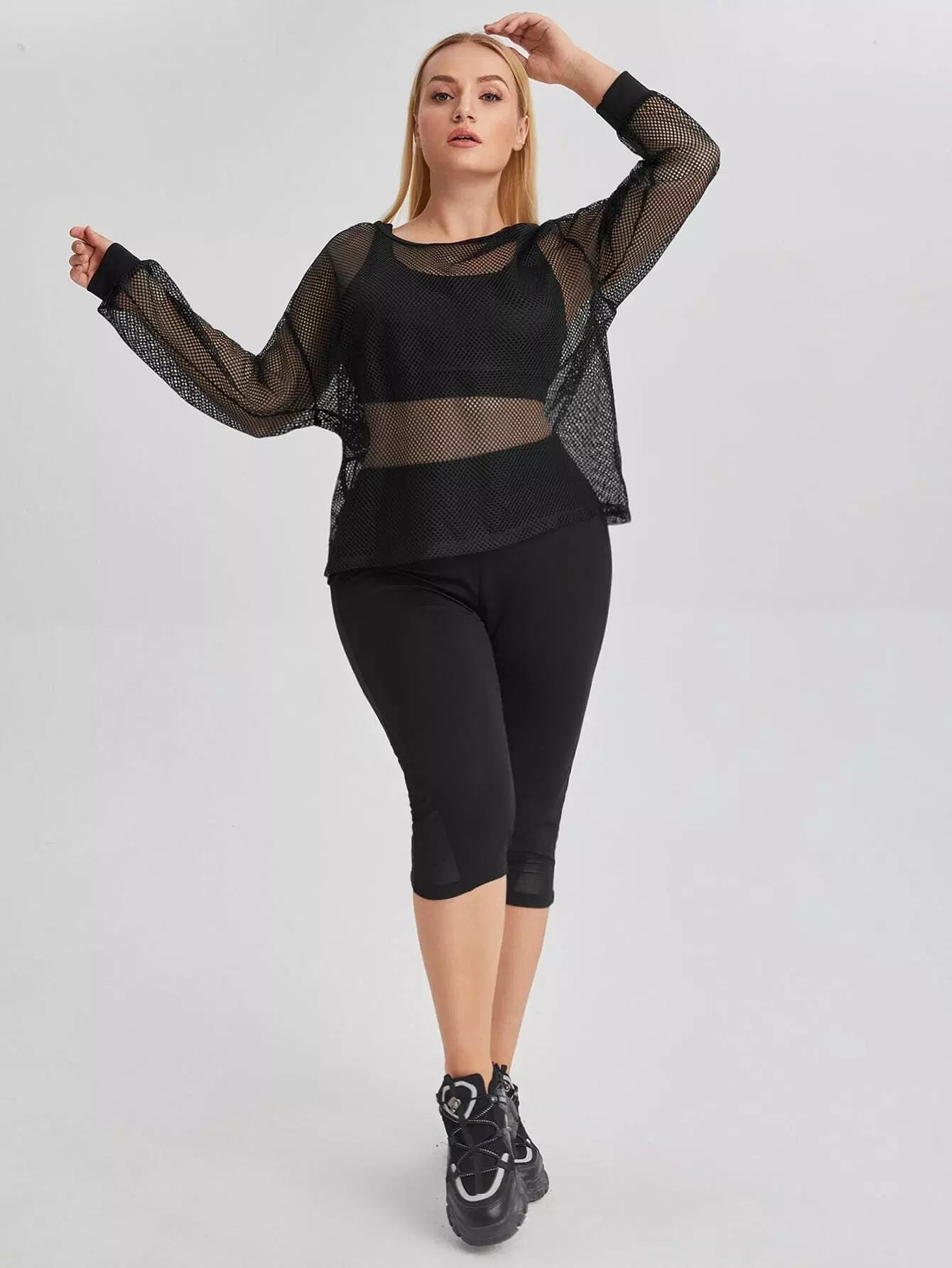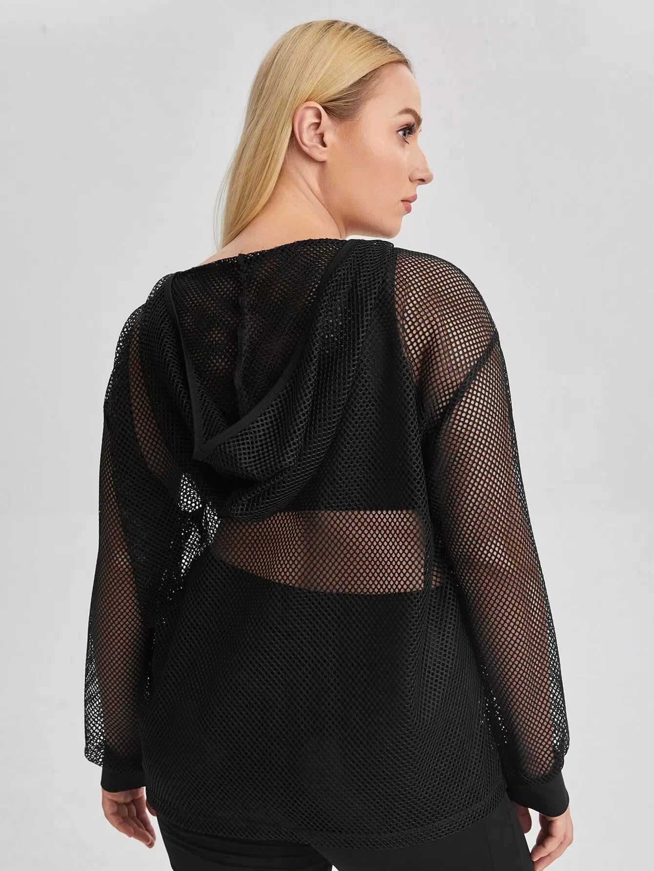 Plus Drop Shoulder Sheer Hooded Sports Top