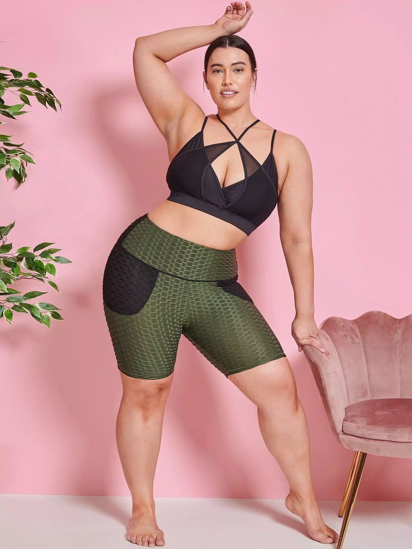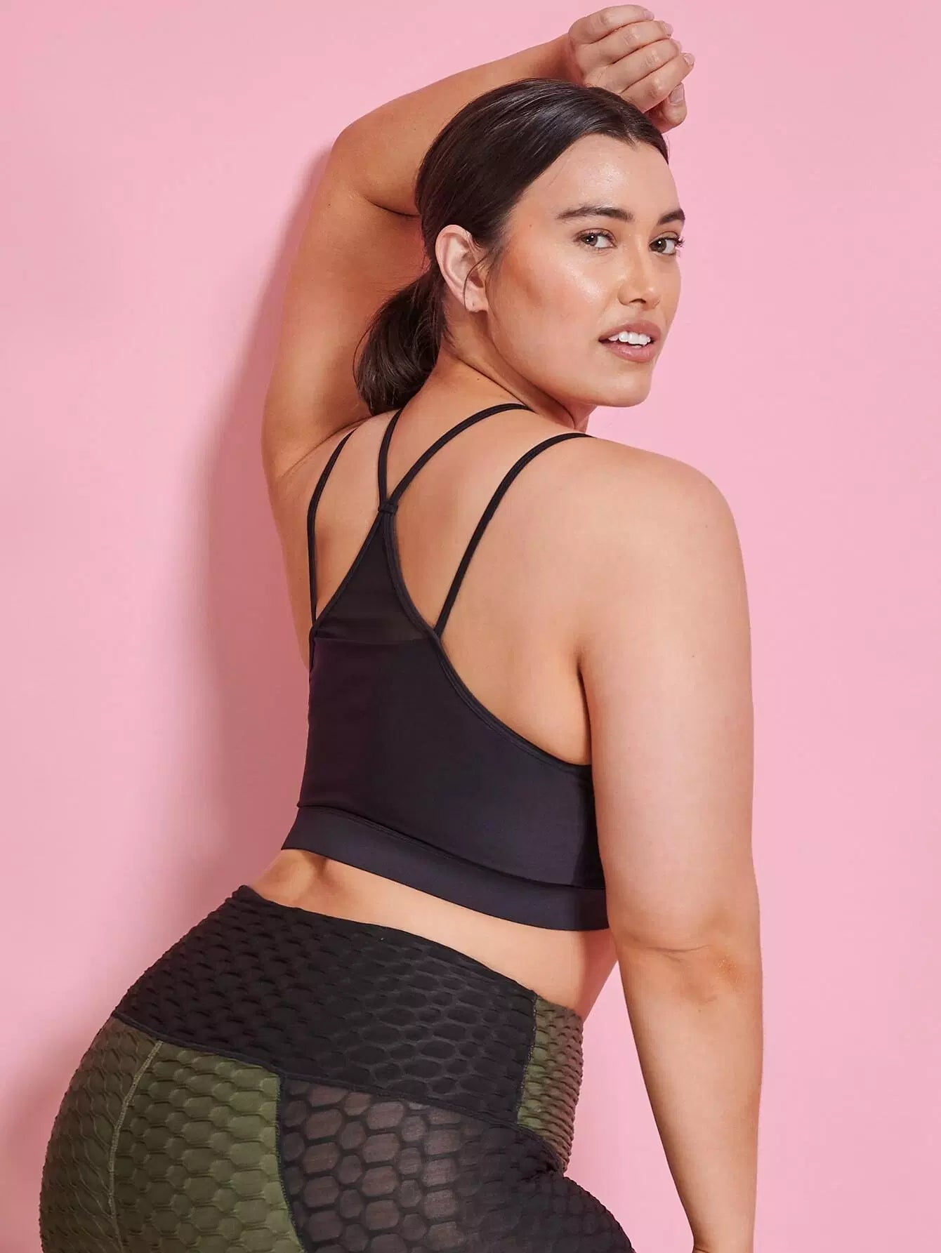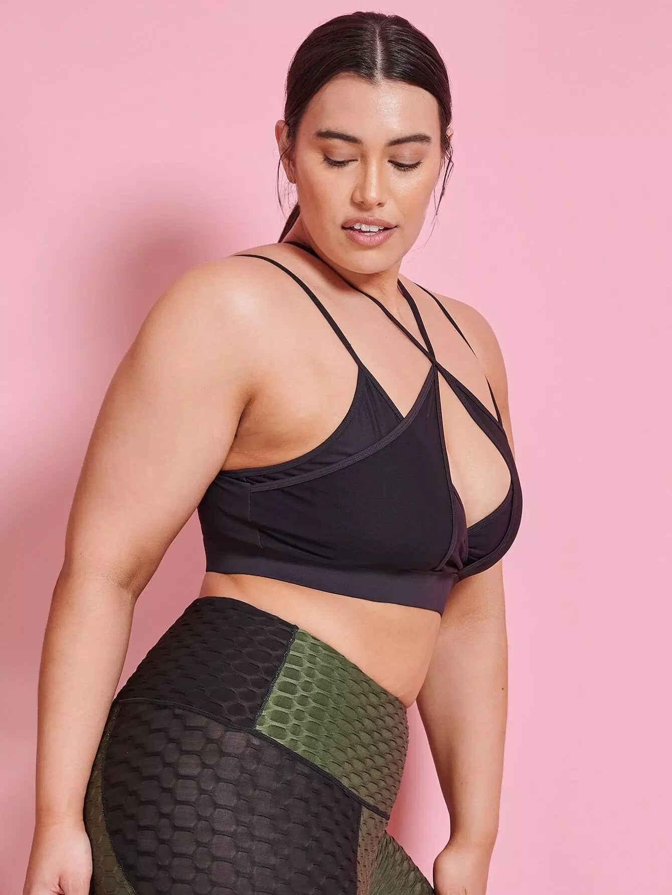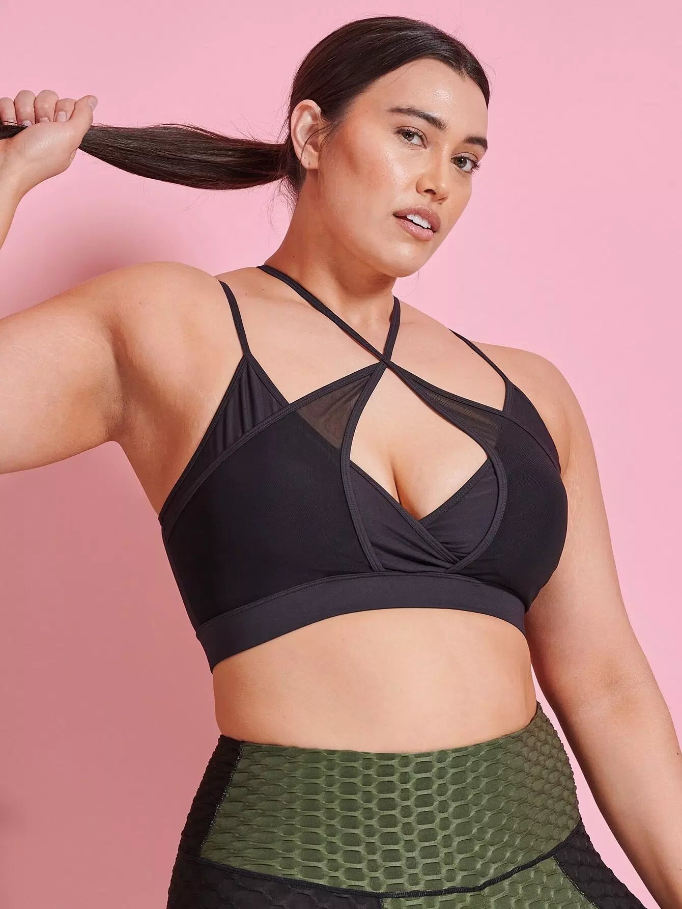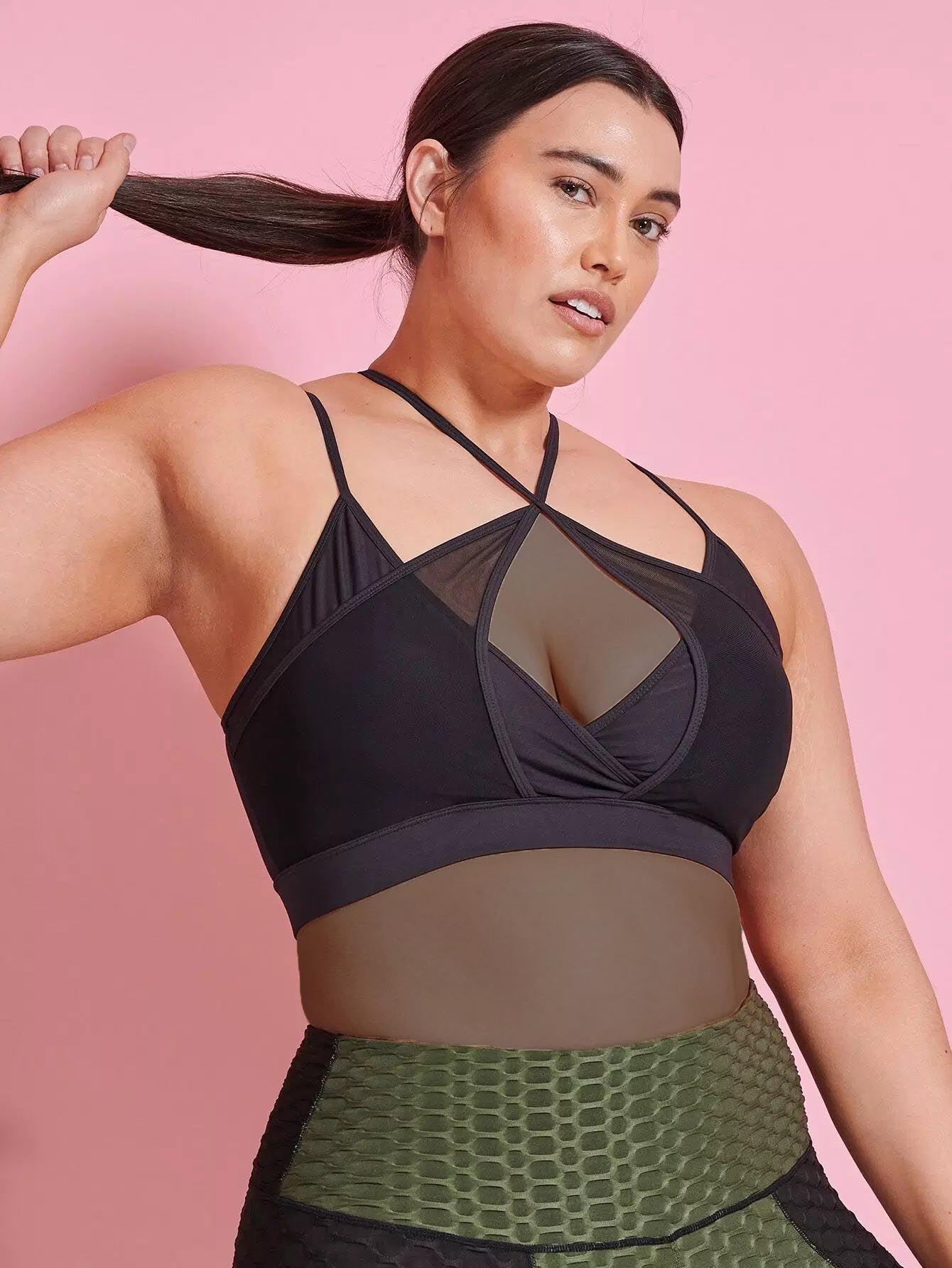 Plus High Support Contrast Mesh Peekaboo Sports Bra