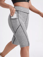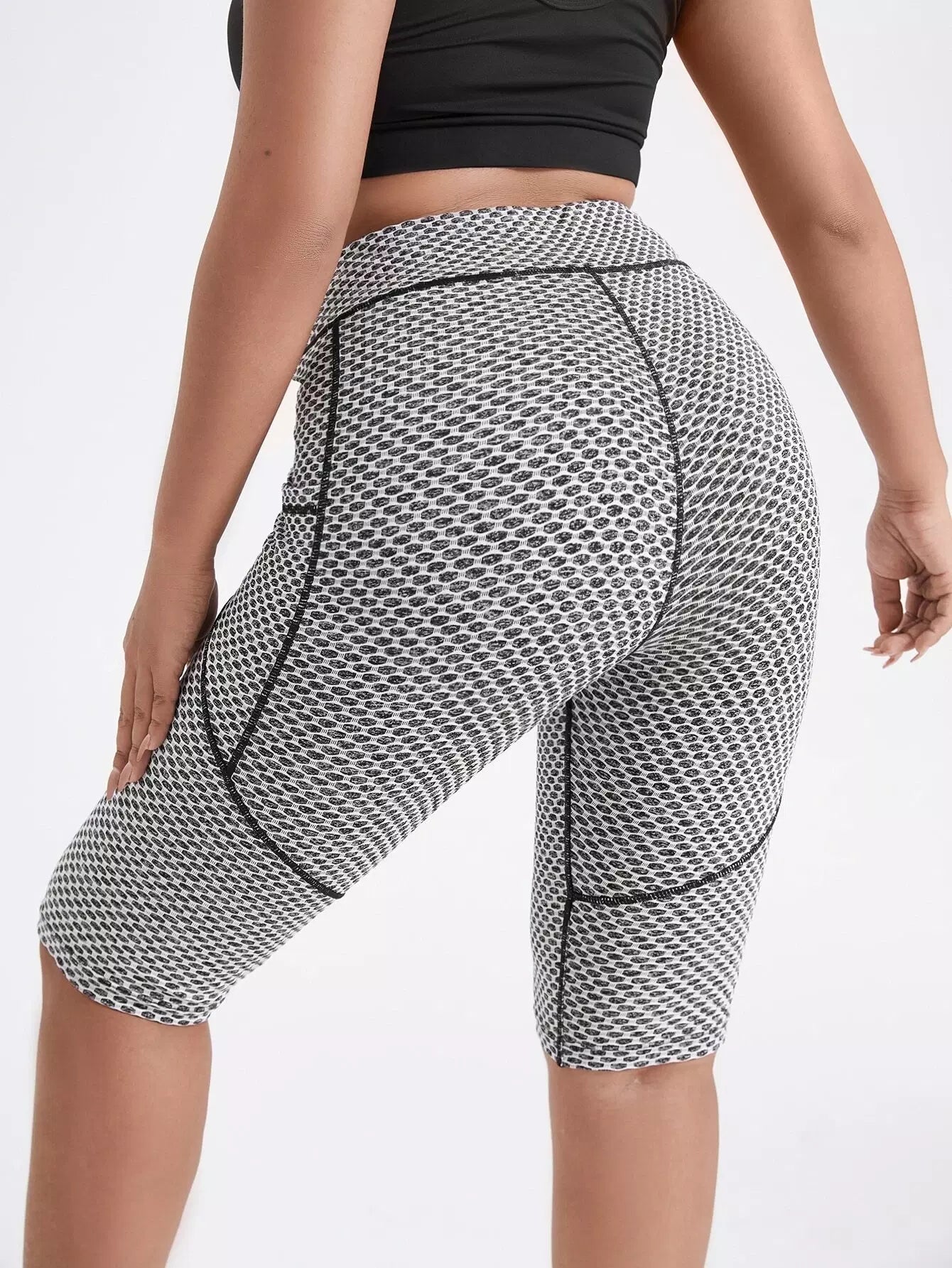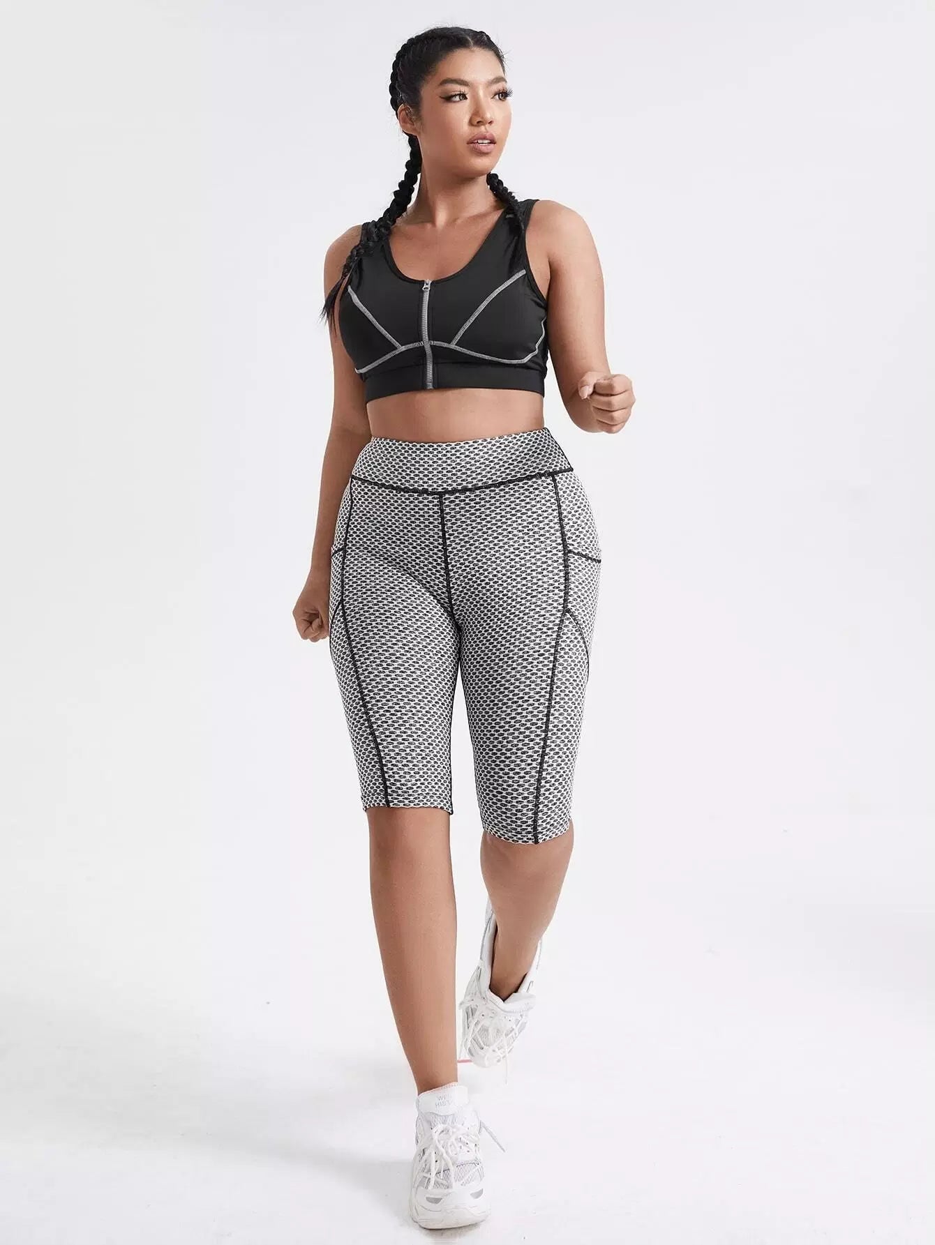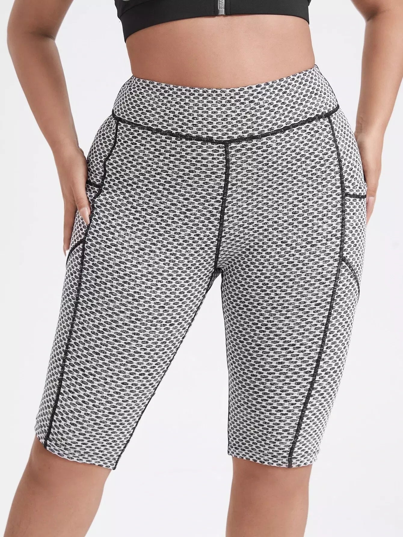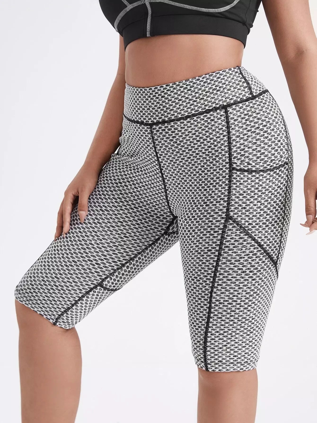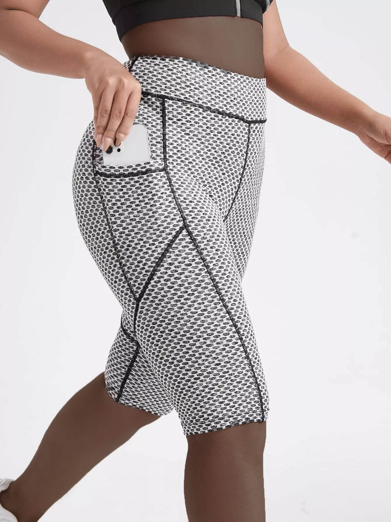 Plus Honeycomb Textured High Stretch Sports Shorts With Phone Pocket