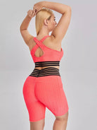 Plus Honeycomb Textured Striped Sports Bra With Biker Shorts
