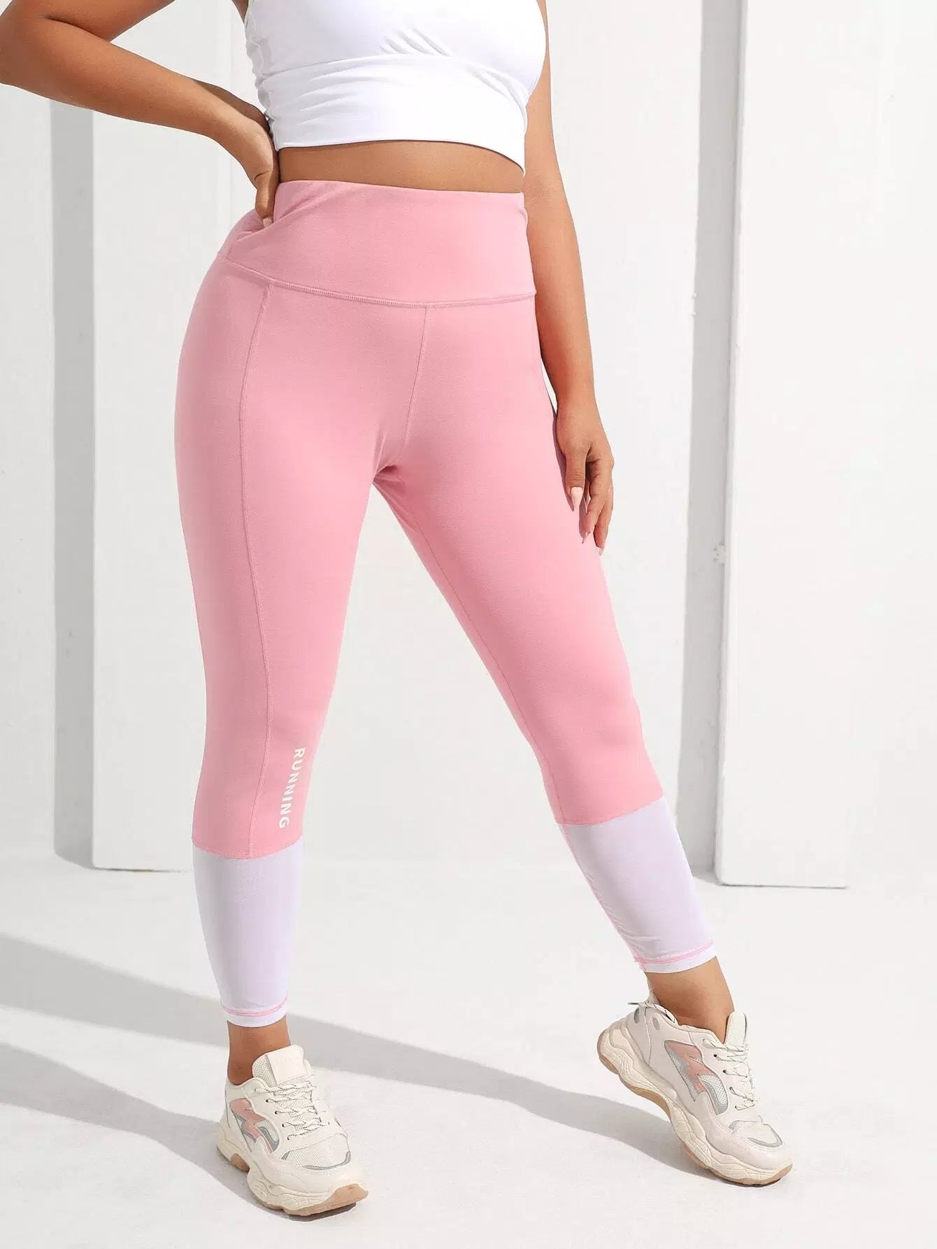 Plus Letter Graphic Contrast Hem Sports Leggings