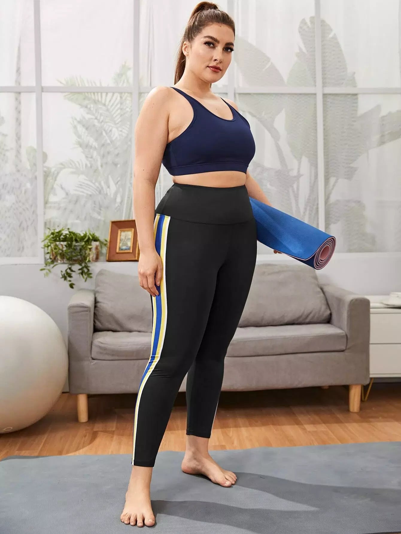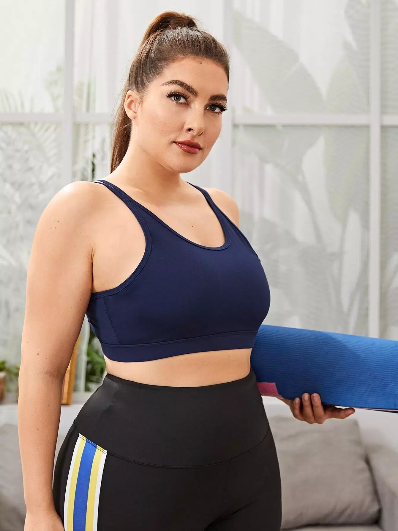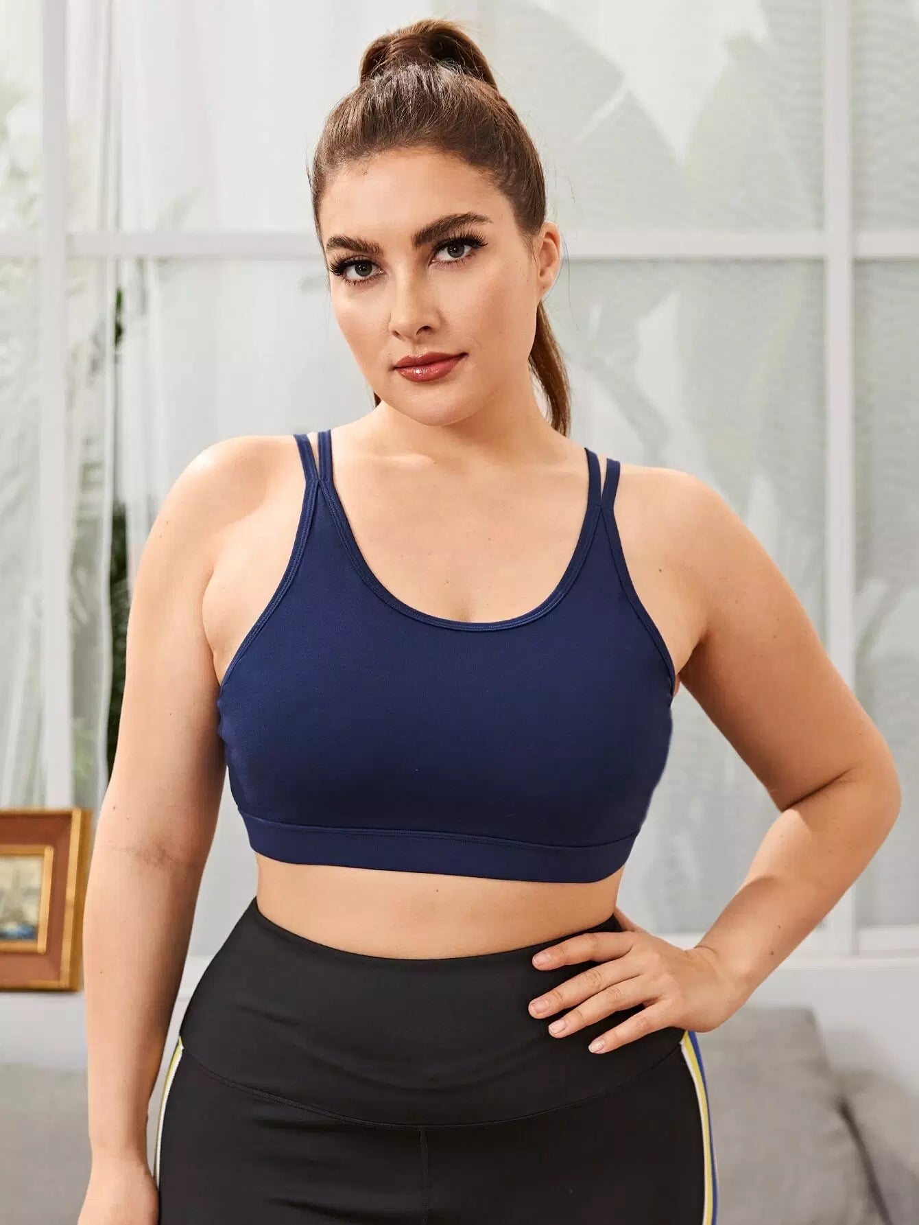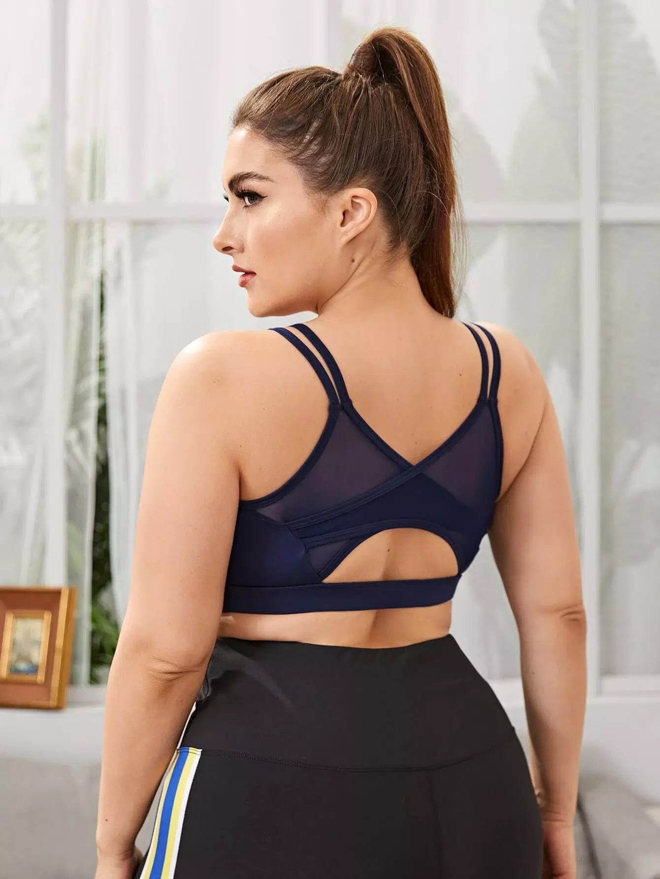 Plus Medium Support Contrast Mesh Cut Out Back Sports Bra