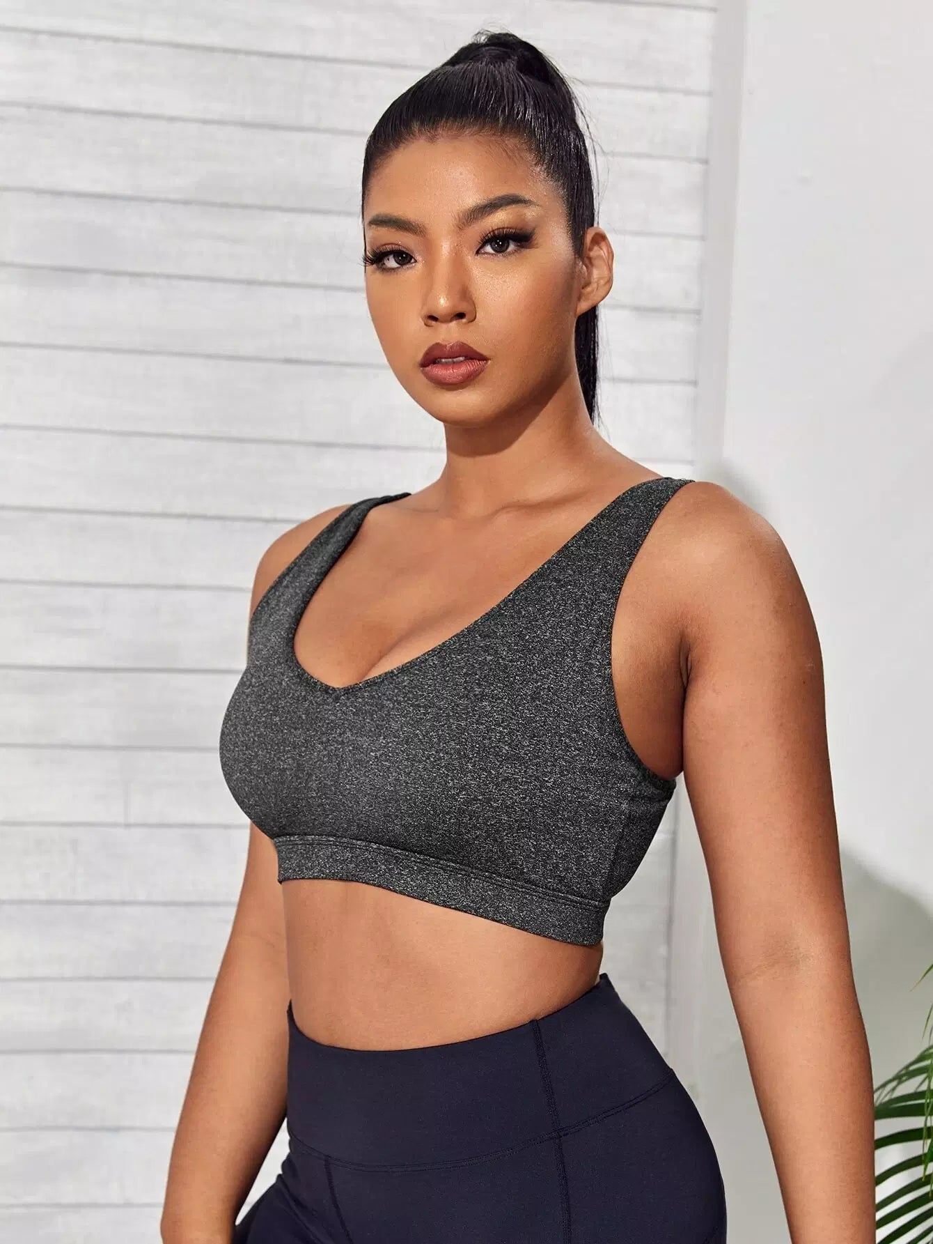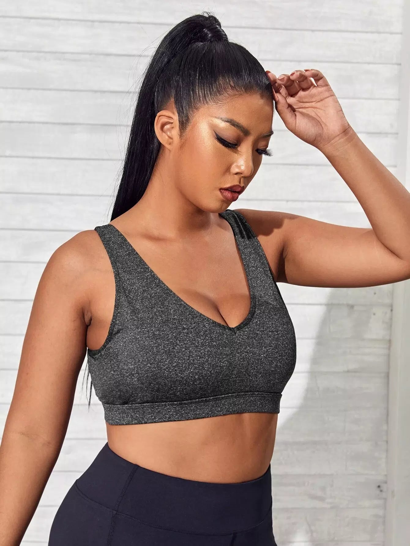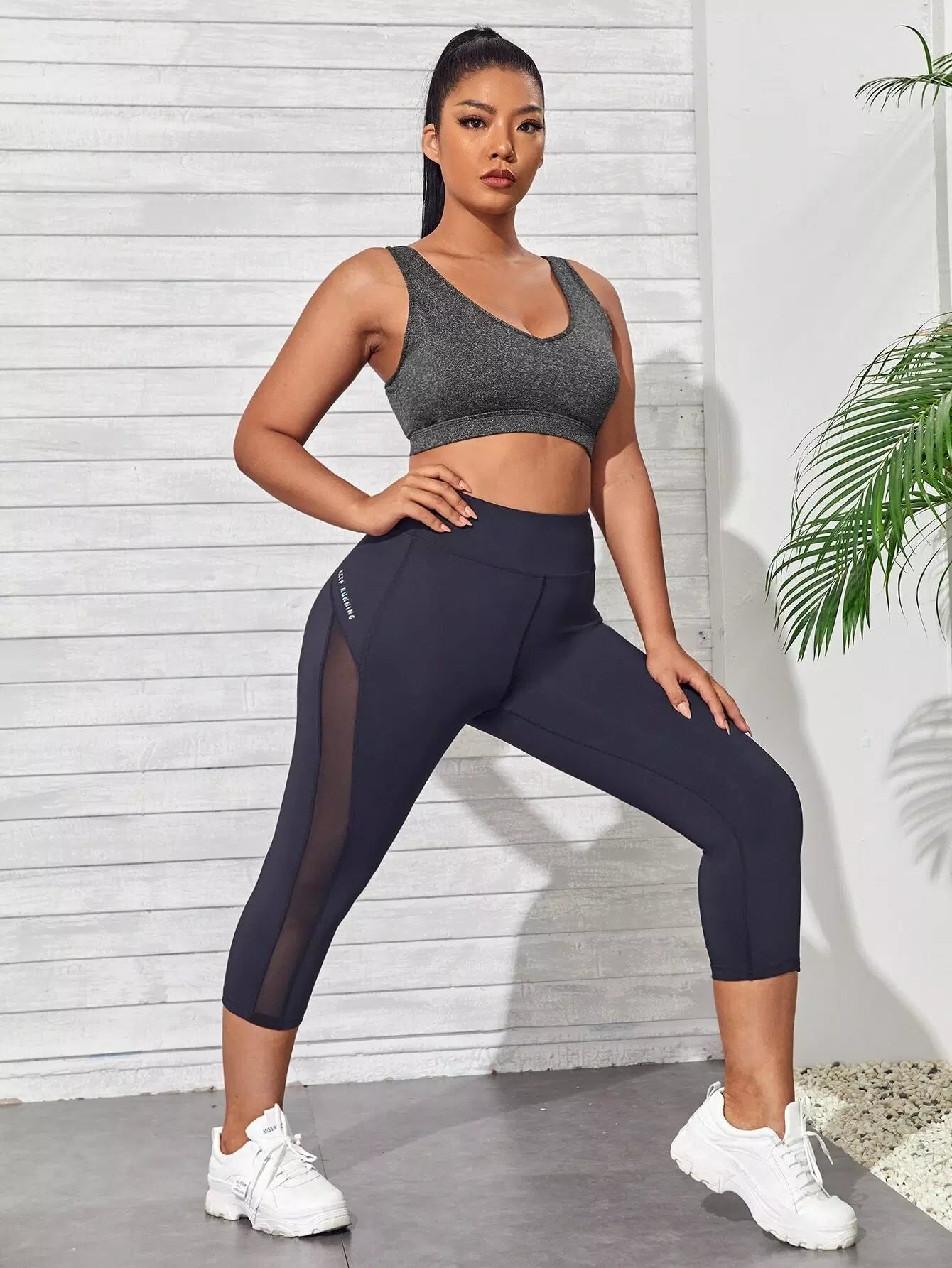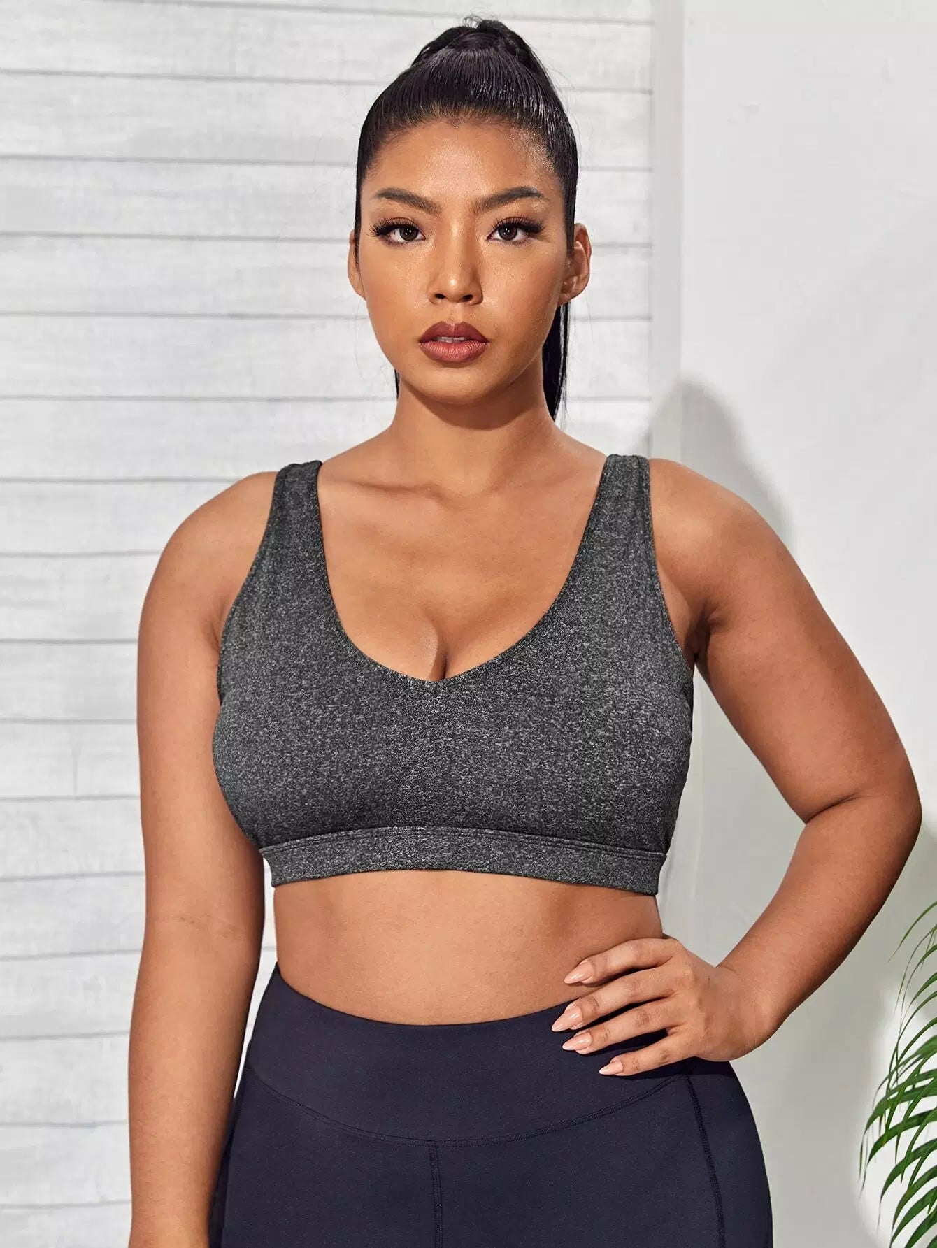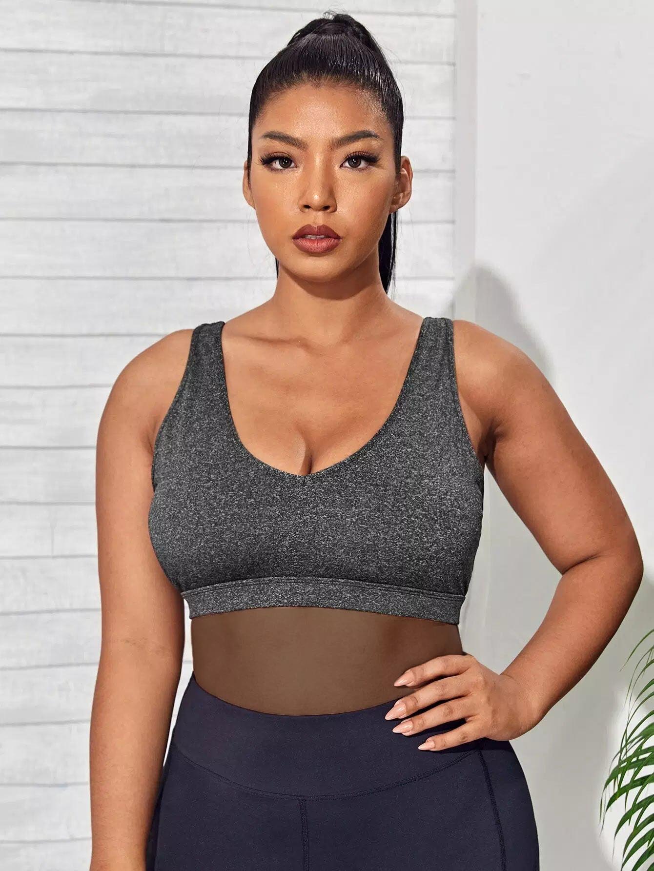Plus Medium Support Contrast Tape Sports Bra
