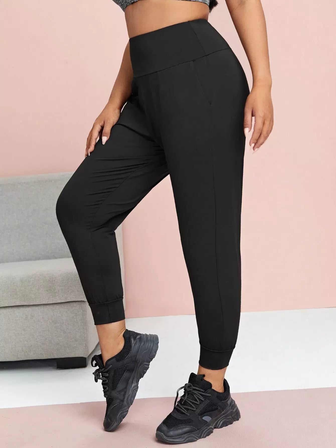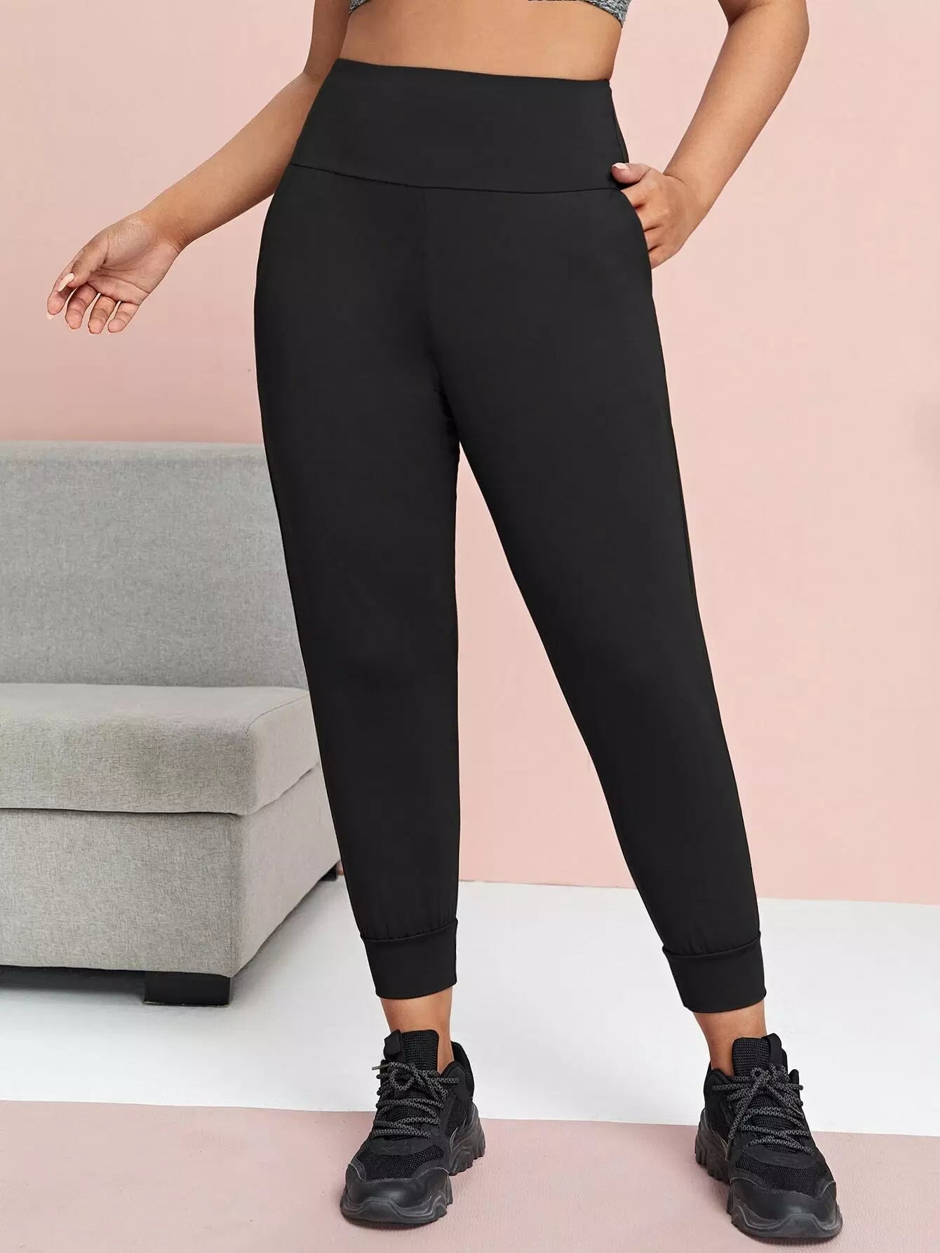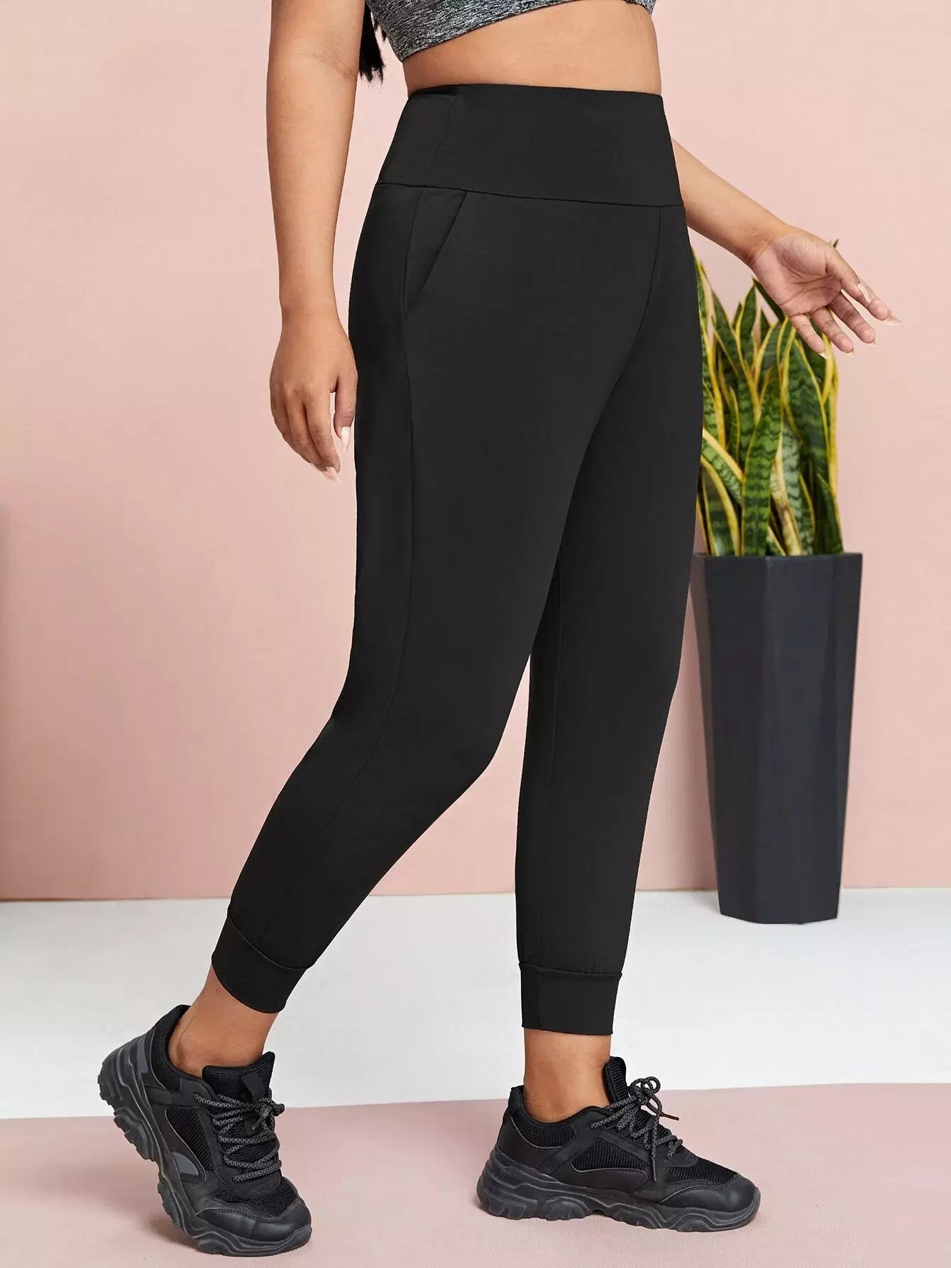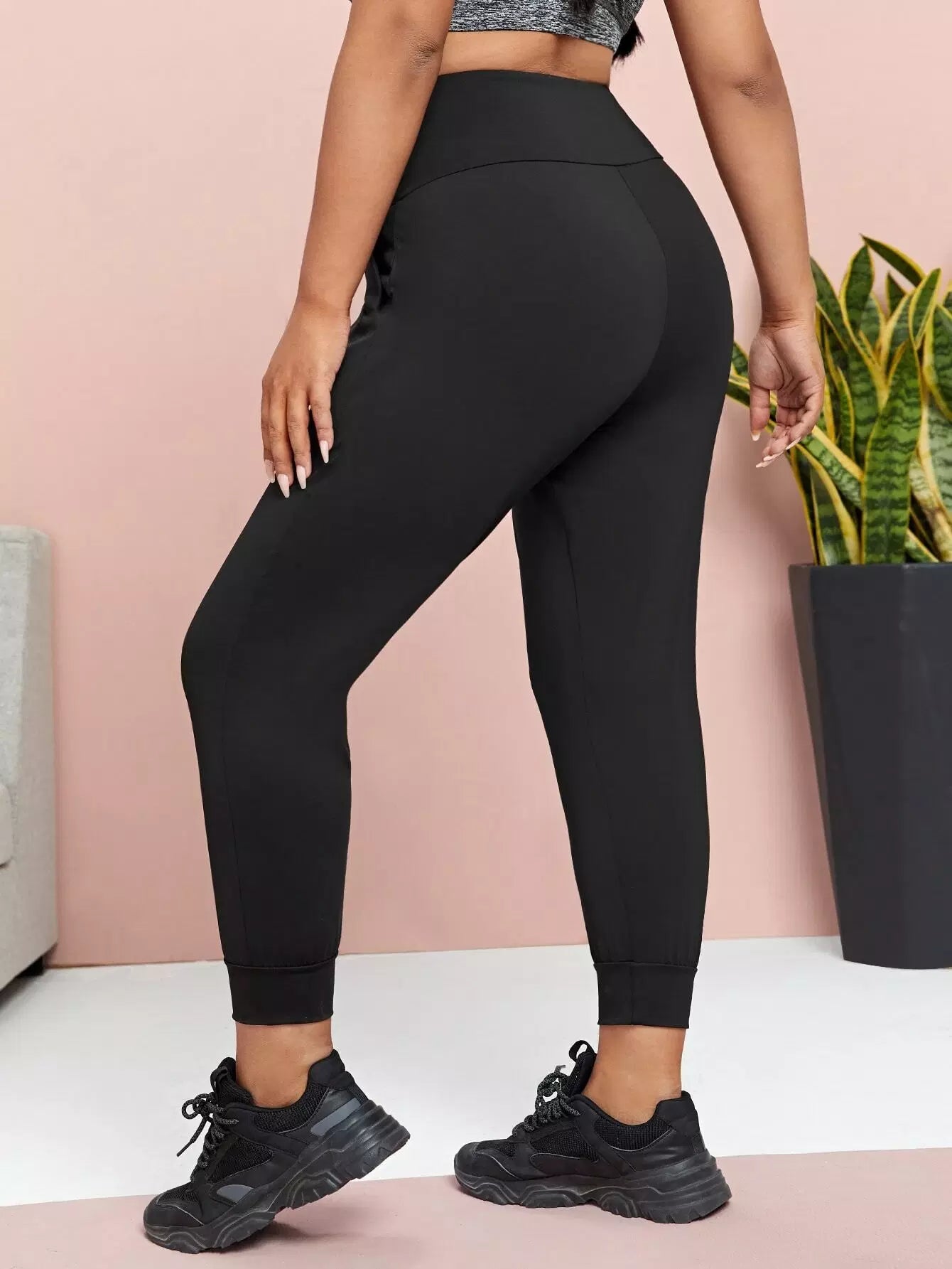 Plus Solid Crop Sports Leggings