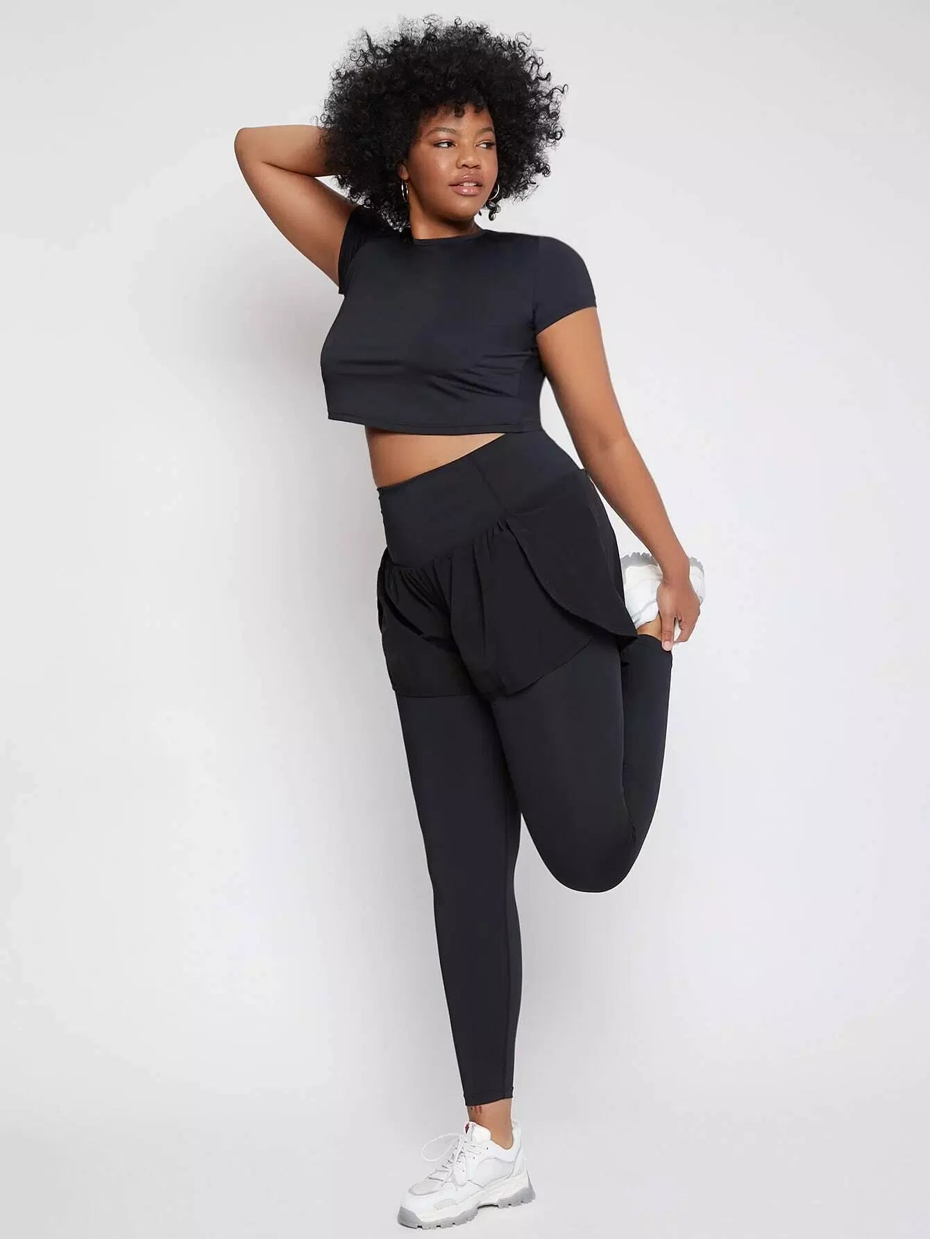Plus Solid Sports Tee & 2 In 1 Leggings