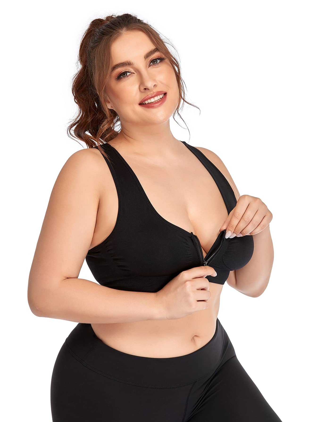 Plus Zip Front Sports Bra