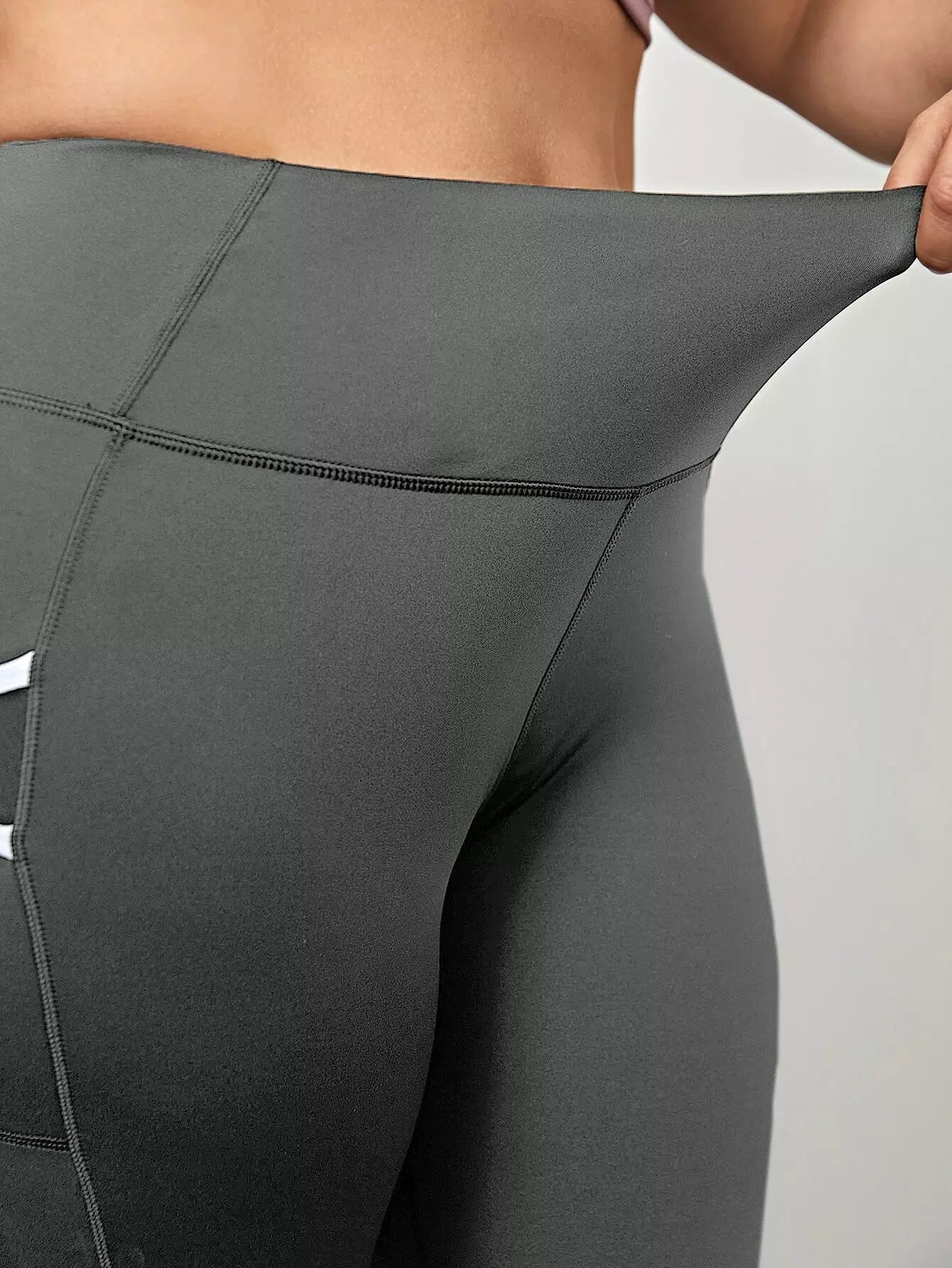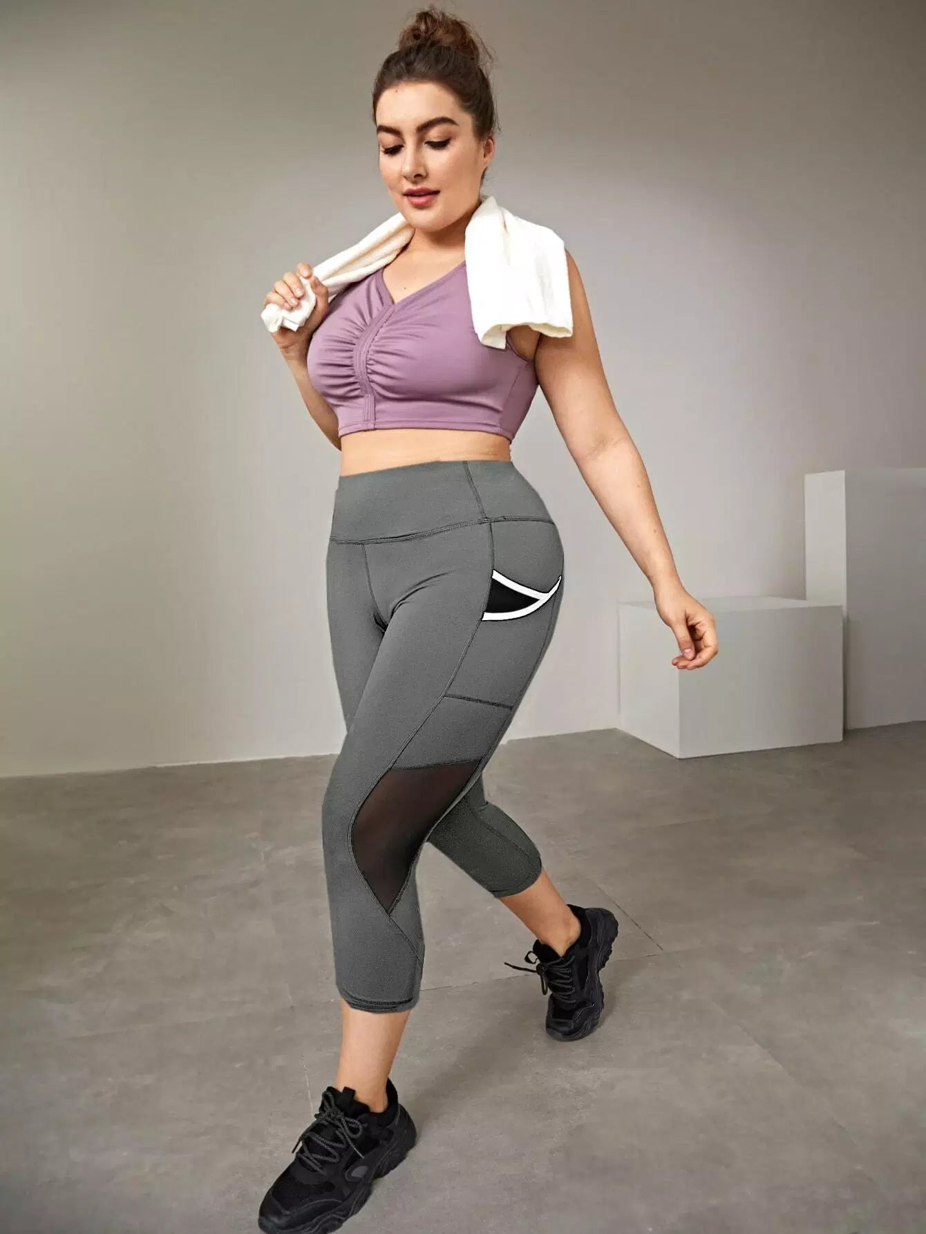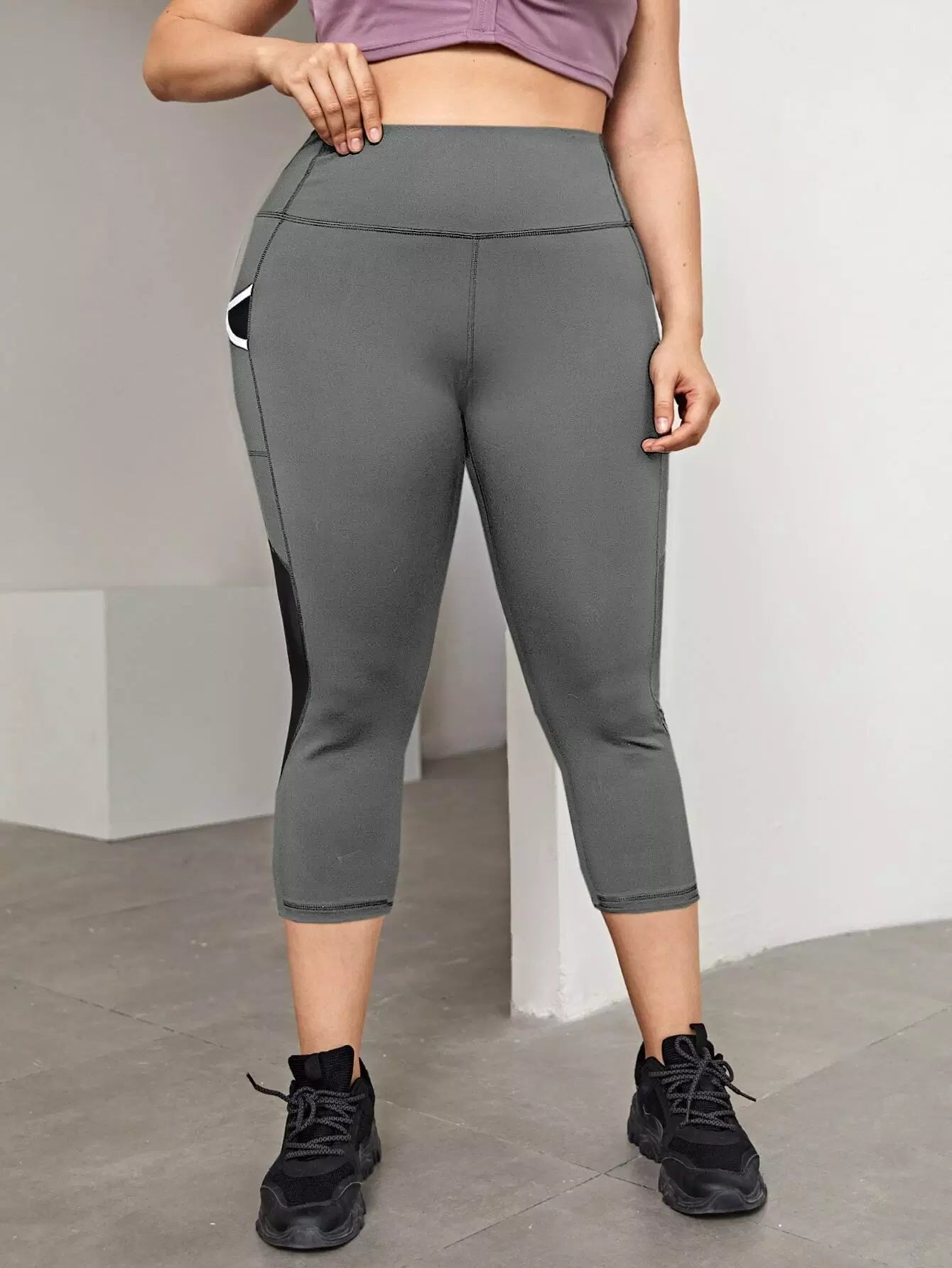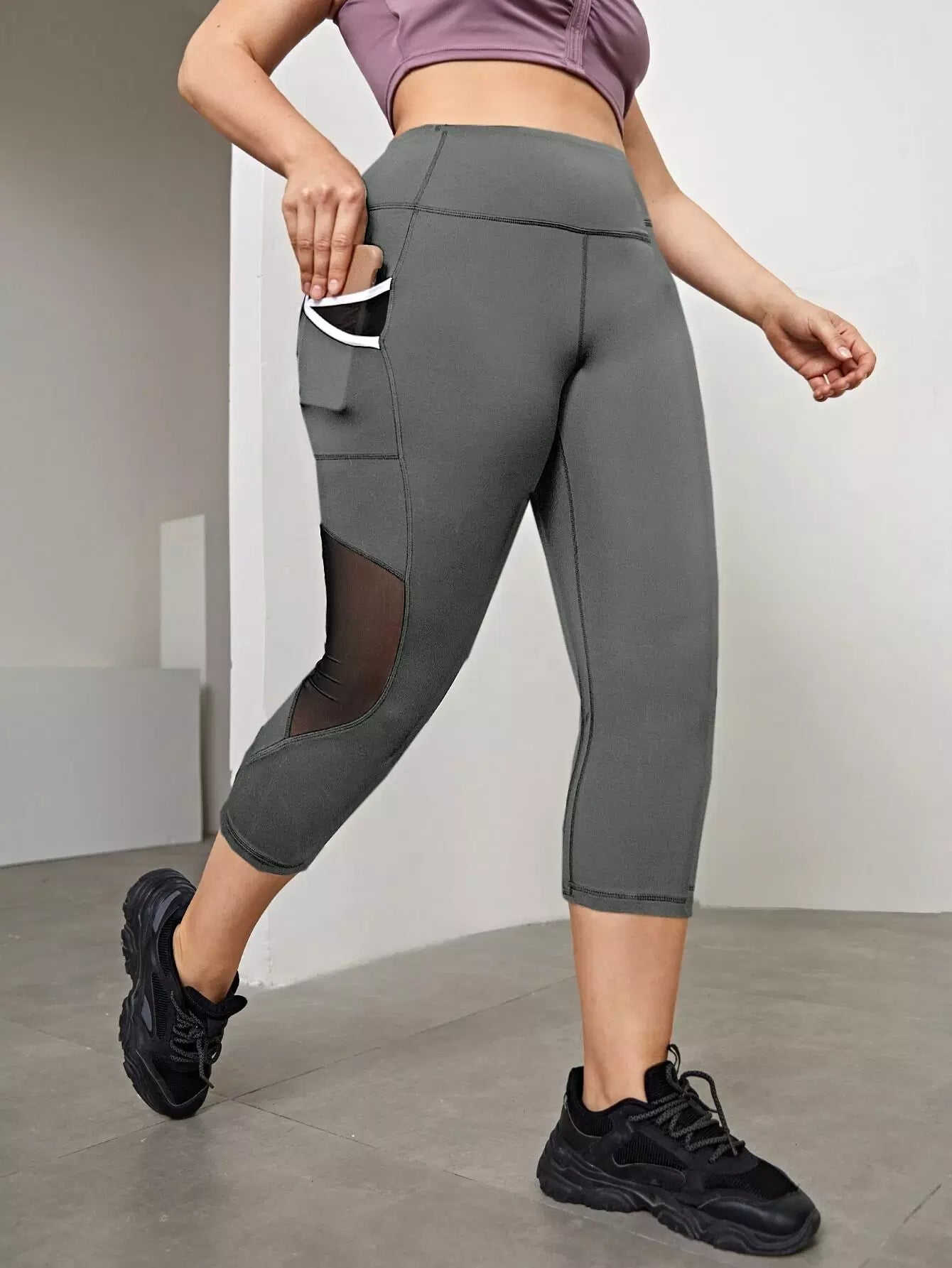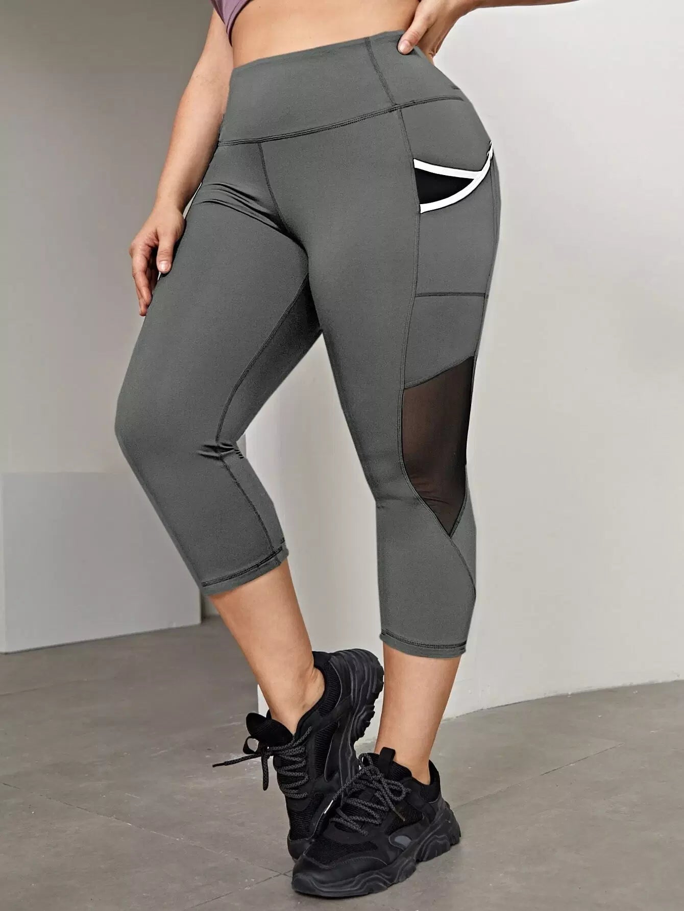 Plus Contrast Mesh Capris Leggings With Phone Pocket