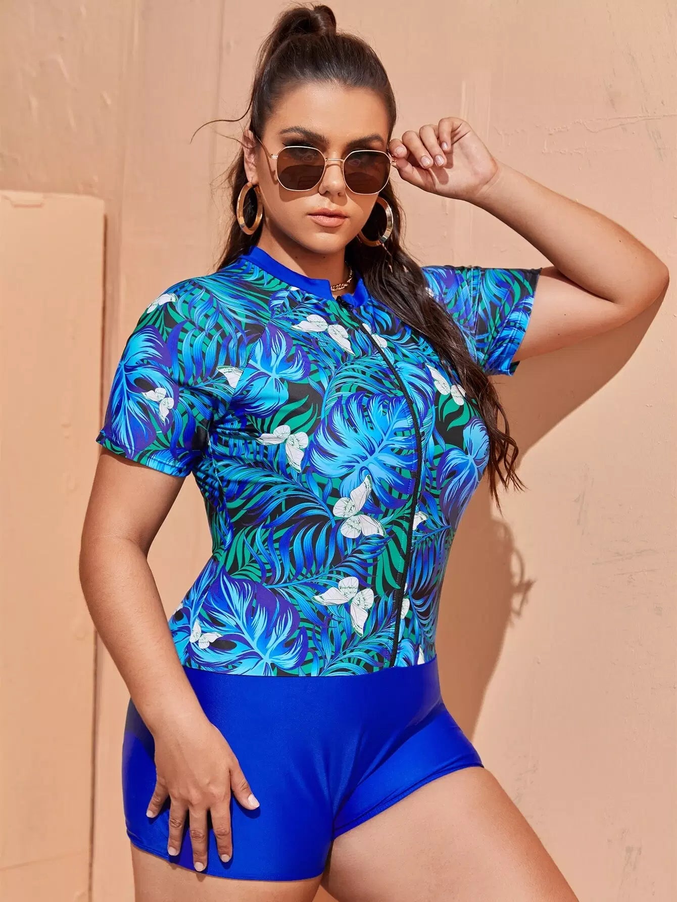 Plus Butterfly & Leaf Print One Piece Swimsuit