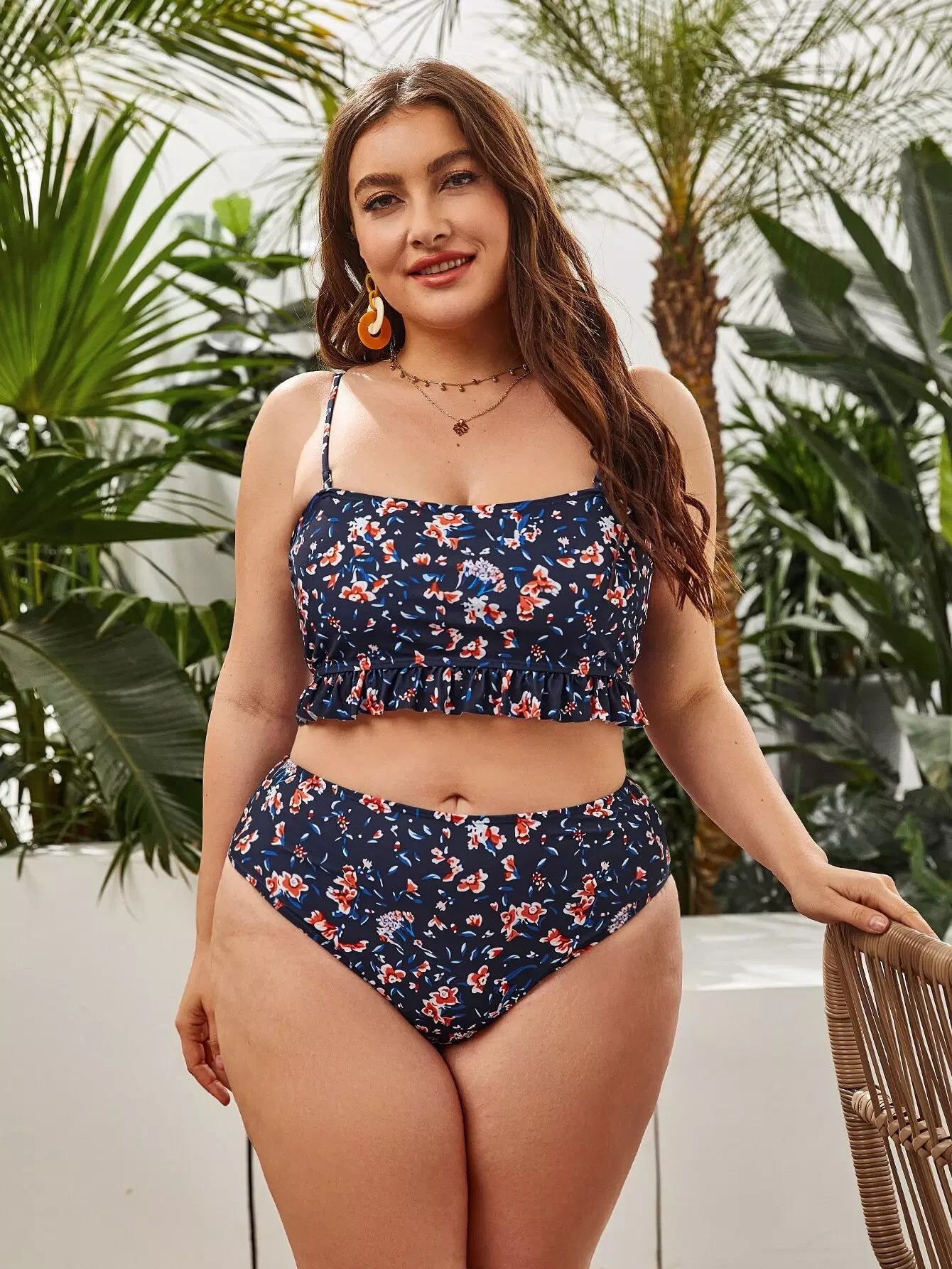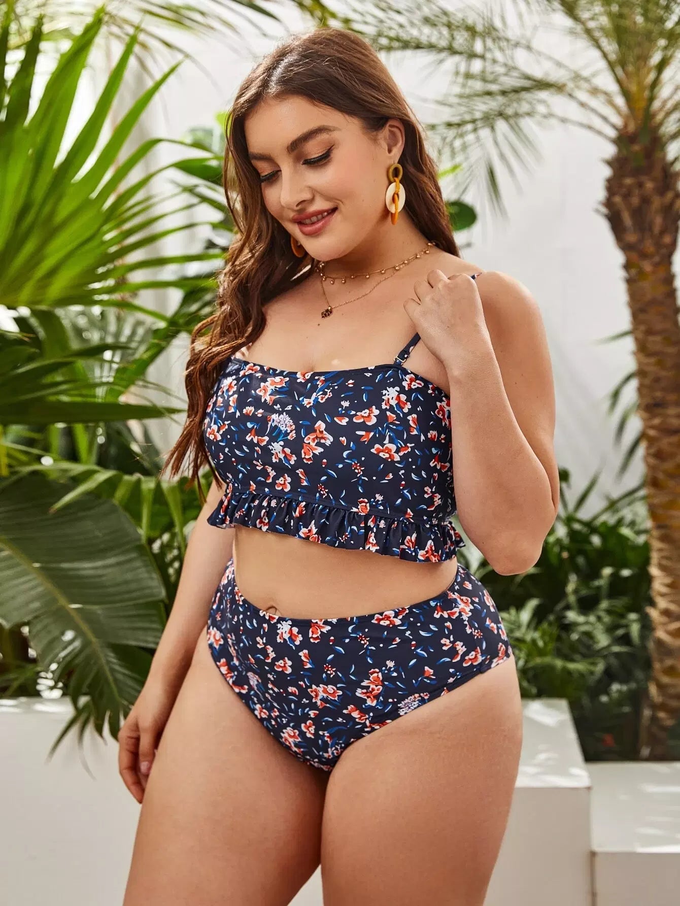 Plus Ditsy Floral Ruffle Hem Bikini Swimsuit