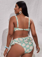 Plus Floral Knot Front Ruffle Bikini Swimsuit