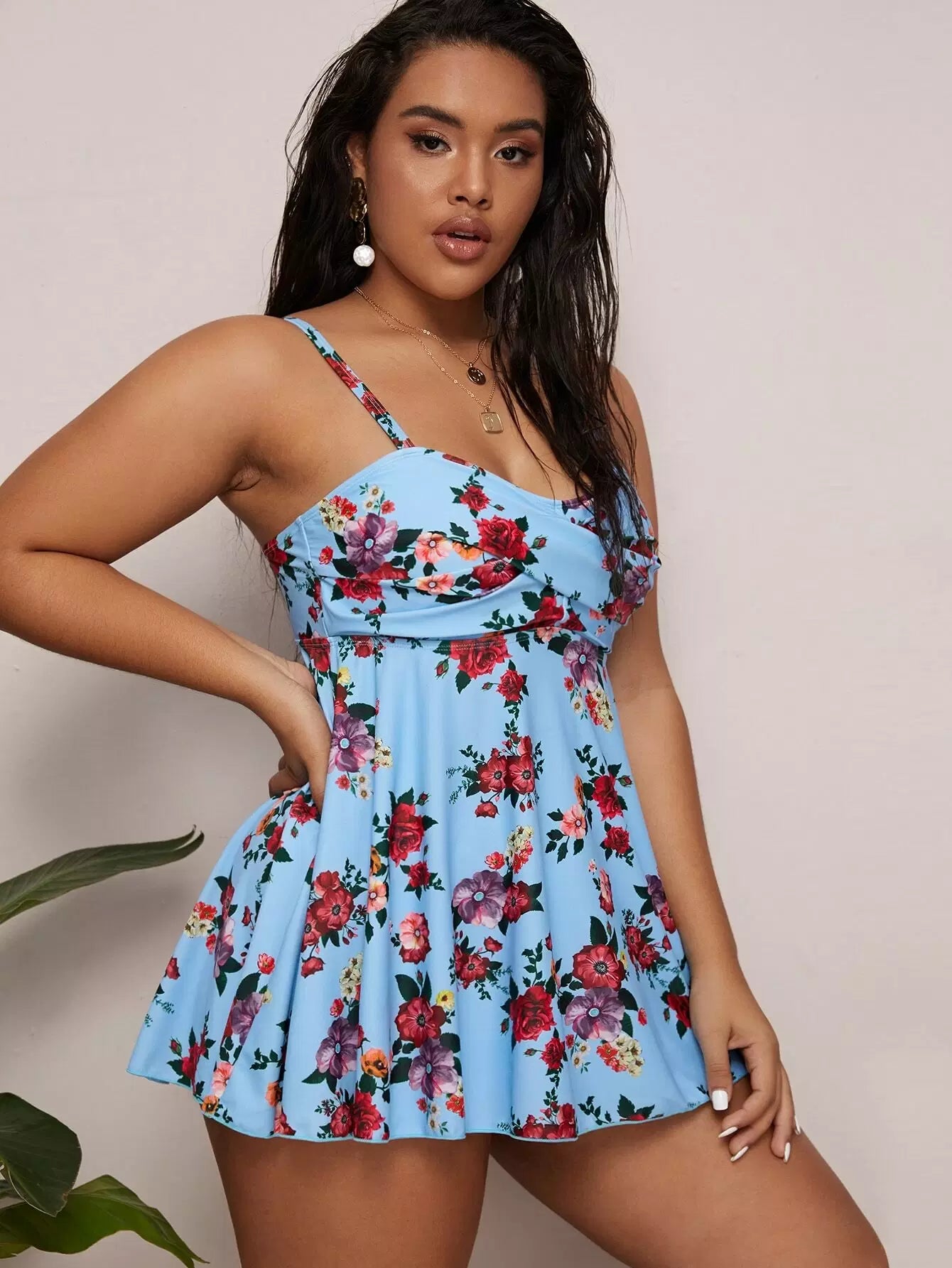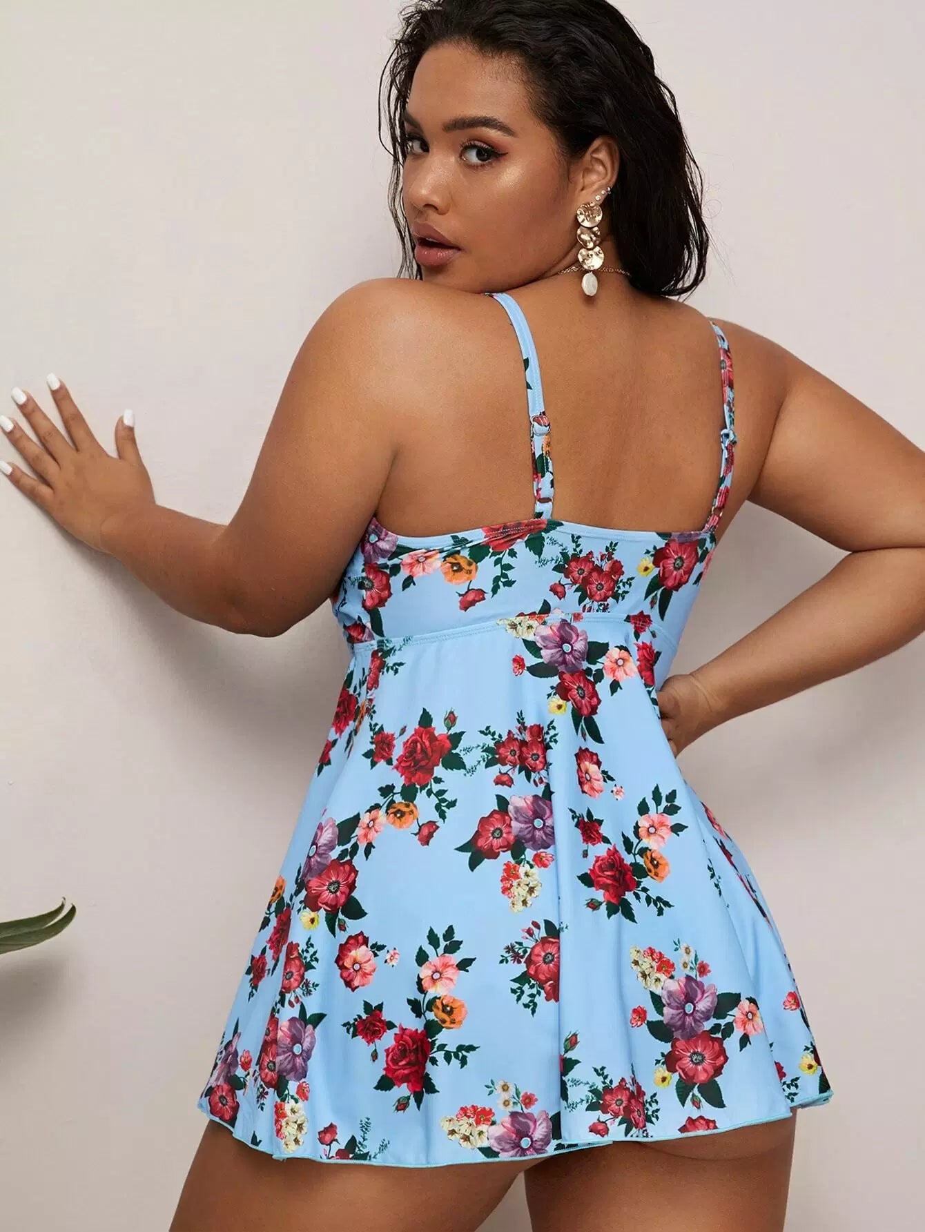 Plus Floral Random Print High Waisted Bikini Swimsuit