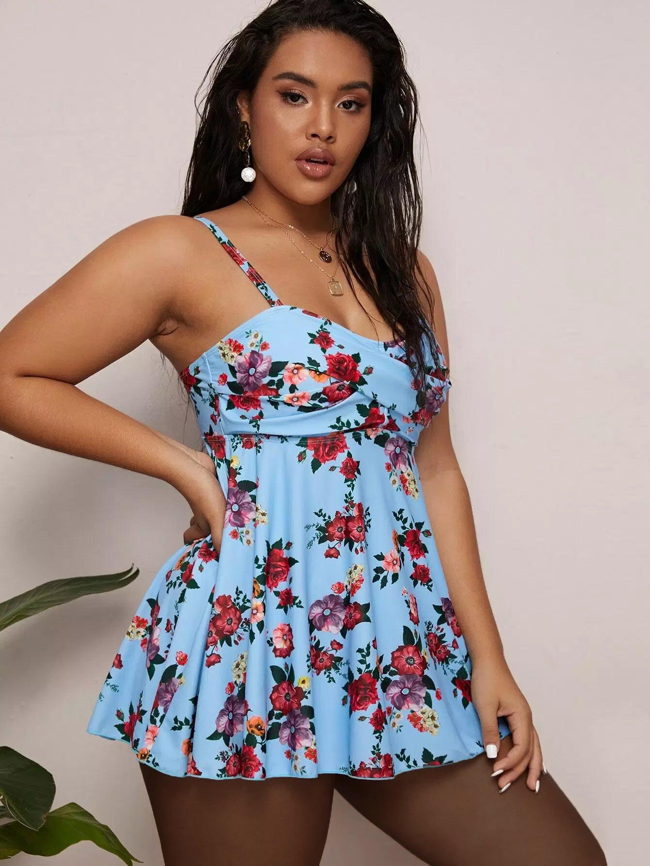 Women - Plus Floral Random Print High Waisted Bikini Swimsuit