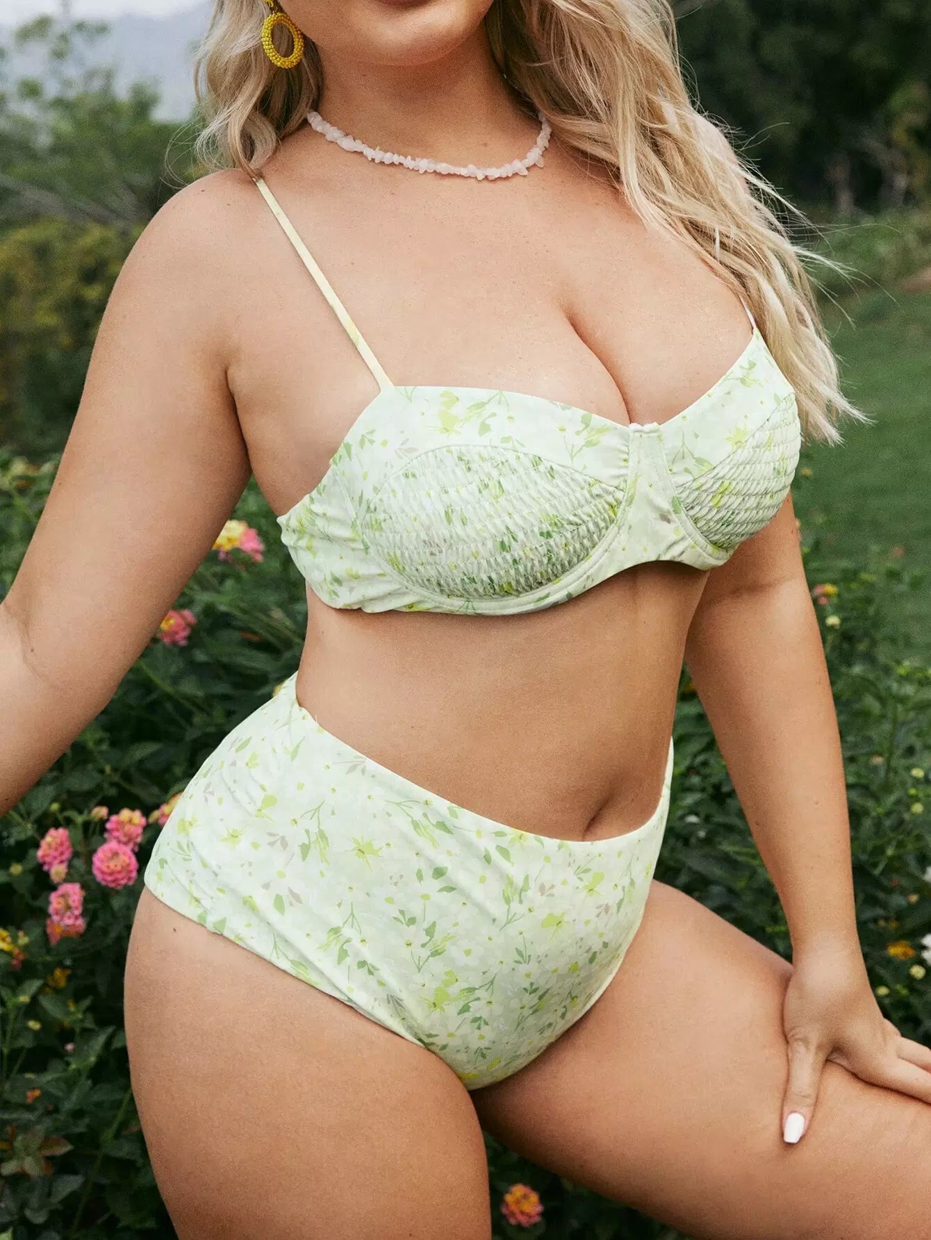 Plus Floral Smocked Panel Underwire Bikini Swimsuit