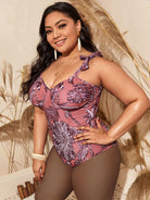 Plus Floral Tie Shoulder One Piece Swimsuit