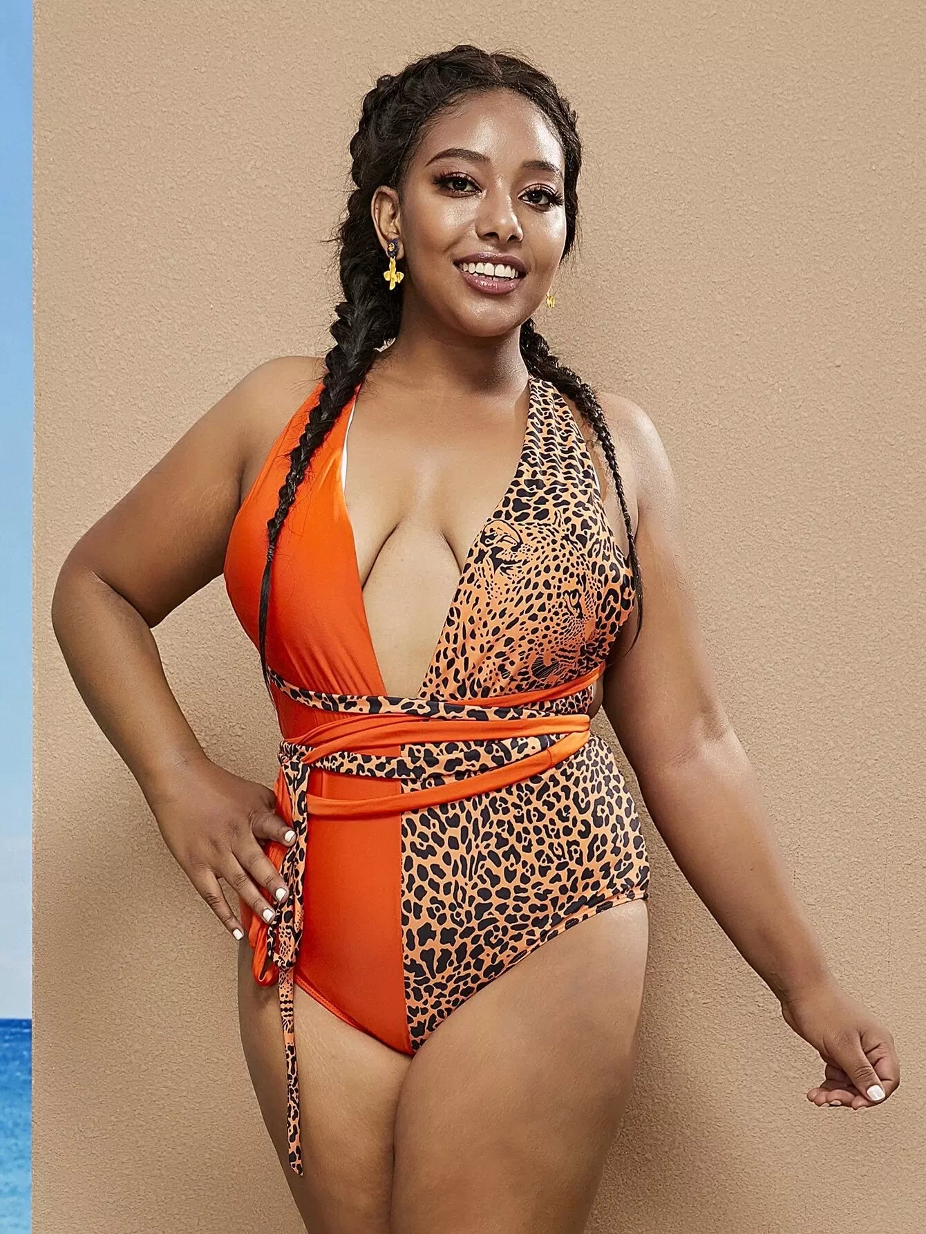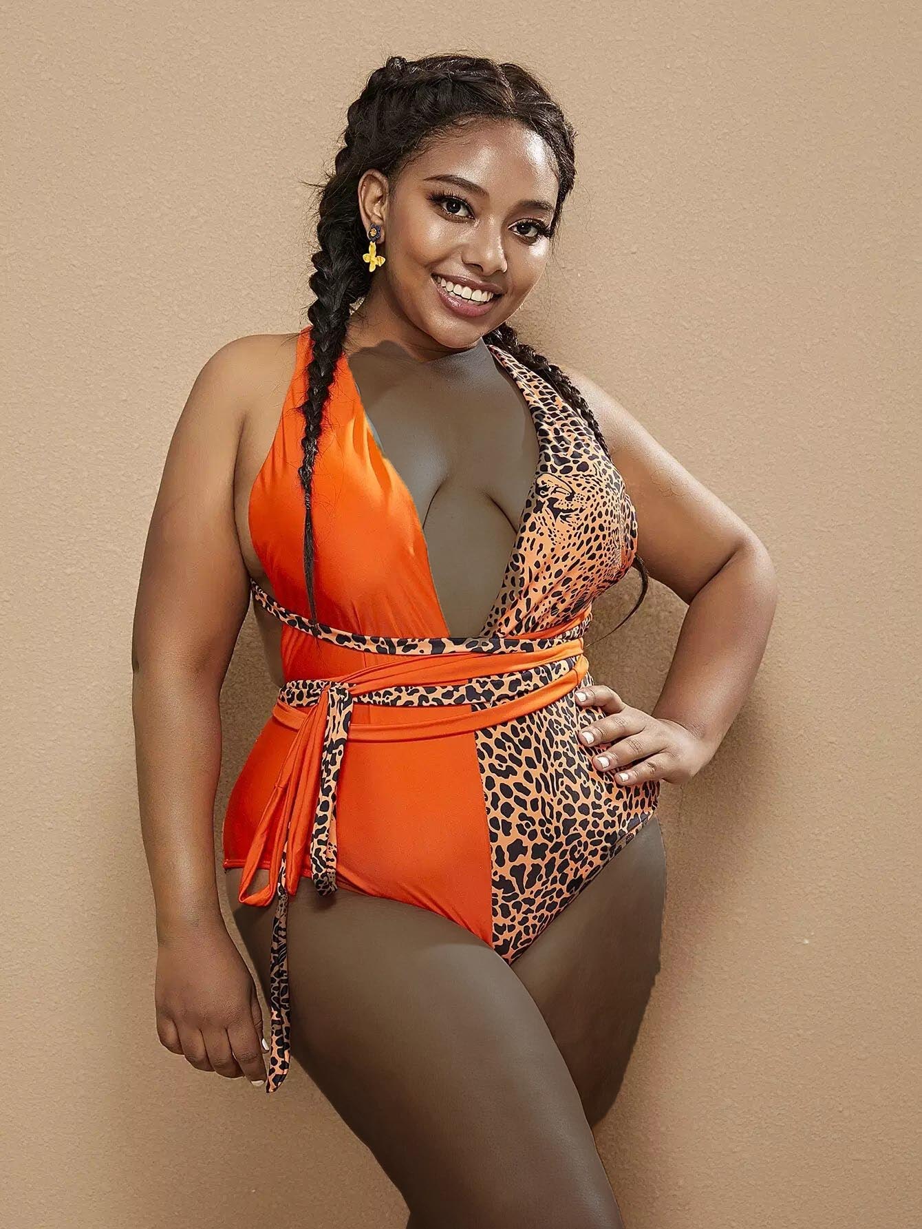 Plus Graphic Knot Plunging One Piece Swimsuit