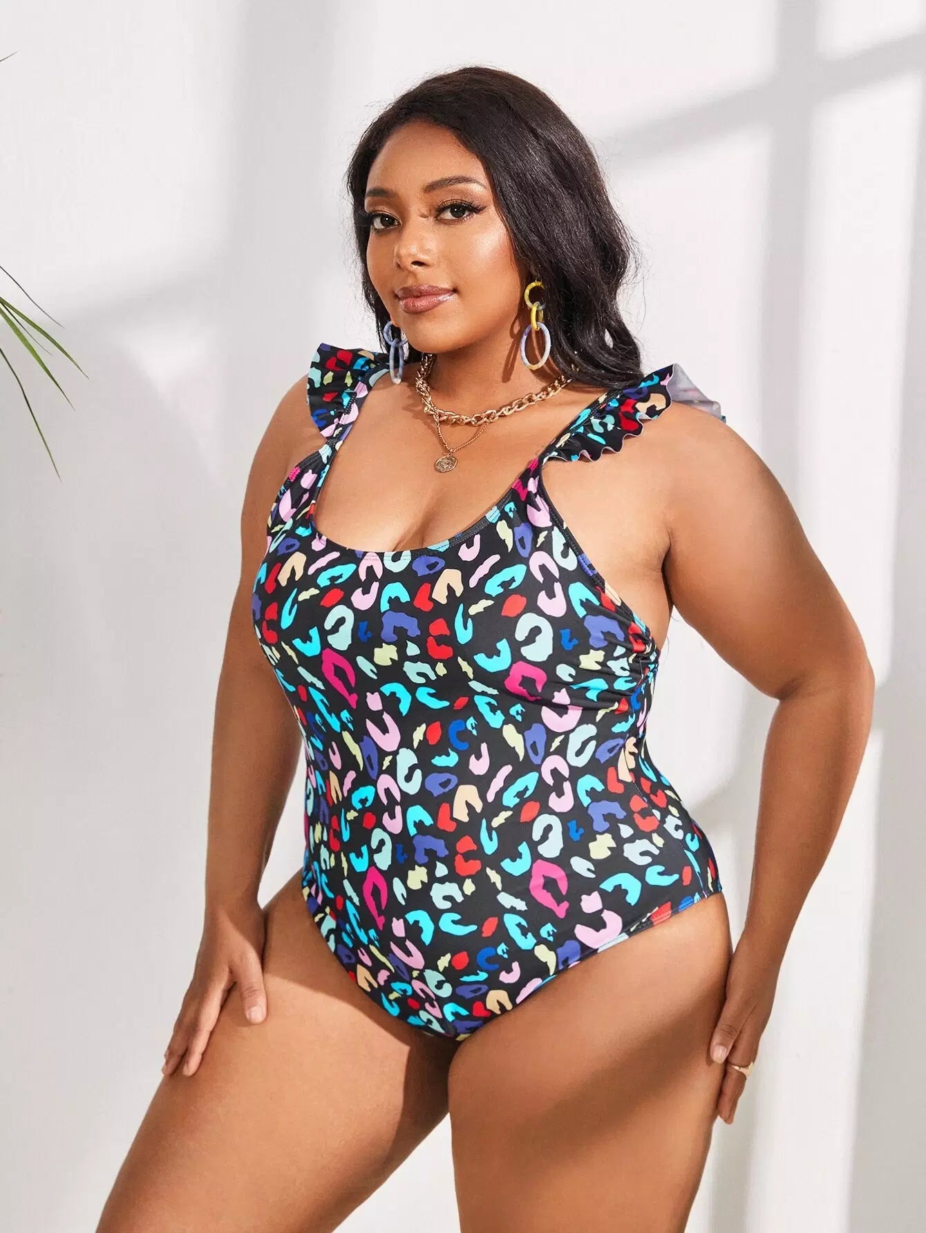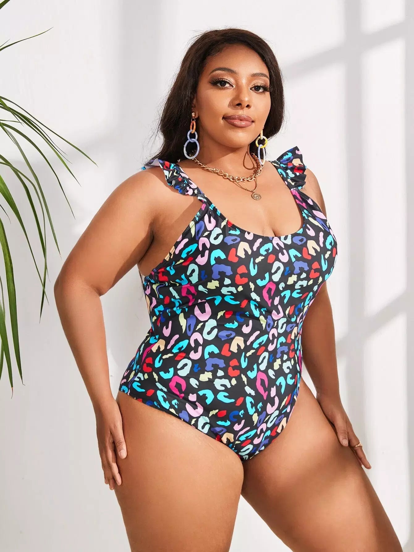 Plus Leopard Ruffle Trim One Piece Swimsuit