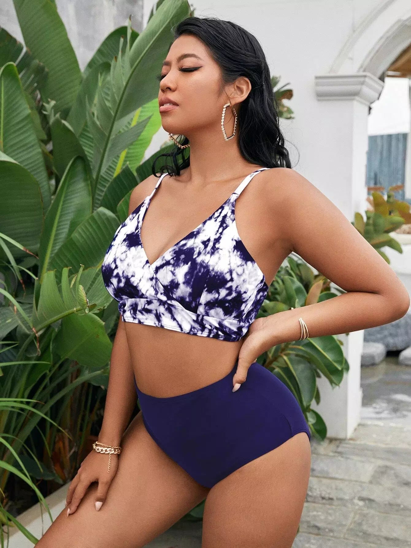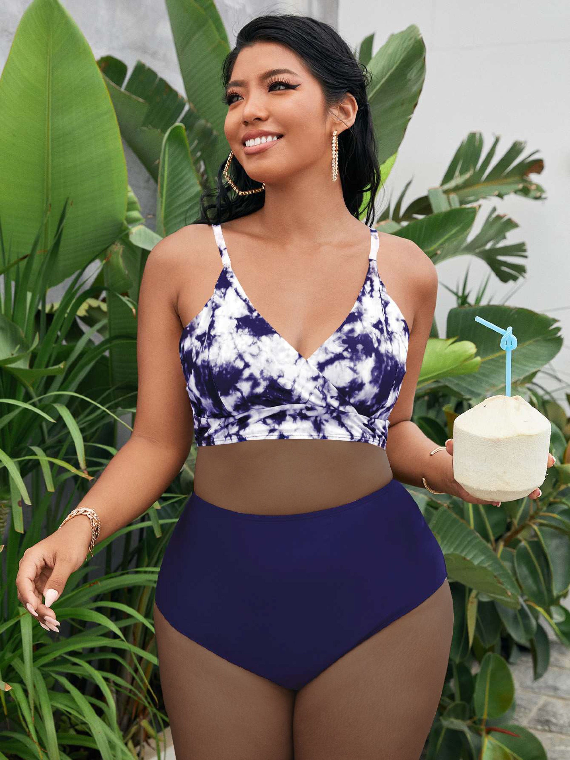 Plus Tie Dye High Waisted Bikini Swimsuit